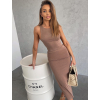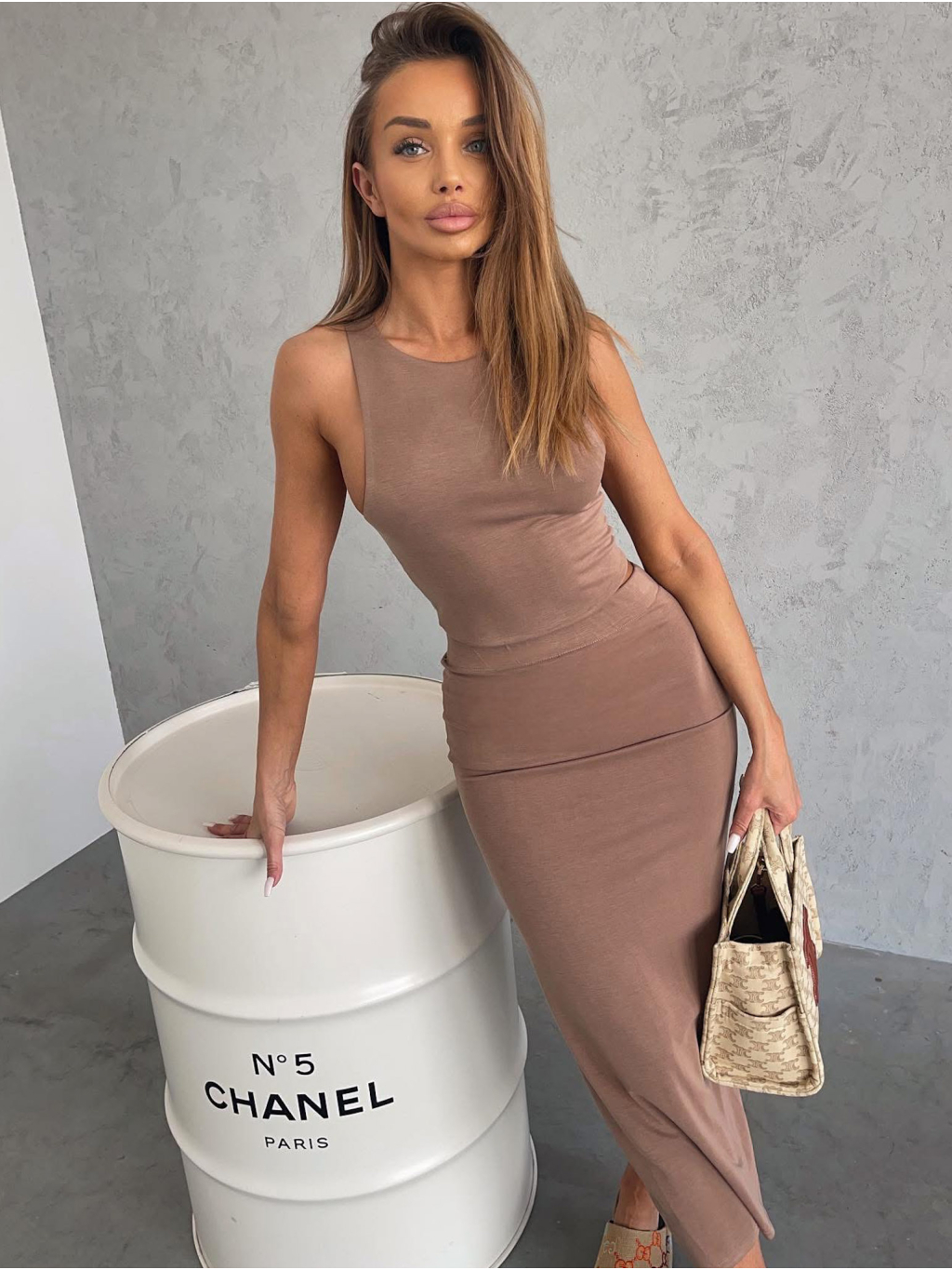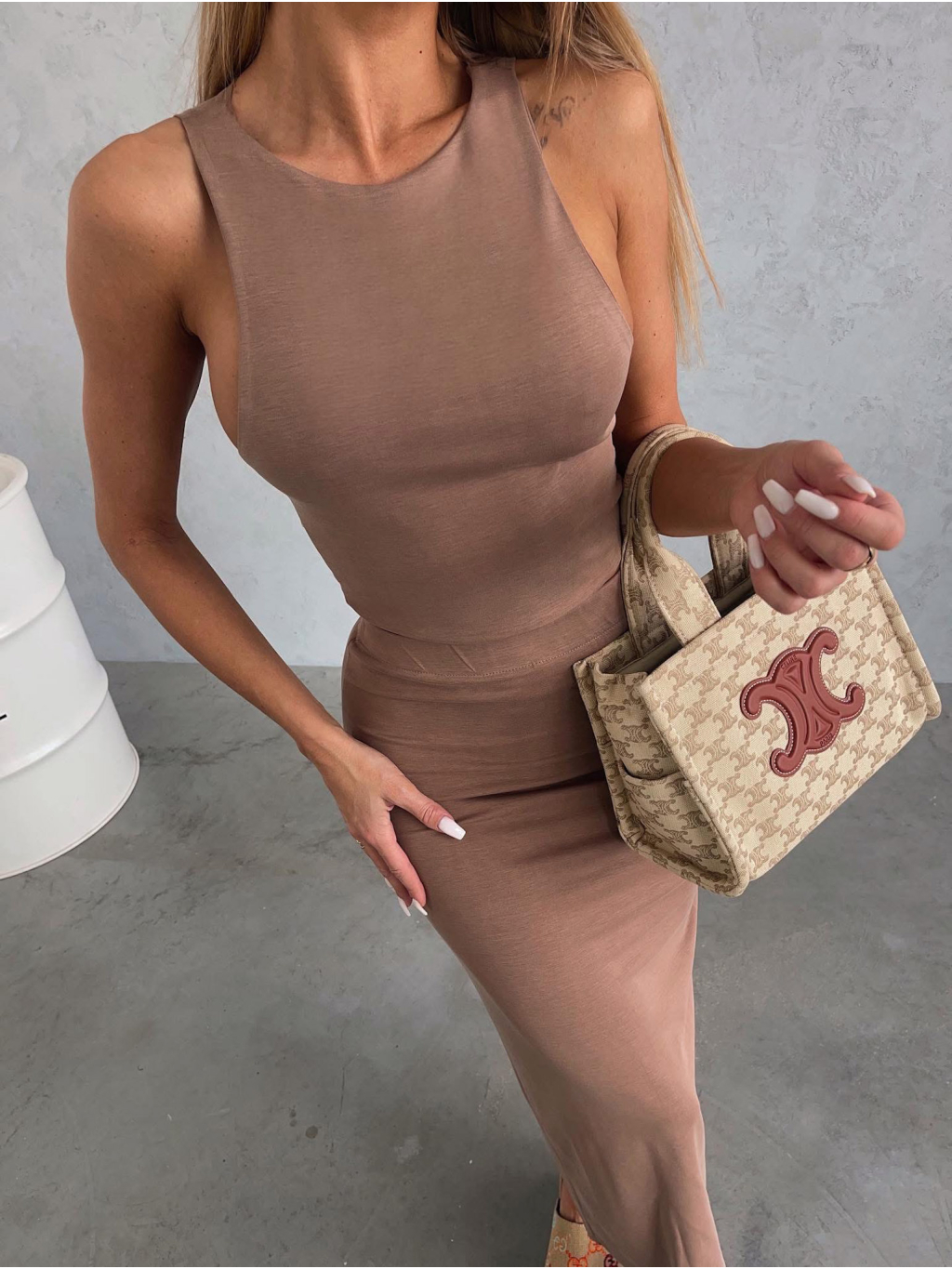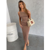 Hnedý dvojdielny elastický komplet DUSERI so sukňou