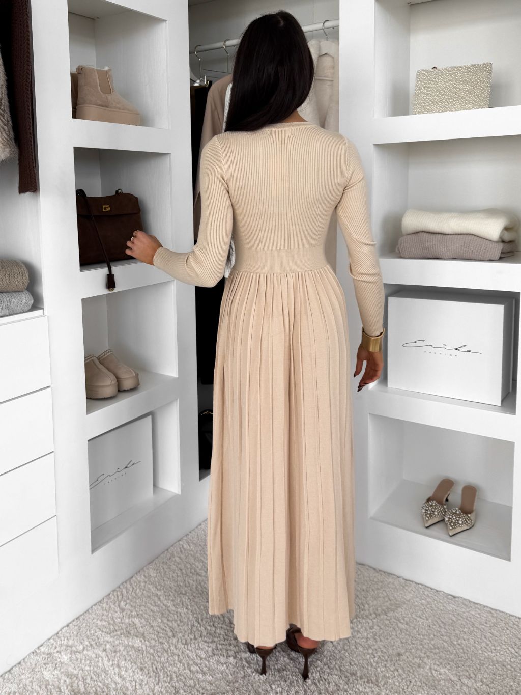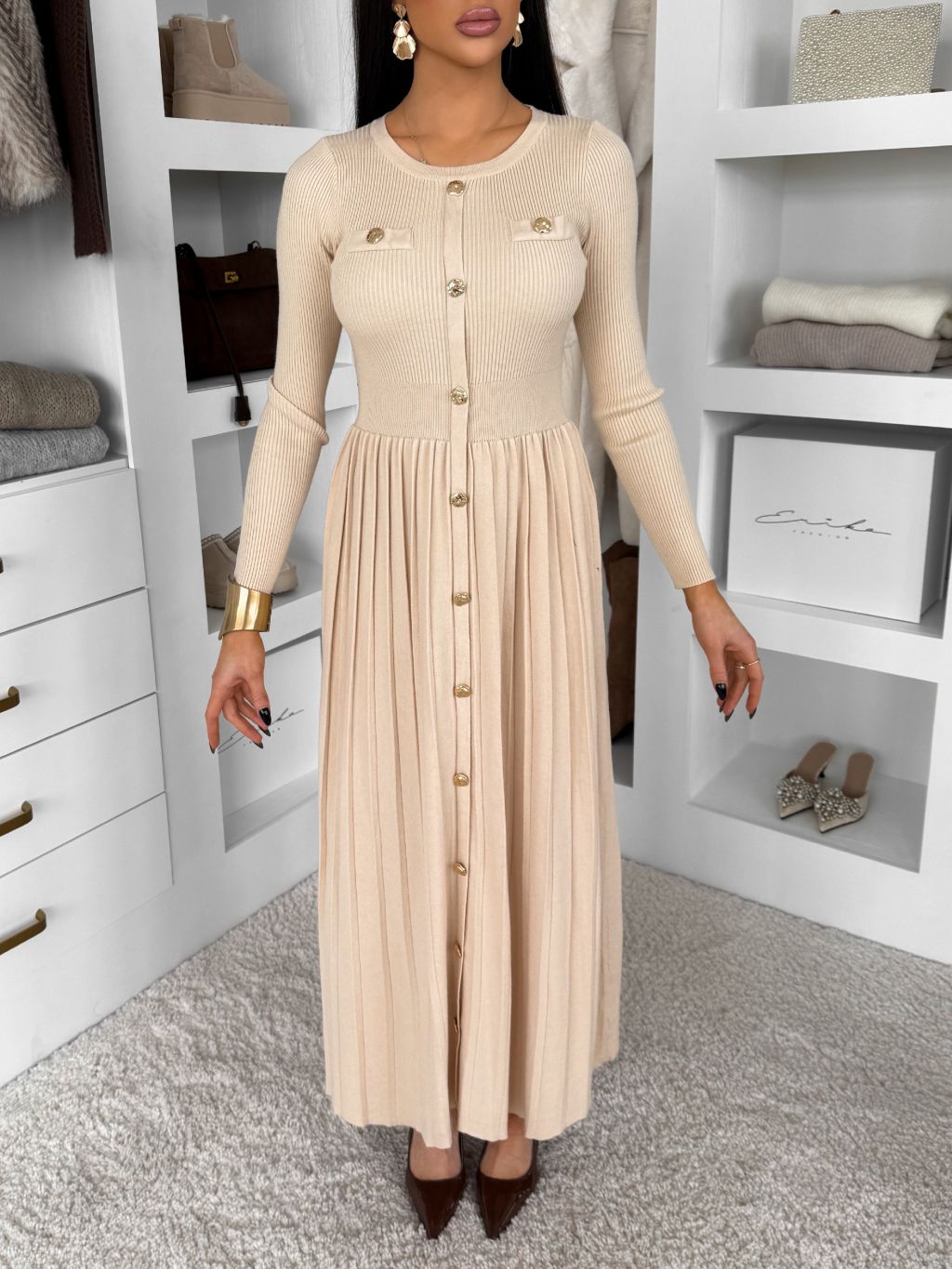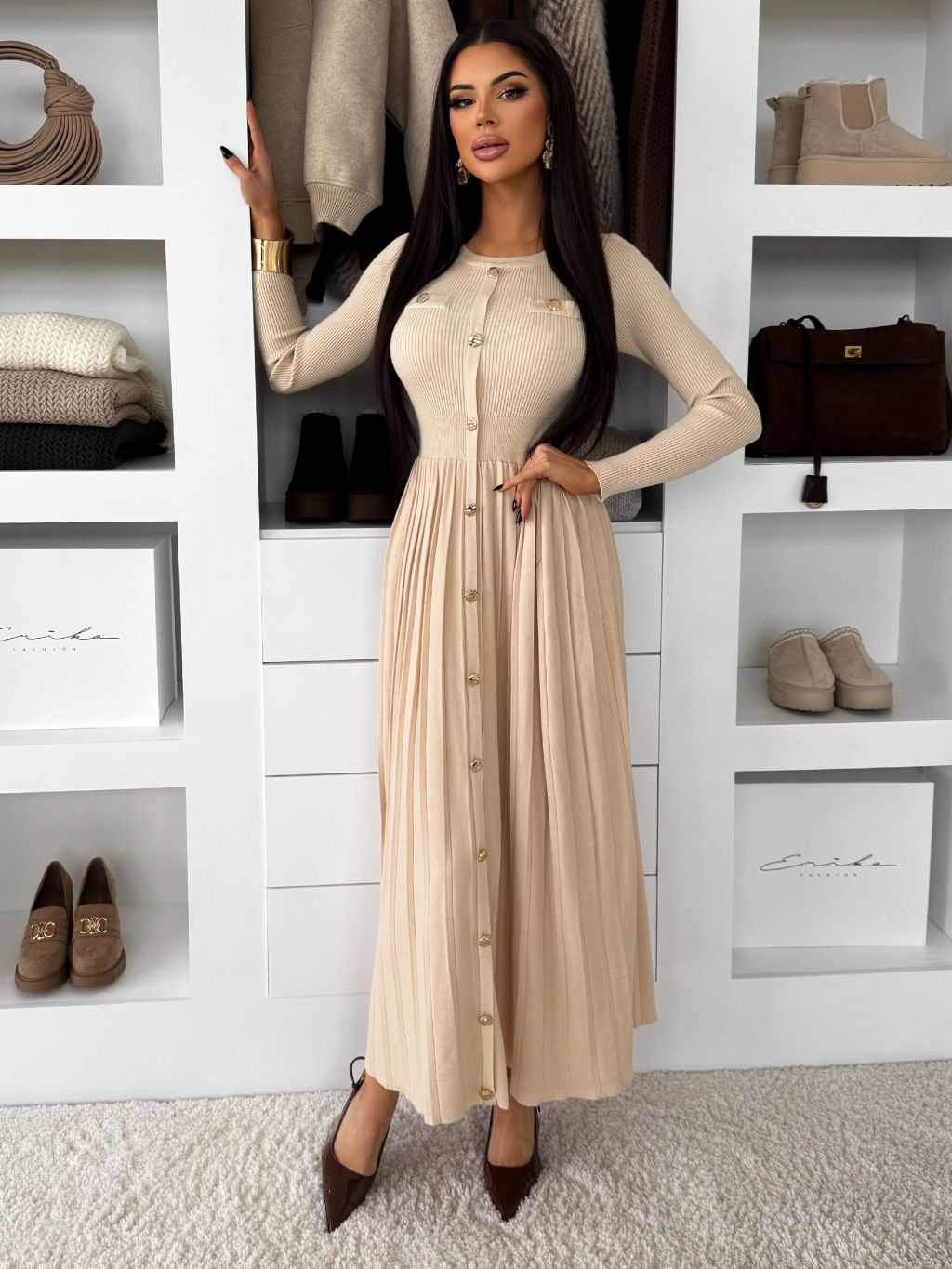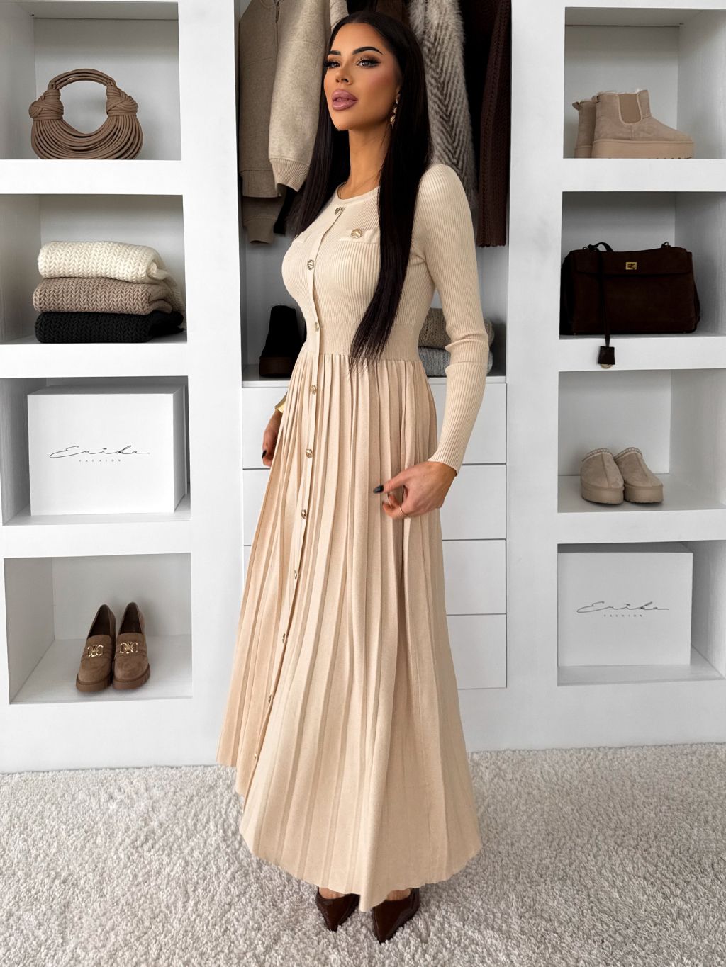 Krémové dlhé šaty TYMORAE s dlhým rukávom