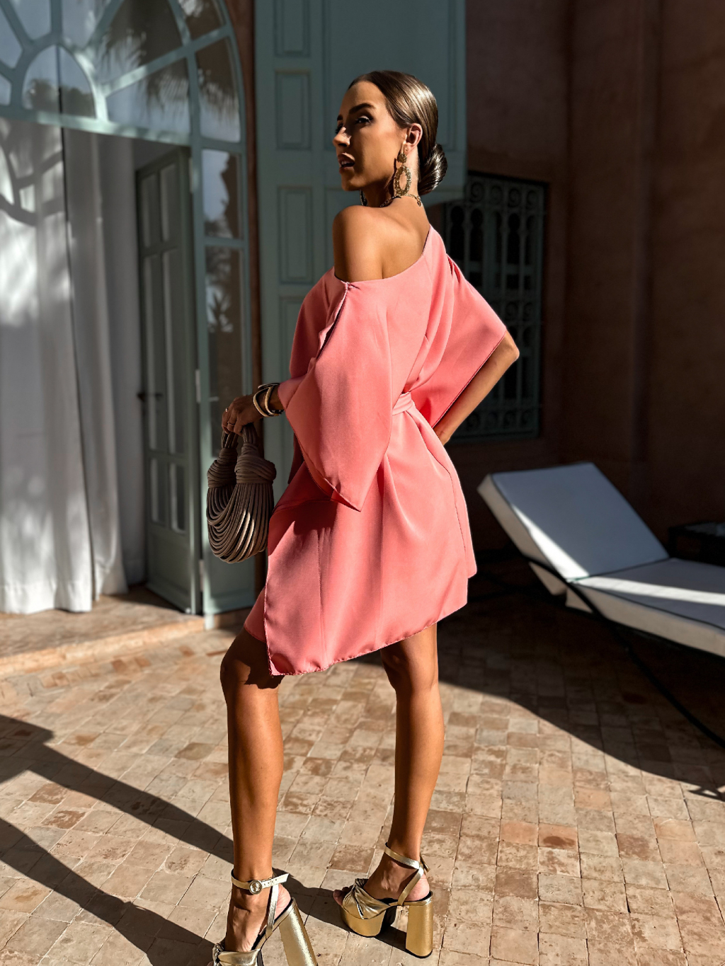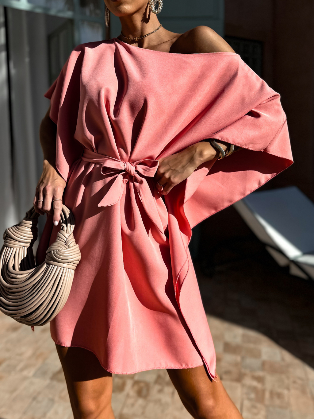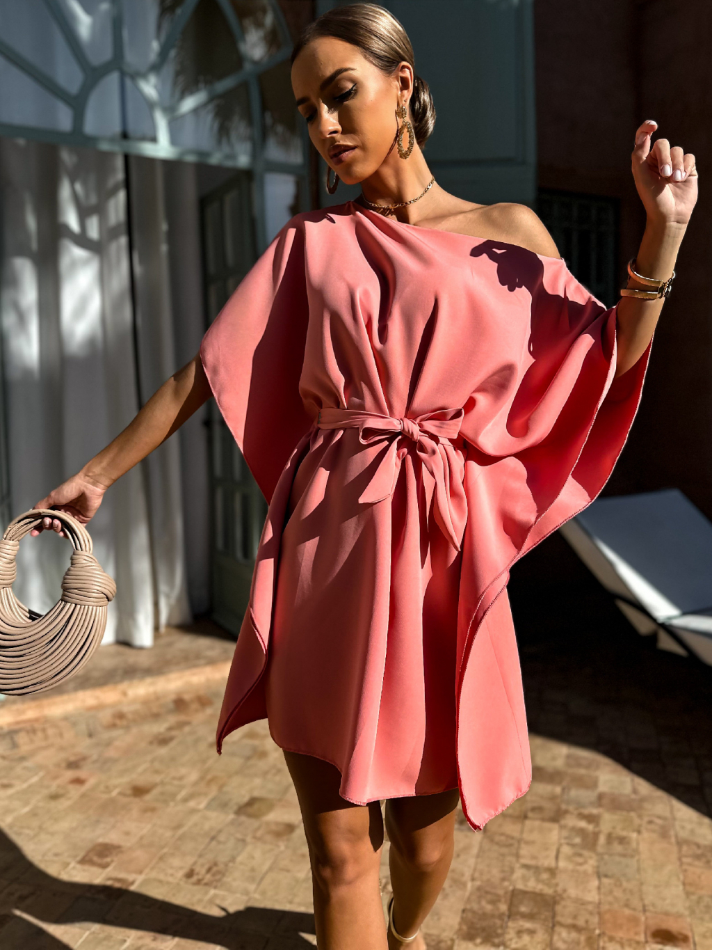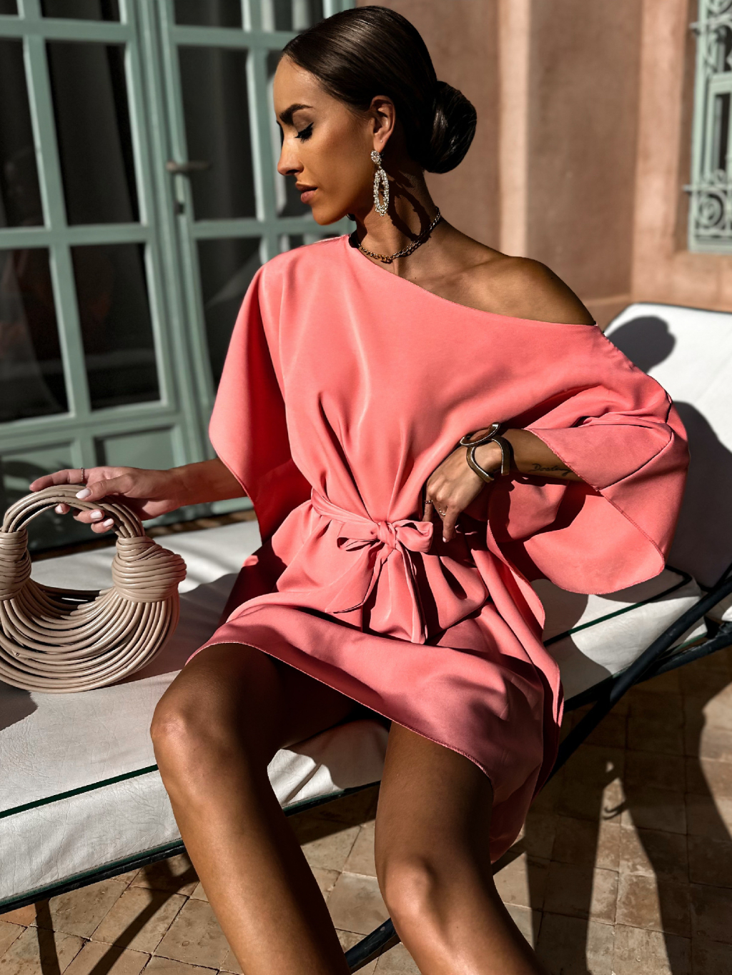 Lososové oversize jednoduché zaväzovacie šaty GRANDIE