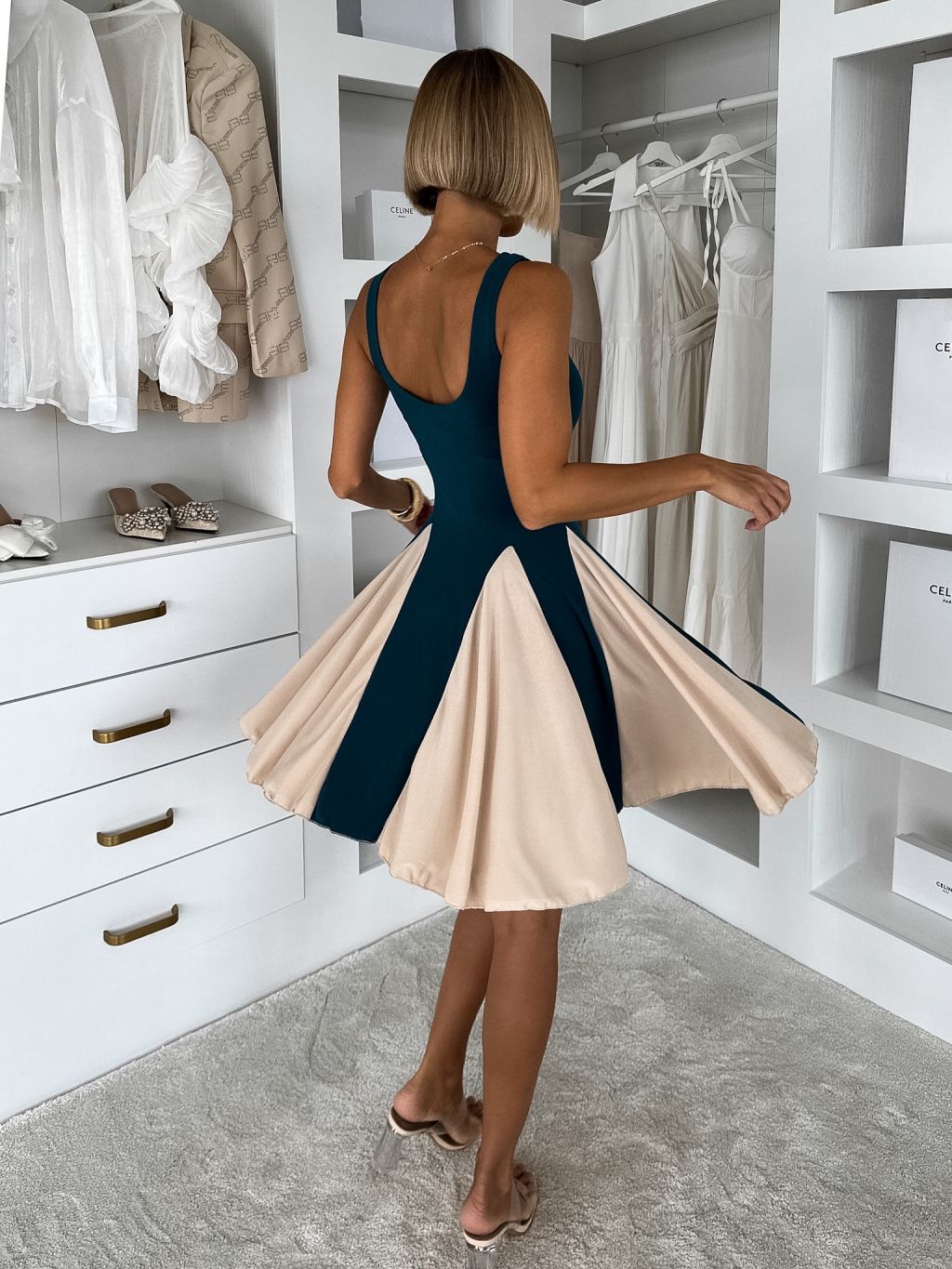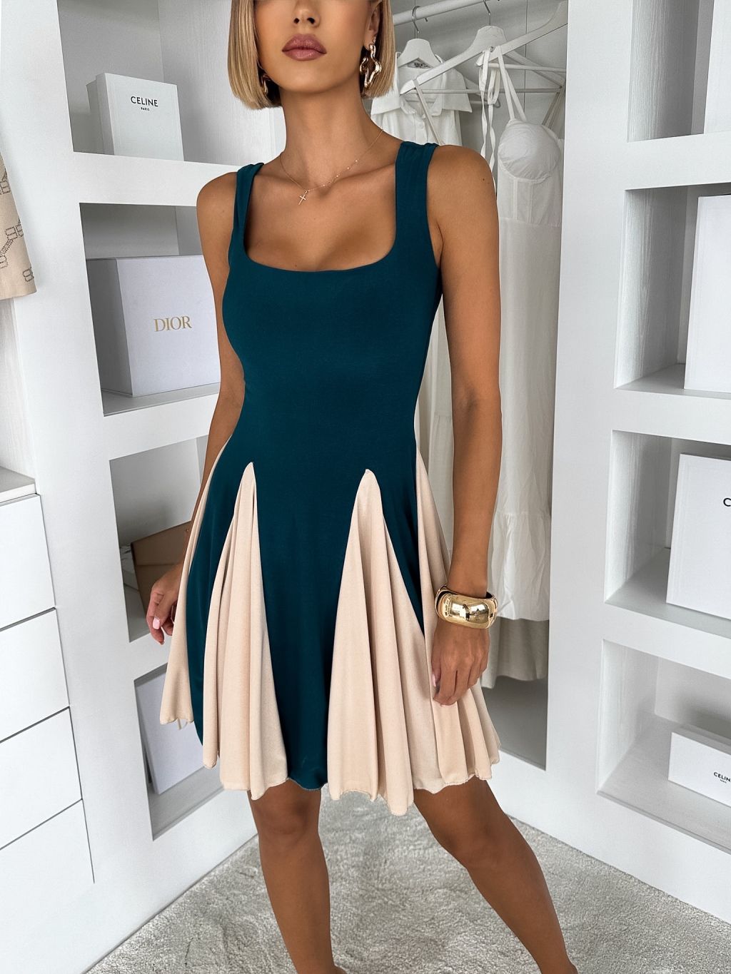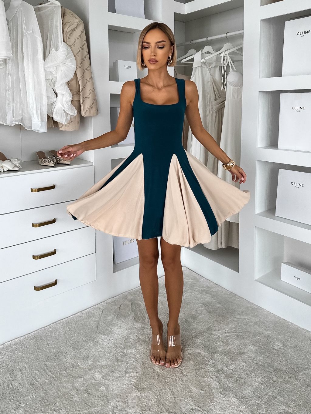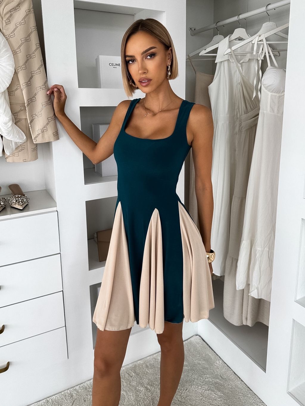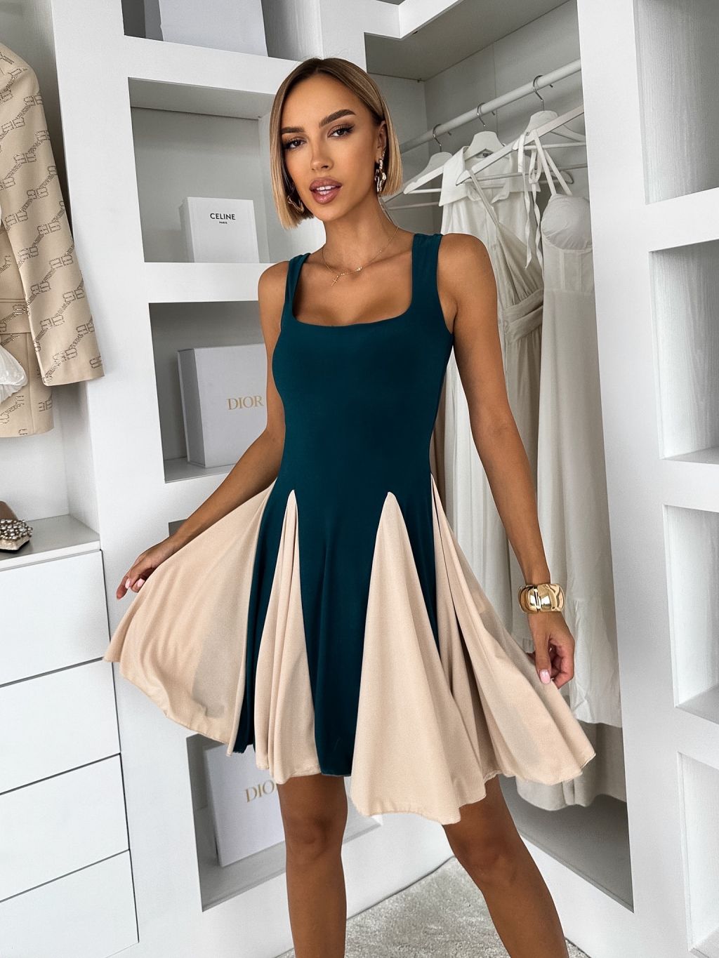 Petrolejové krátke elegantné áčkové šaty NOREZA