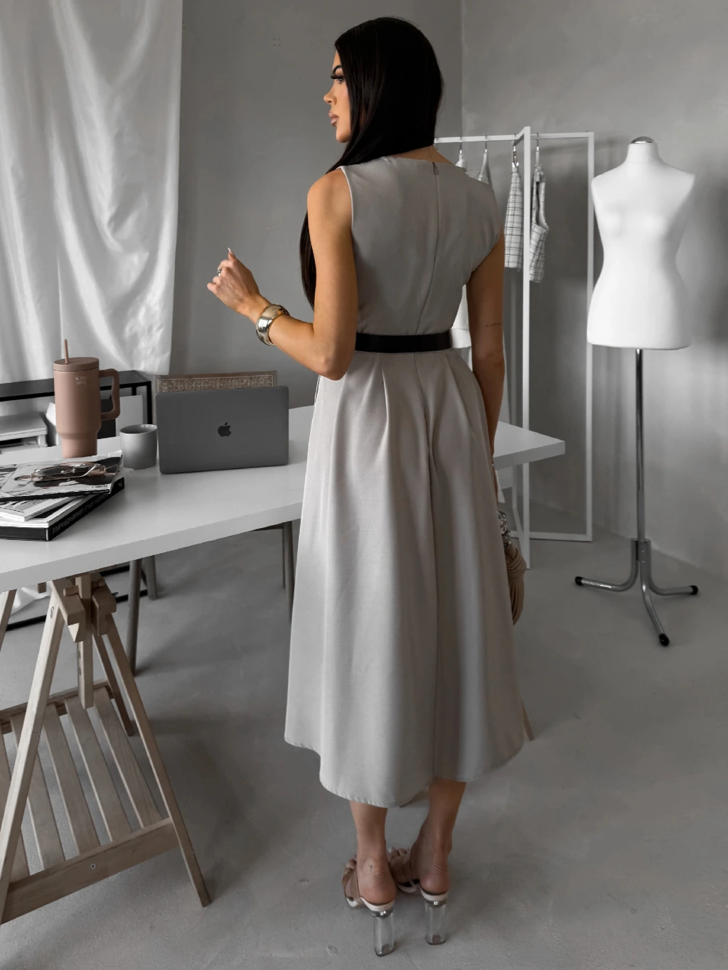 Šedé puzdrové áčkové midi šaty GERARDYS s opaskom