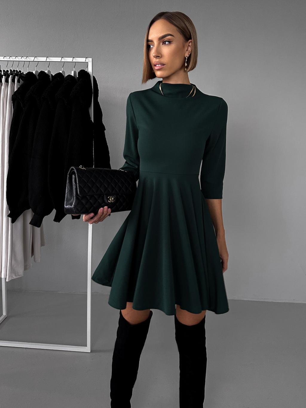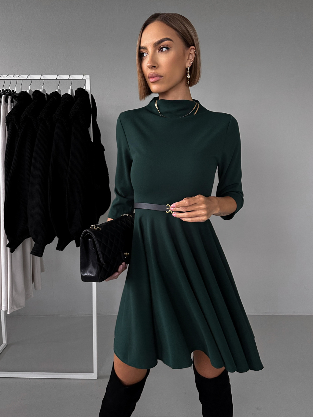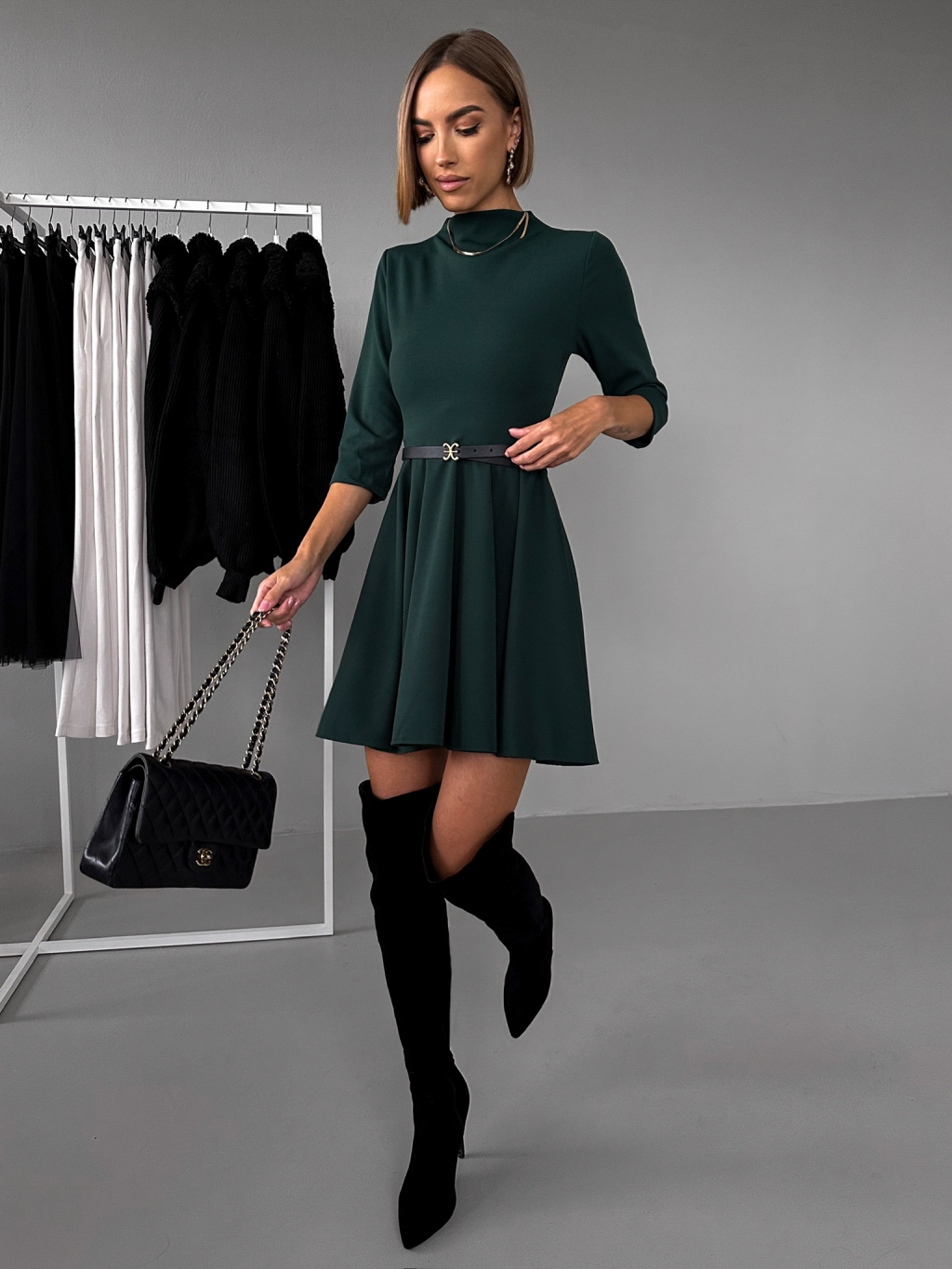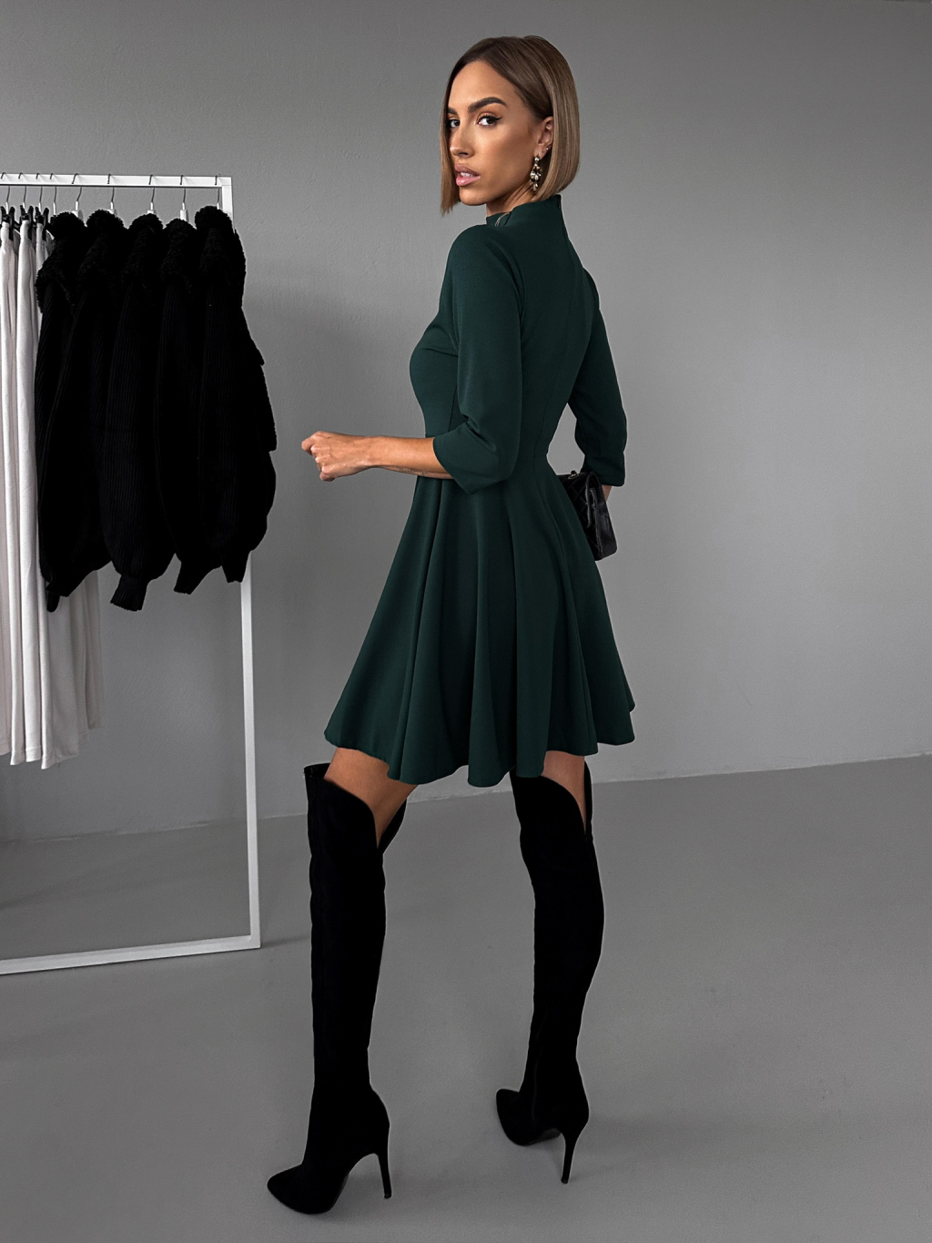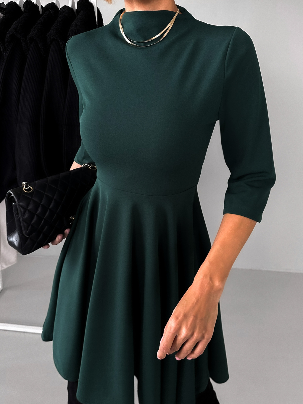Smaragdové áčkové šaty GROUND s dlhým rukávom