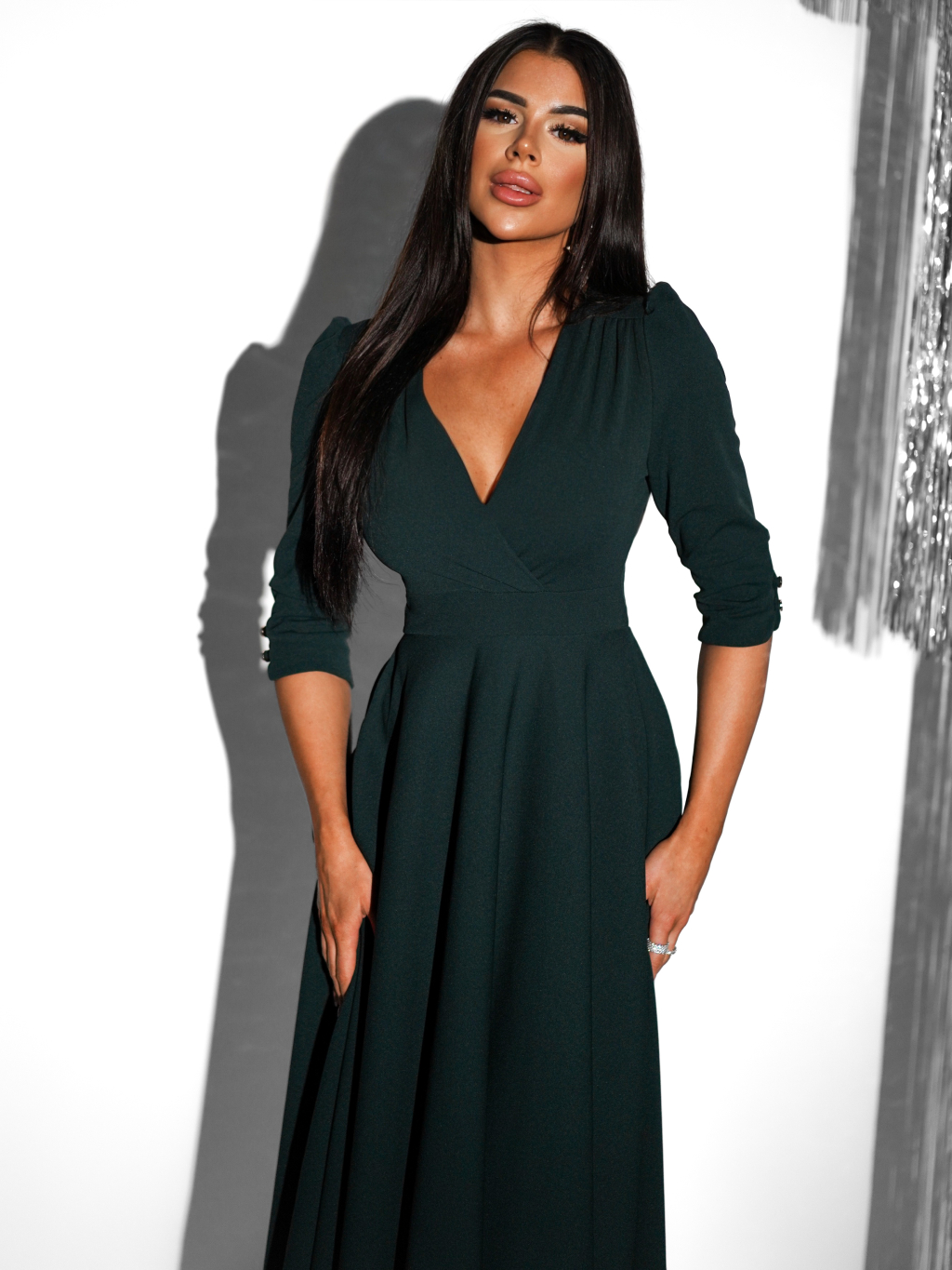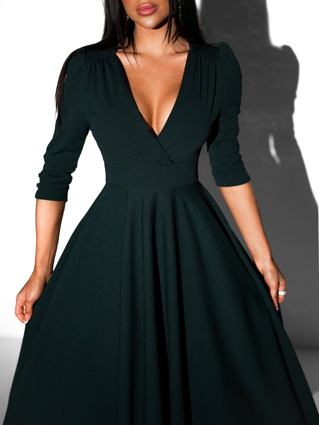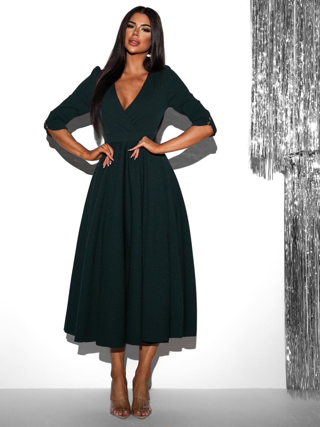 Smaragdové áčkové šaty LAPATA s výstrihom do V