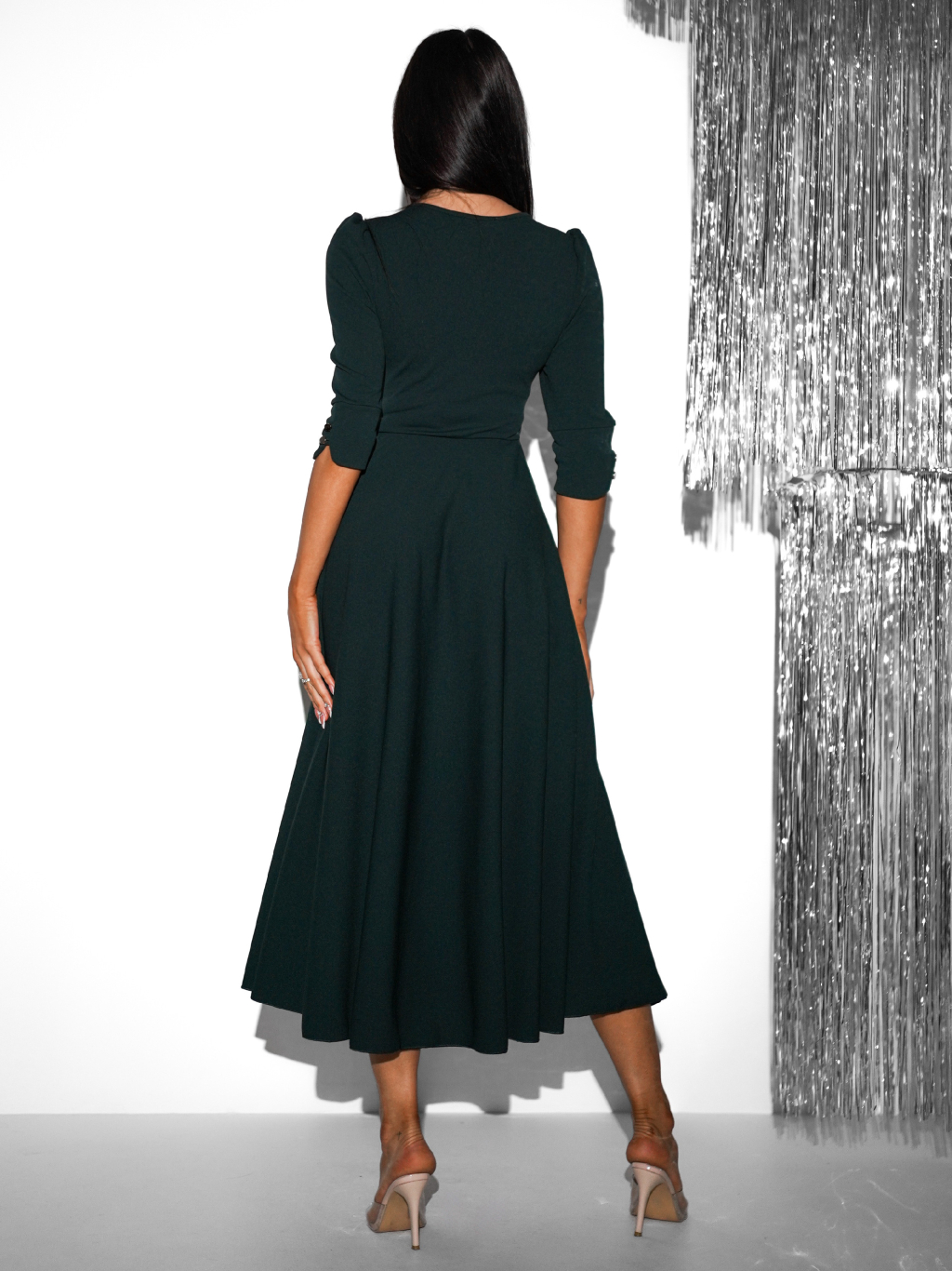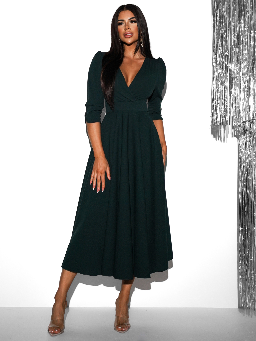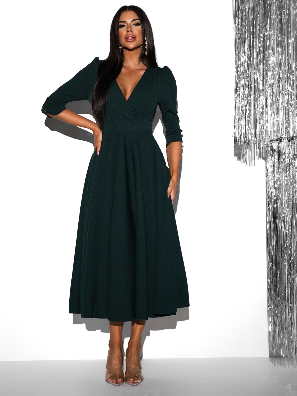 Smaragdové áčkové šaty LAPATA s výstrihom do V