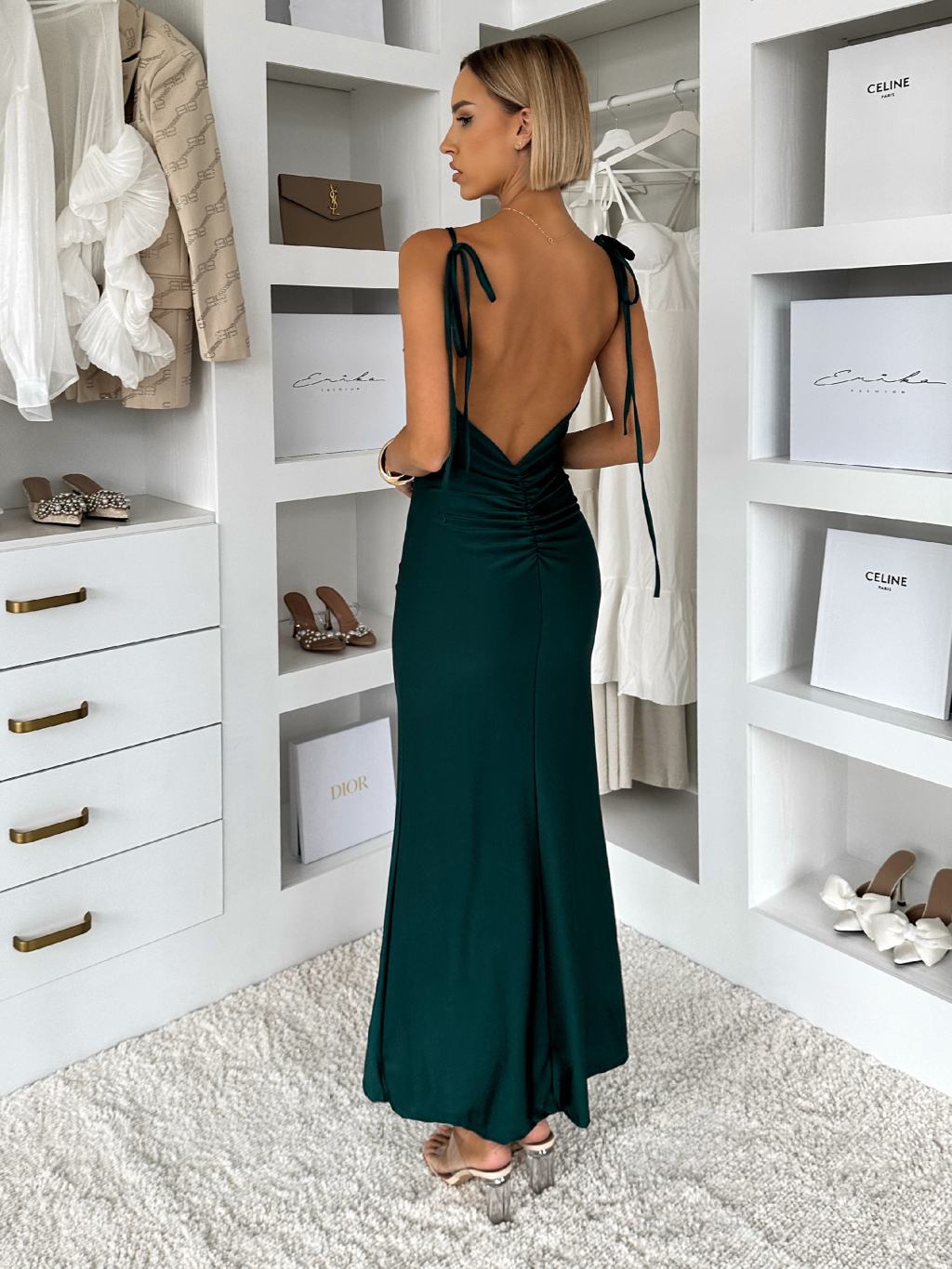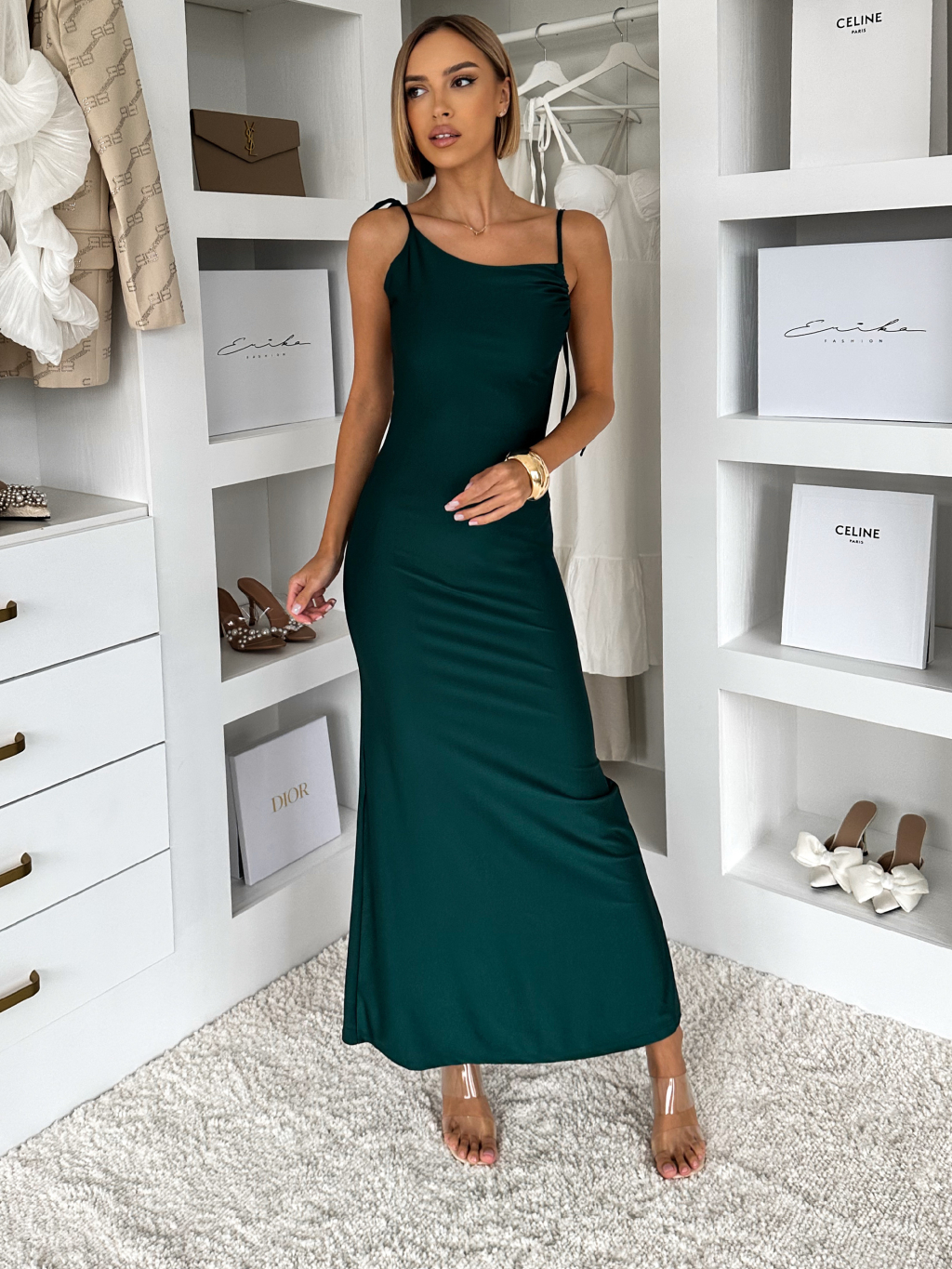 Smaragdové spoločenské šaty MATYIA so zaväzovaním na ramenách