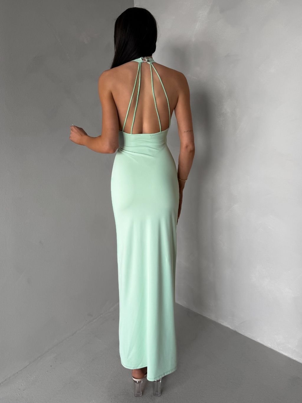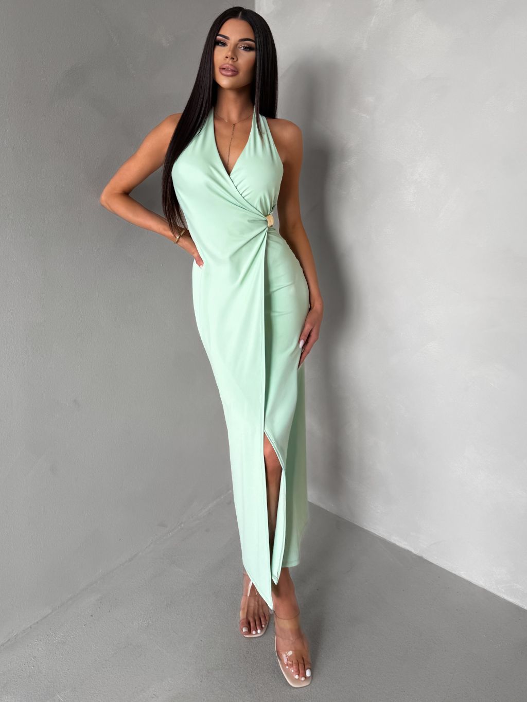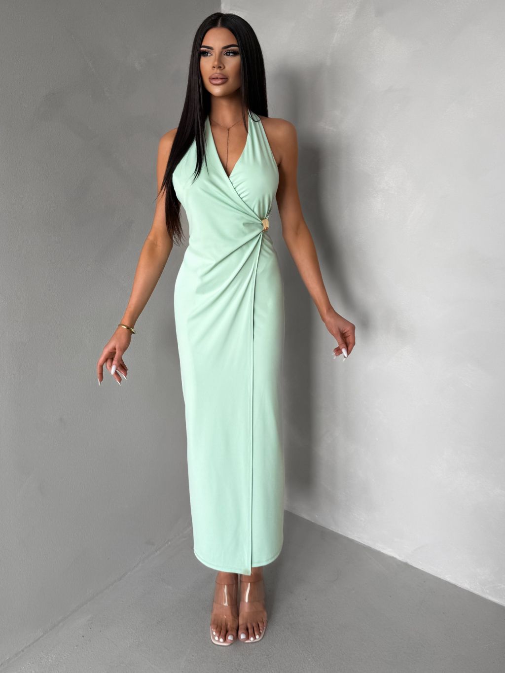 Svetlo zelené dlhé elegantné šaty KALIXA