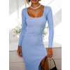 Svetlomodré rebrované šaty MOHEGAN s rázporkom