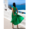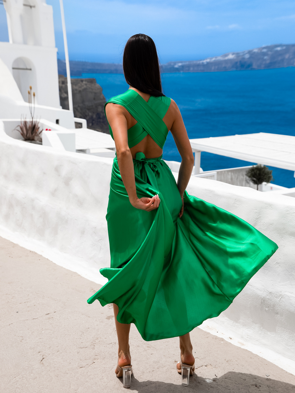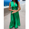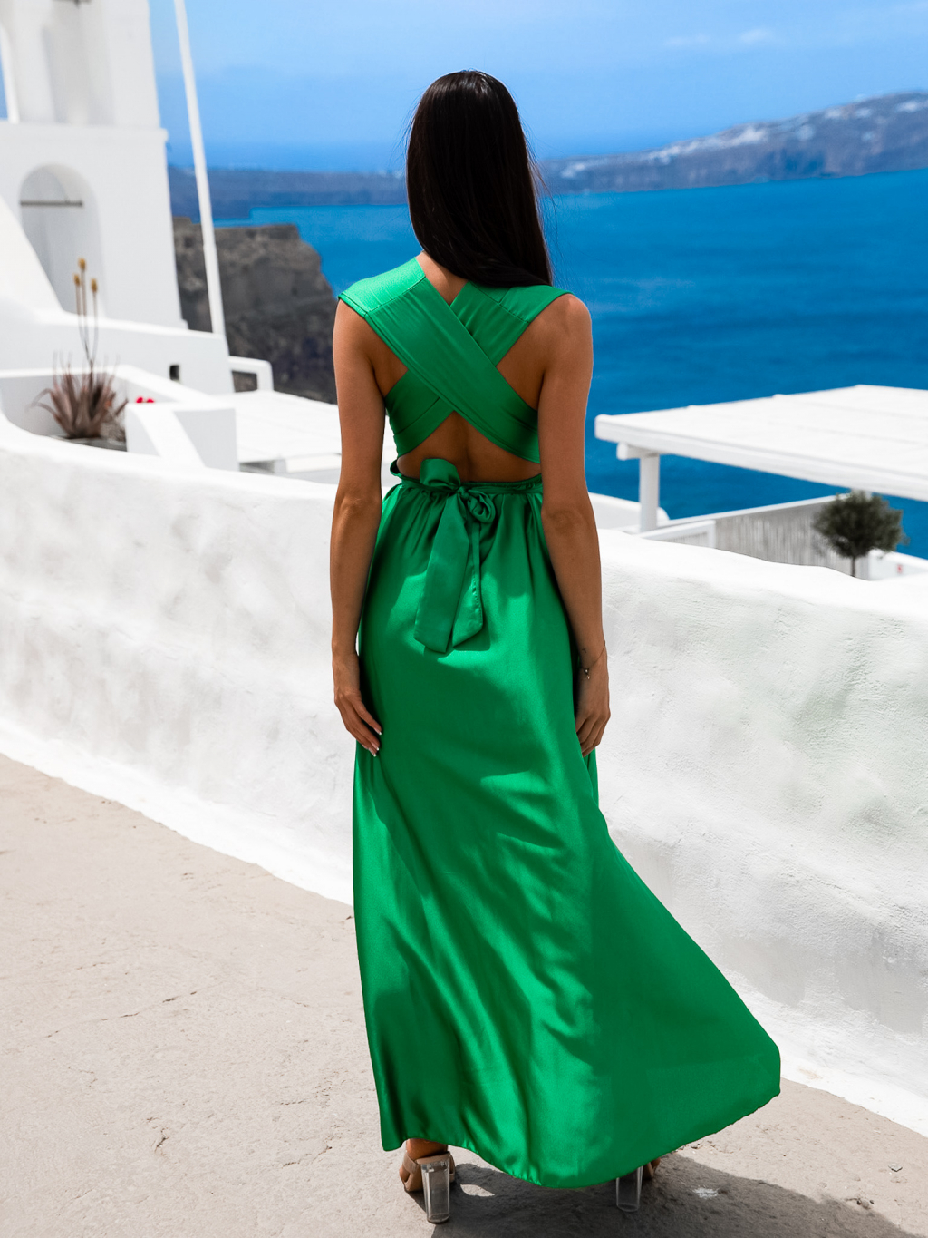 Zelené lesklé šaty VALERDI s variabilným viazaním a rázporkom