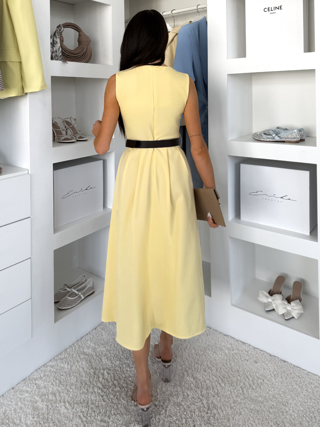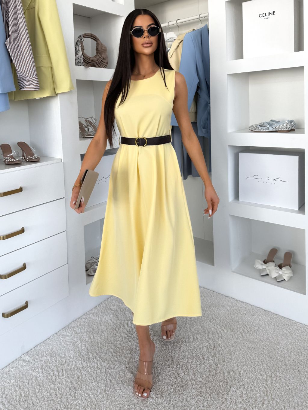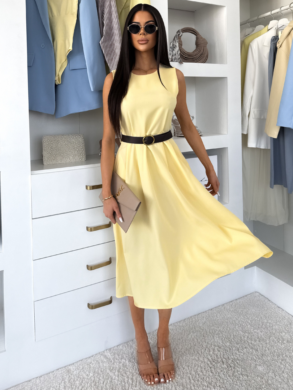 Žlté puzdrové áčkové midi šaty GERARDYS s opaskom