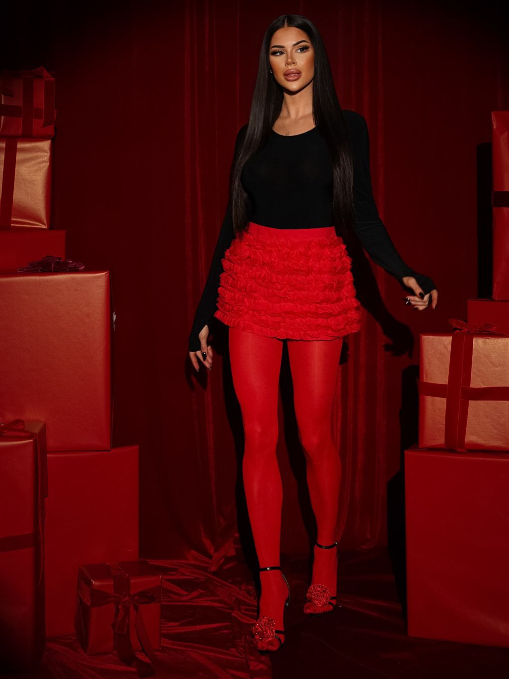 Červené volánikové kraťasky so sukňou JEANETTE