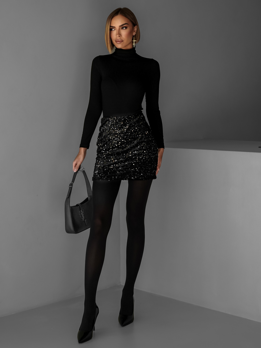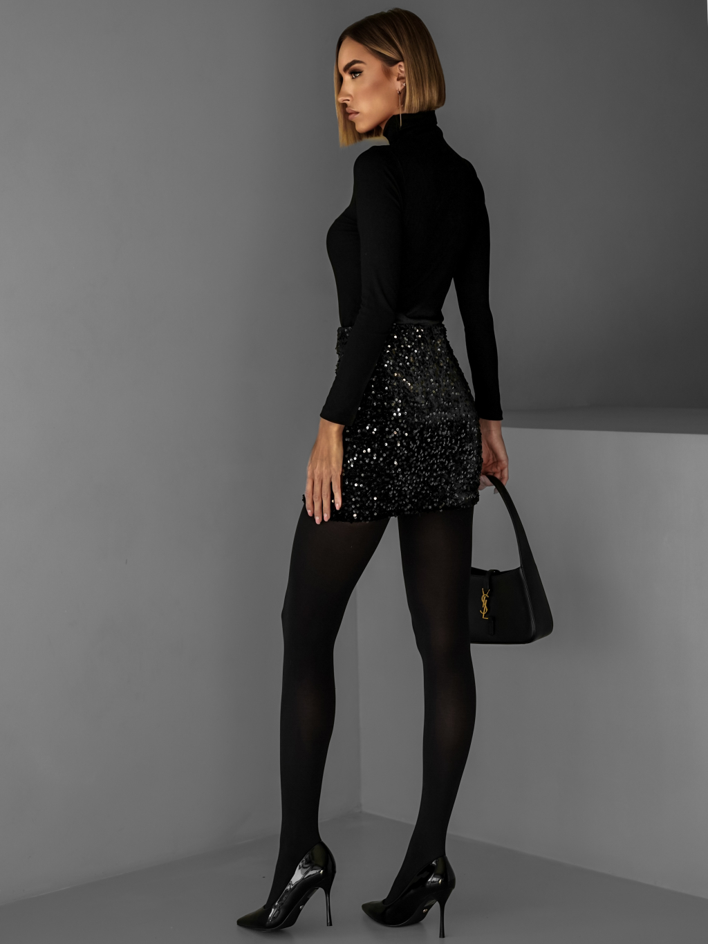 Čierna flitrovaná mini sukňa KEOMA