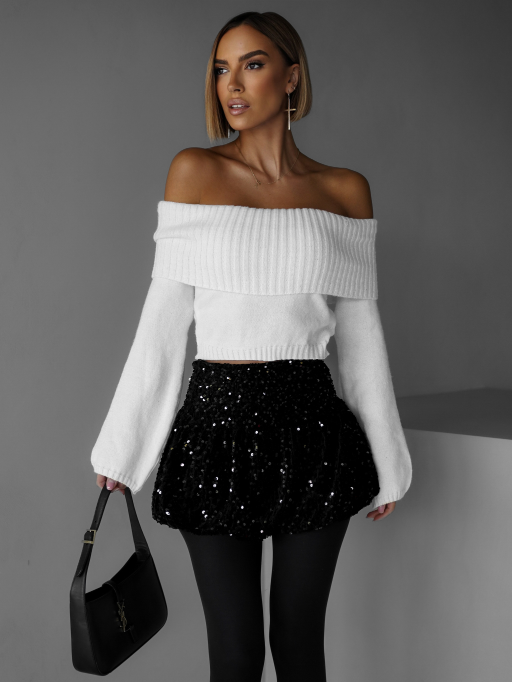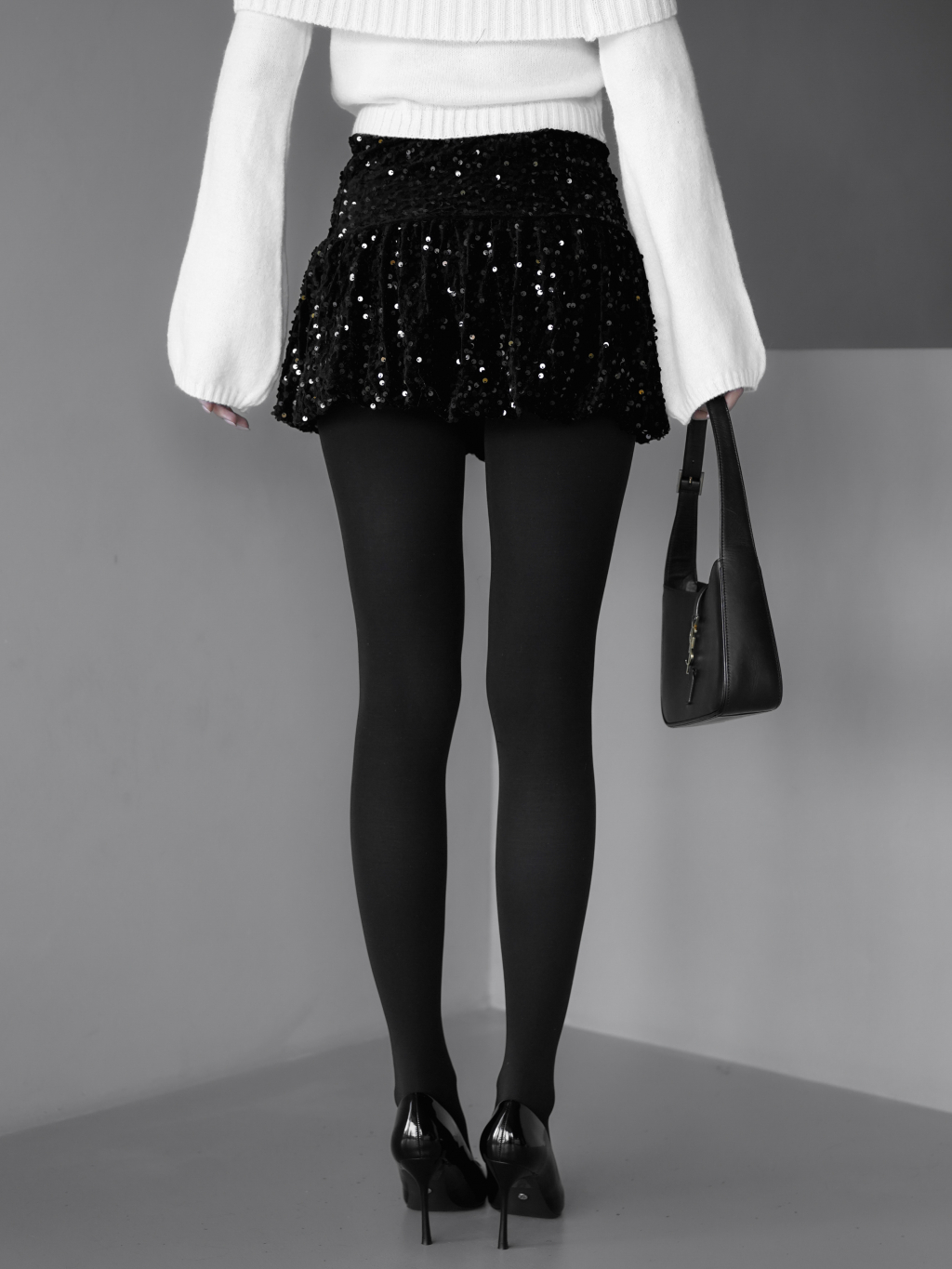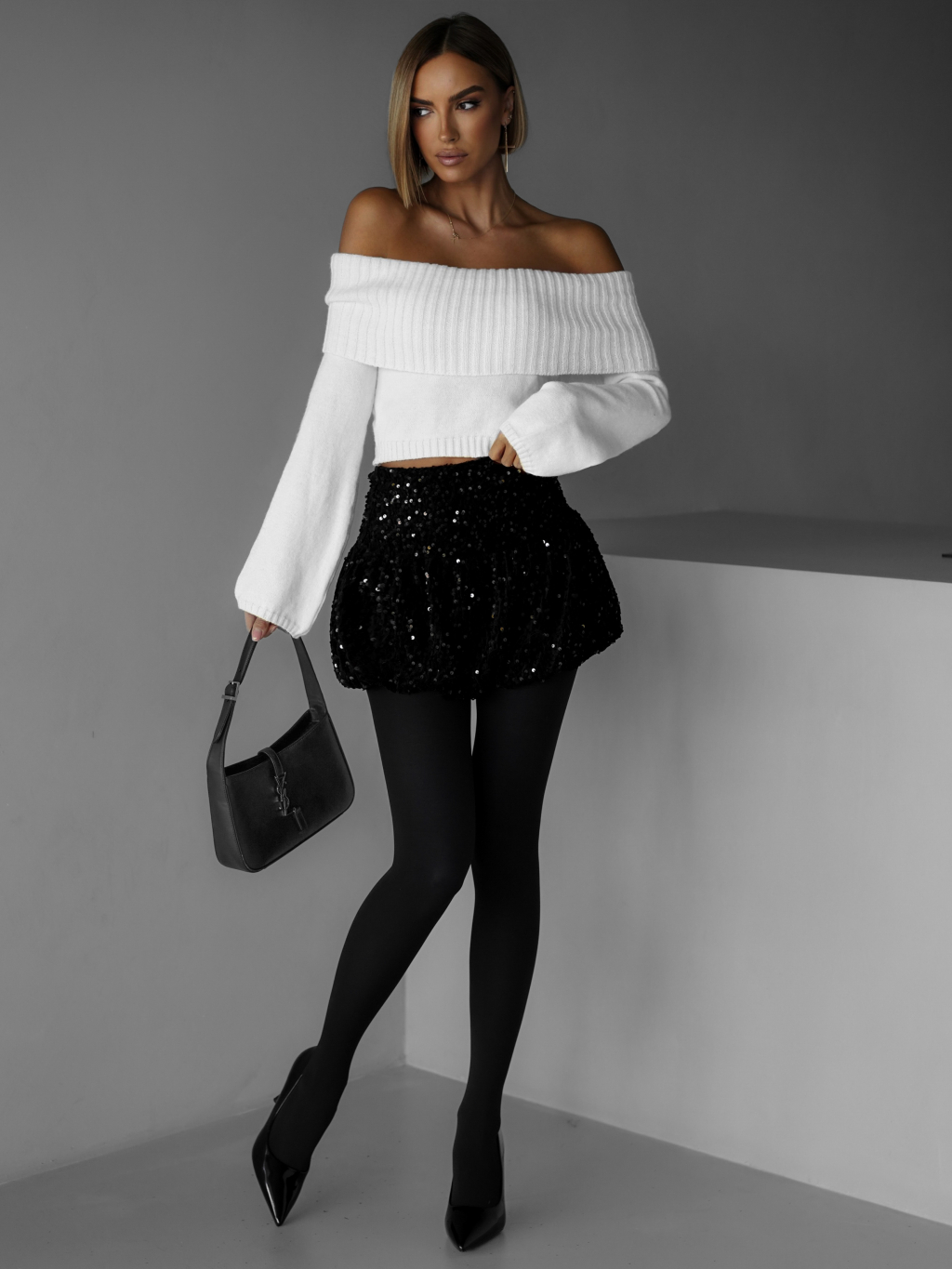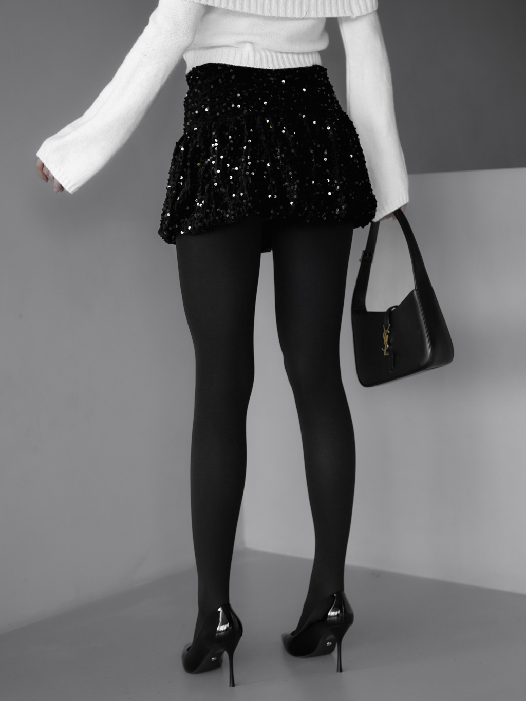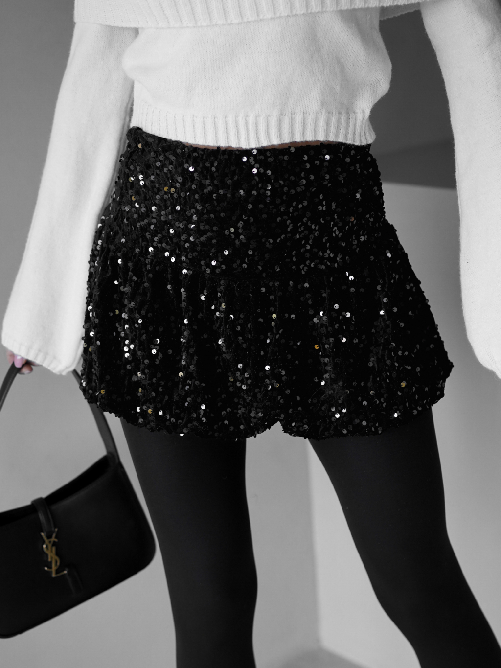 Čierna mini balónová flitrovaná sukňa CHAIM