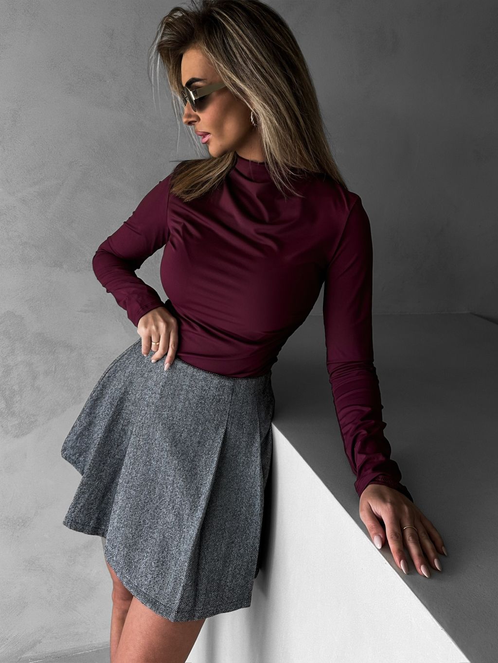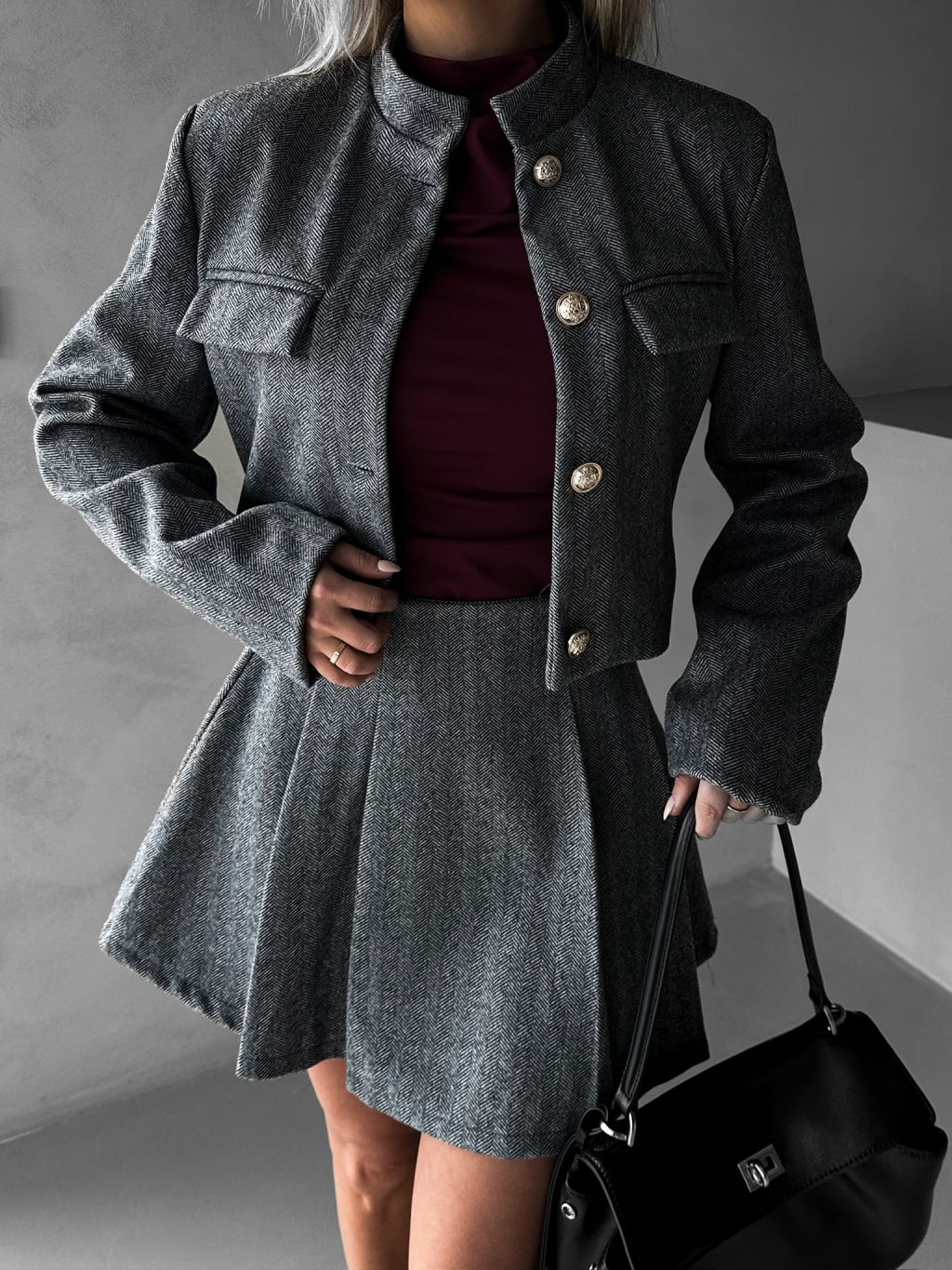 Šedá krátka skladaná sukňa PILIPO