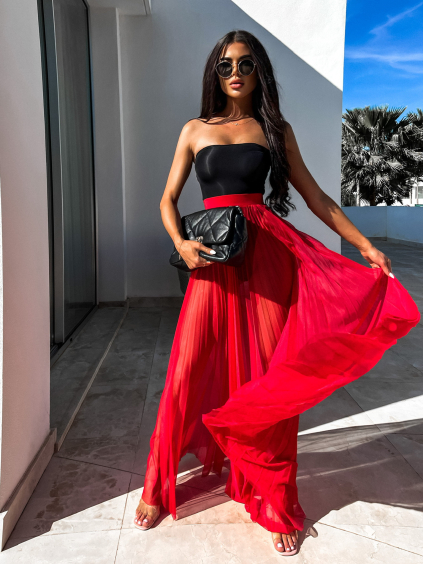 Čierna plisovaná dlhá sukňa AUKE s denimom