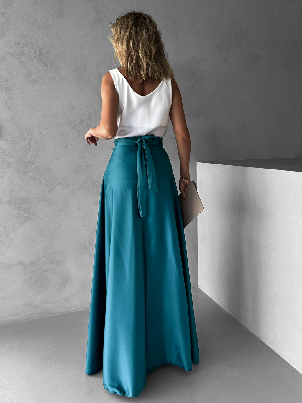 Svetlo petrolejová dlhá zavinovacia saténová sukňa DENISSE