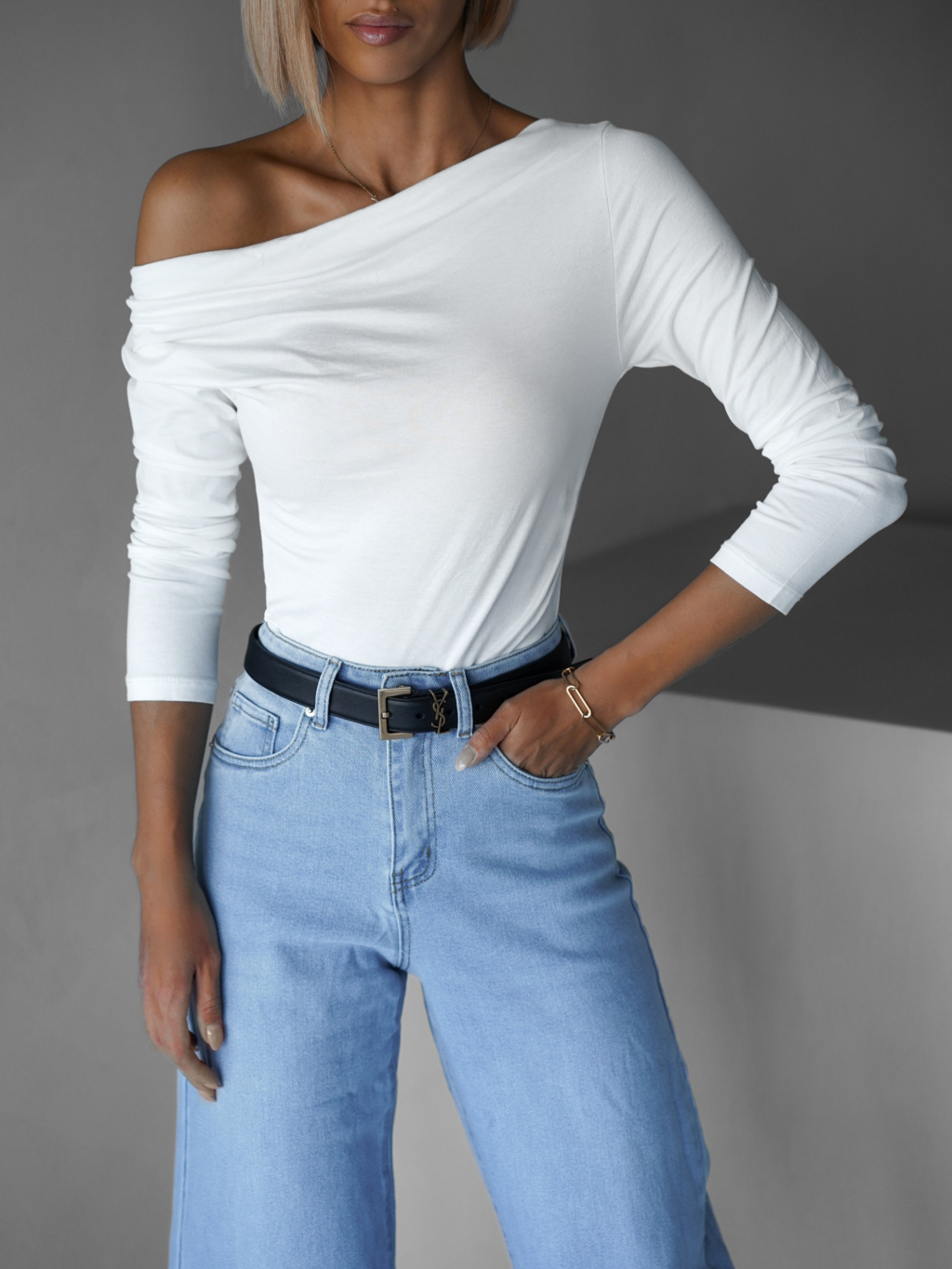Biele tričko LOGENA s dlhým rukávom