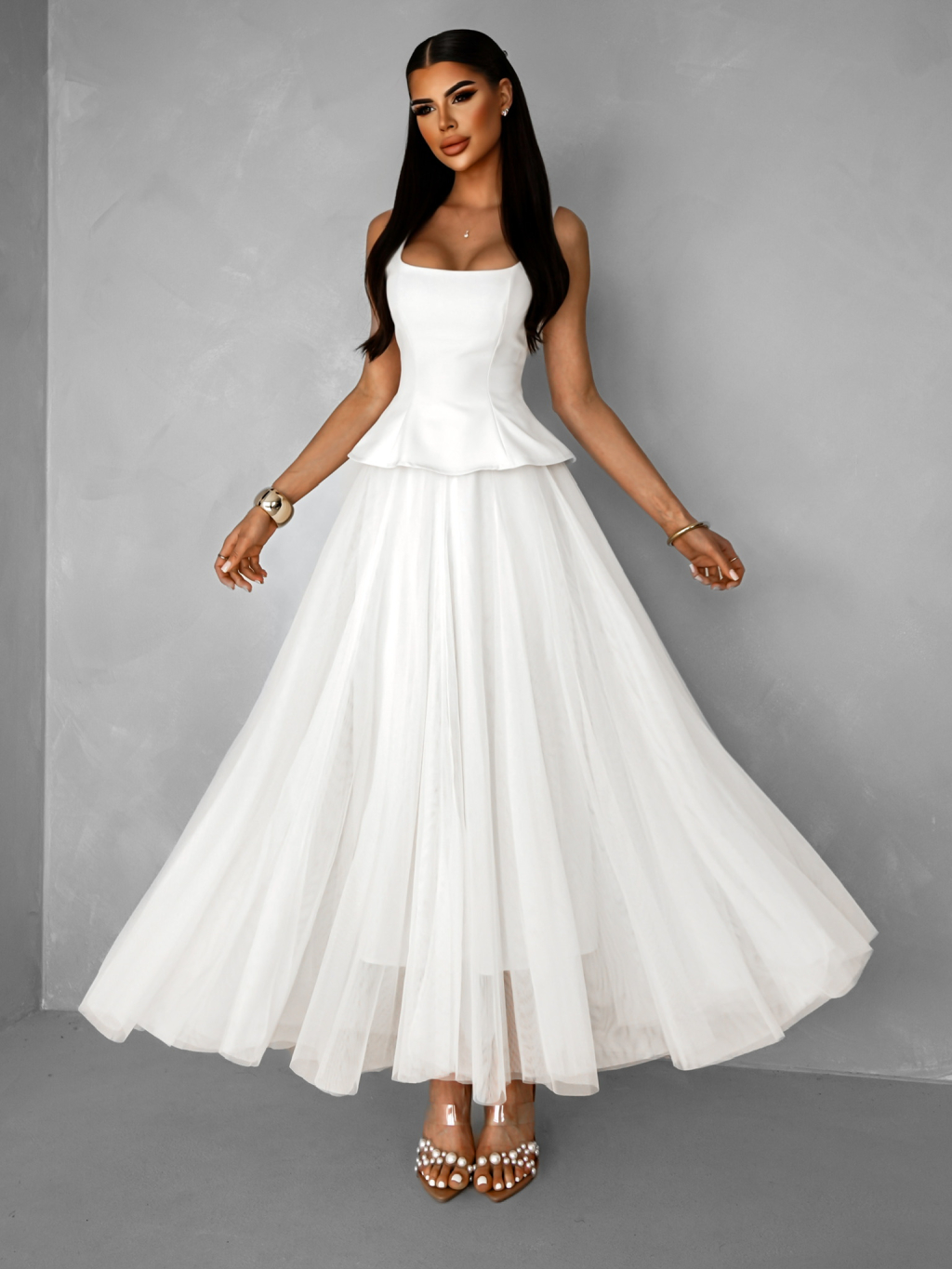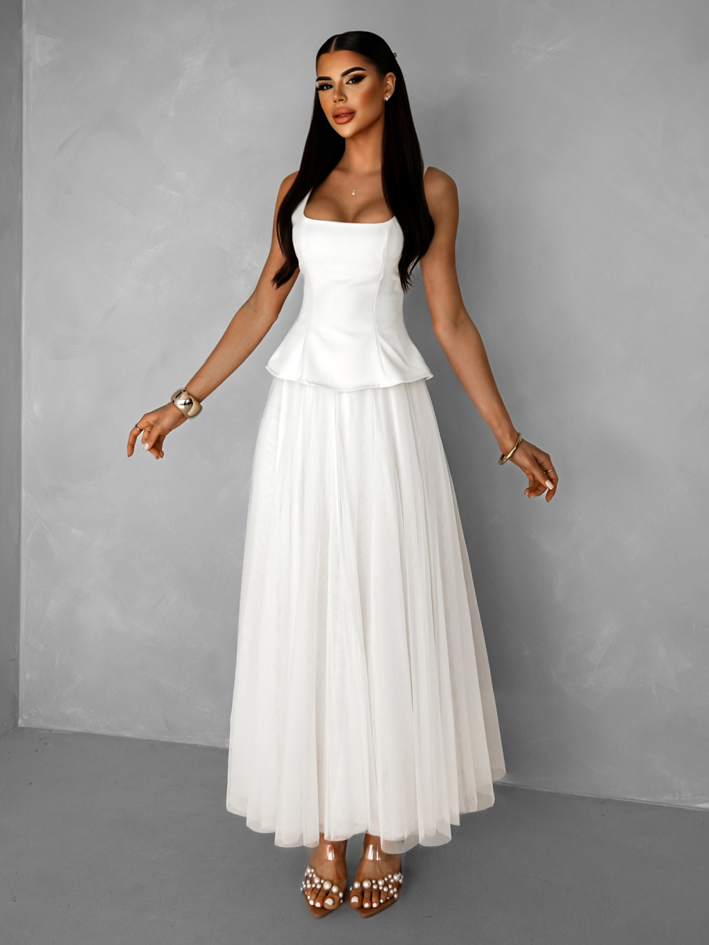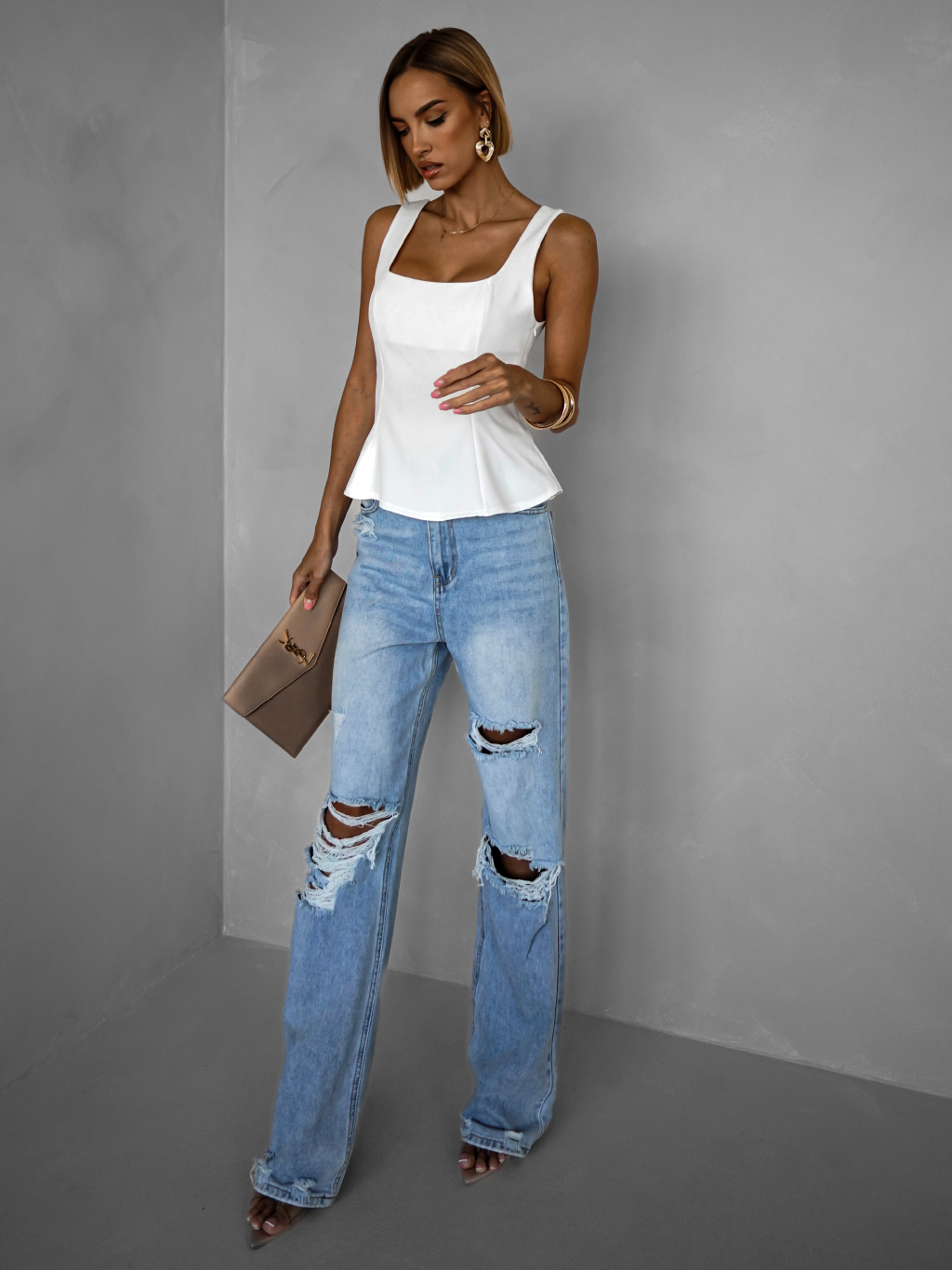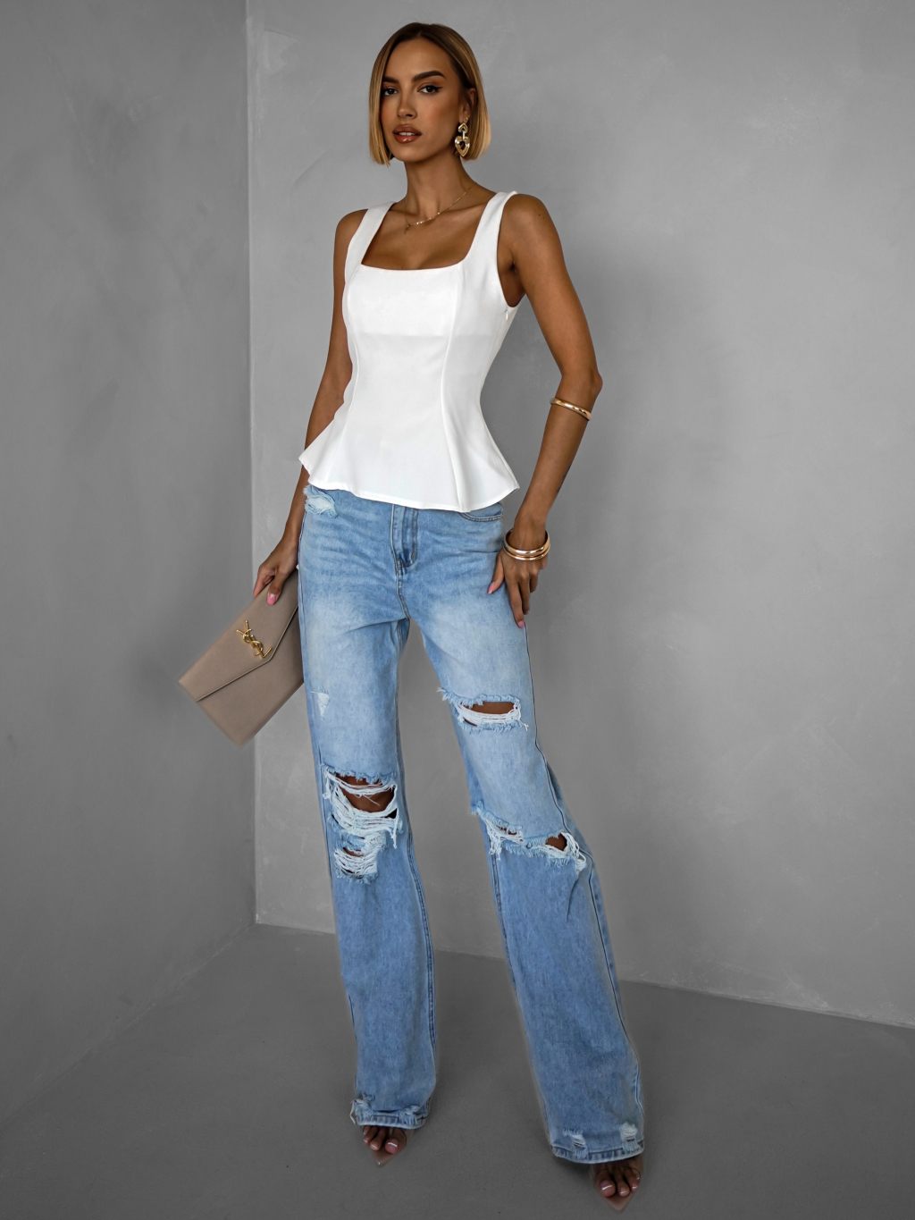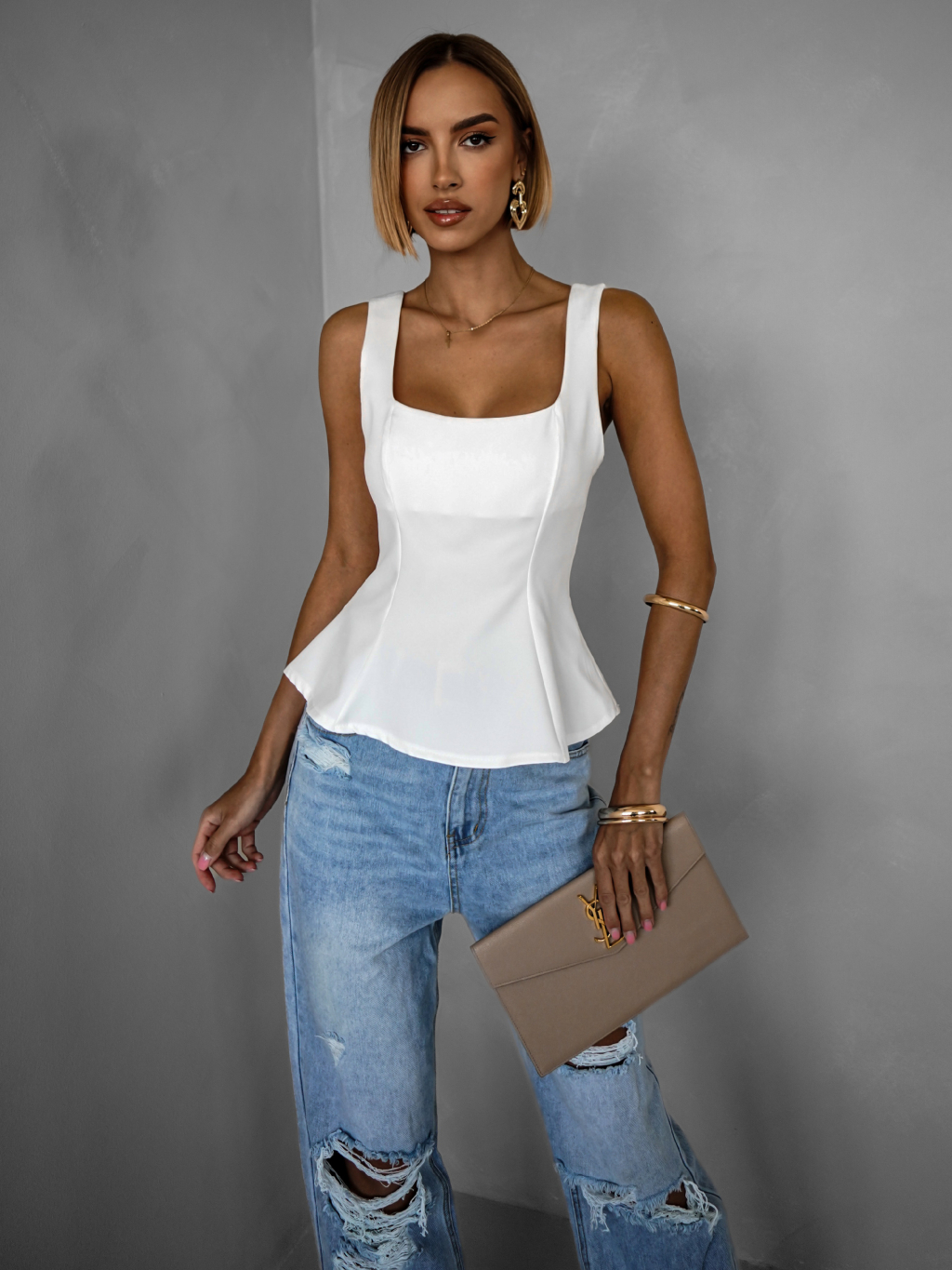 Biely elegantný vypasovaný top SAPHIRE