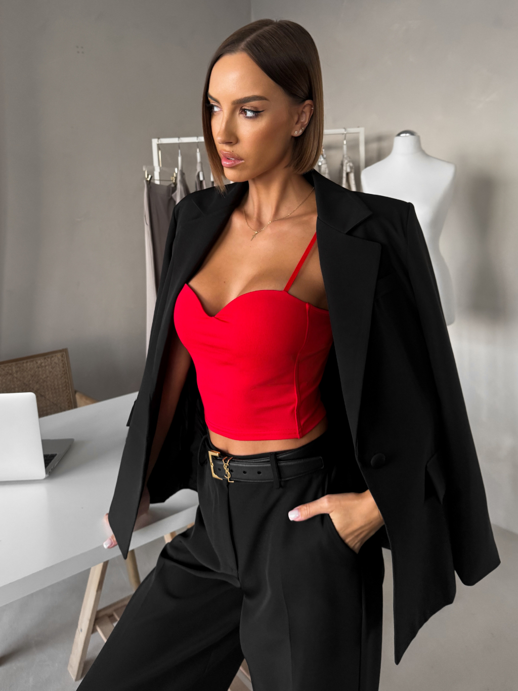 Červený krátky korzetový top BRONZE