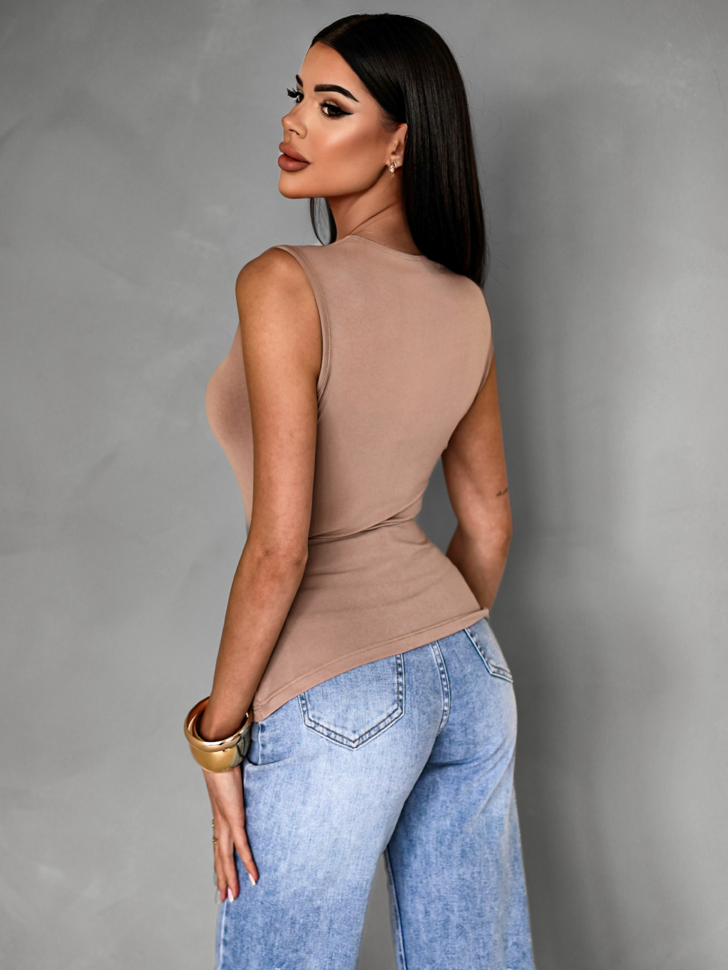 Hnedý elegantný top CRAGHAS so zlatou sponou