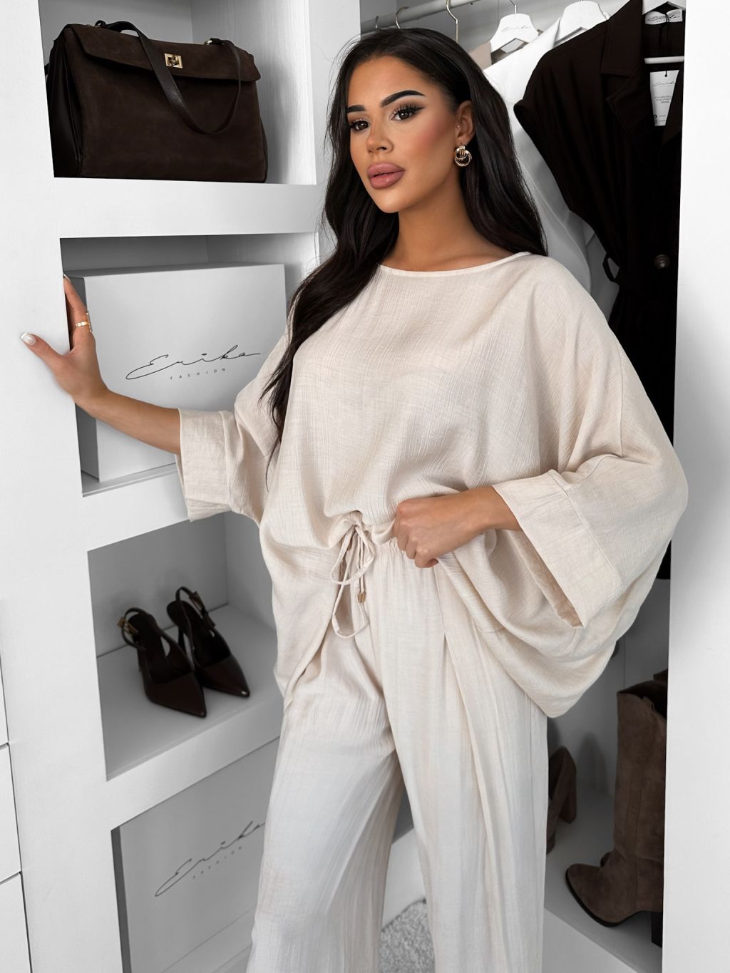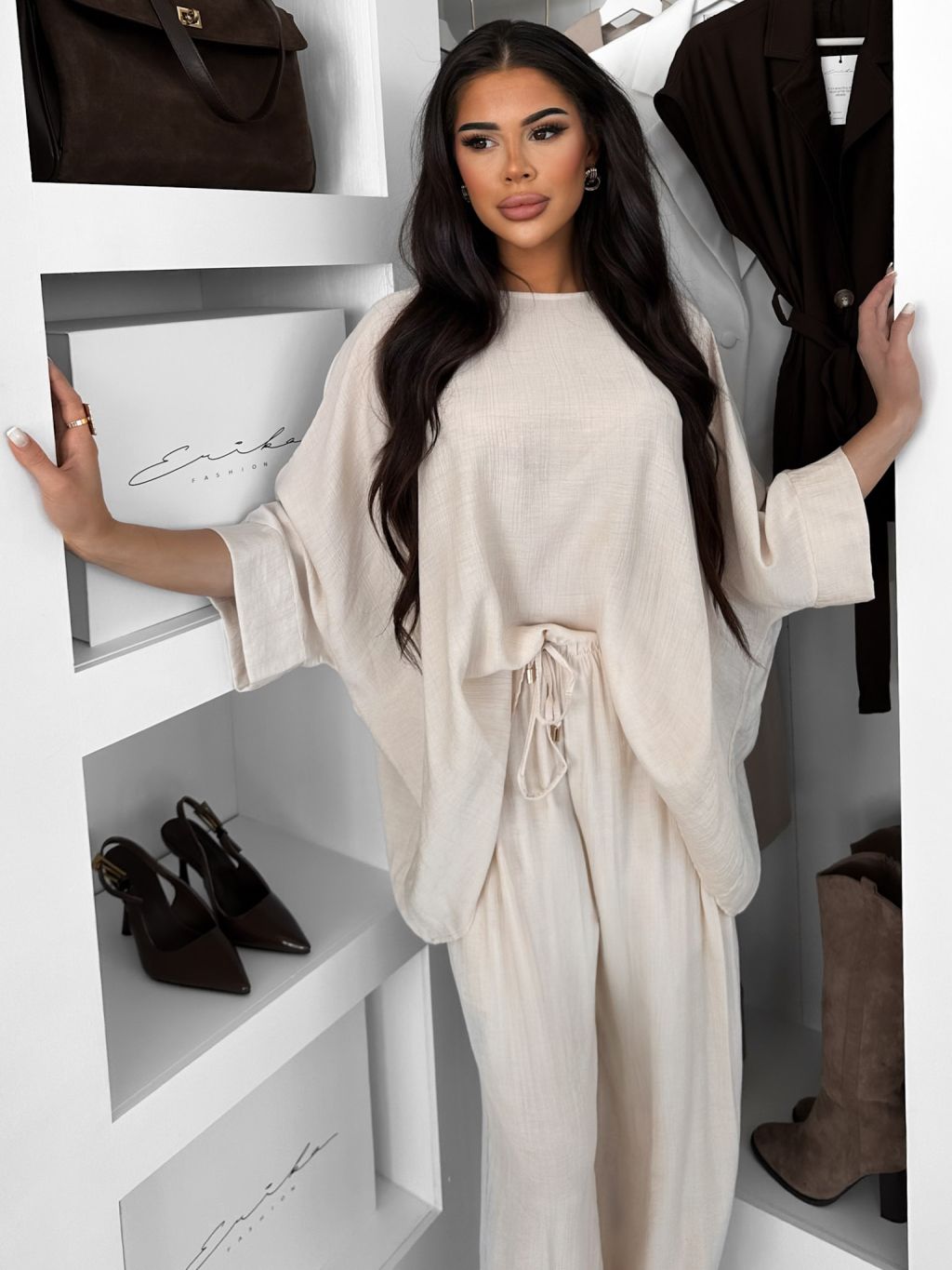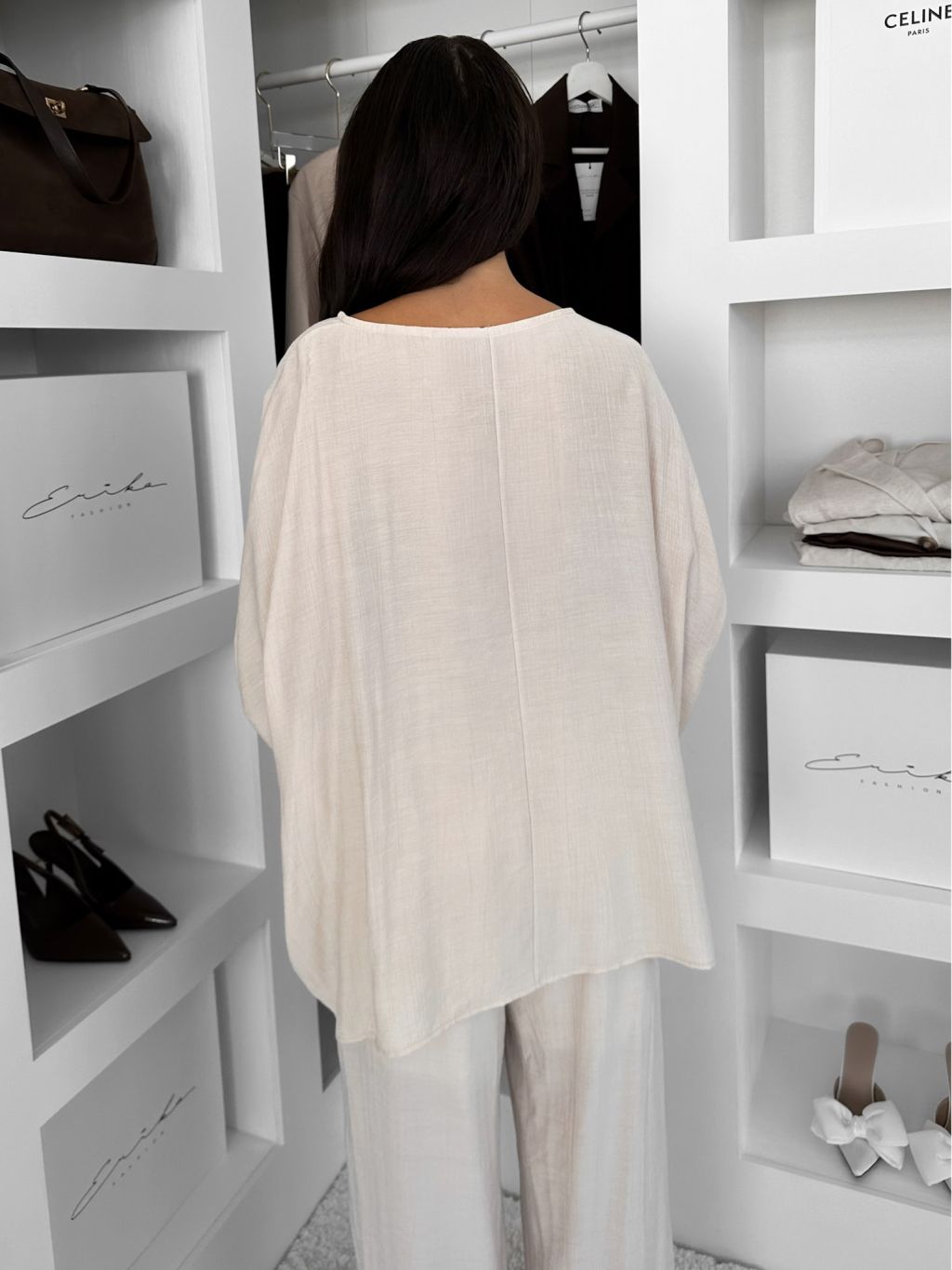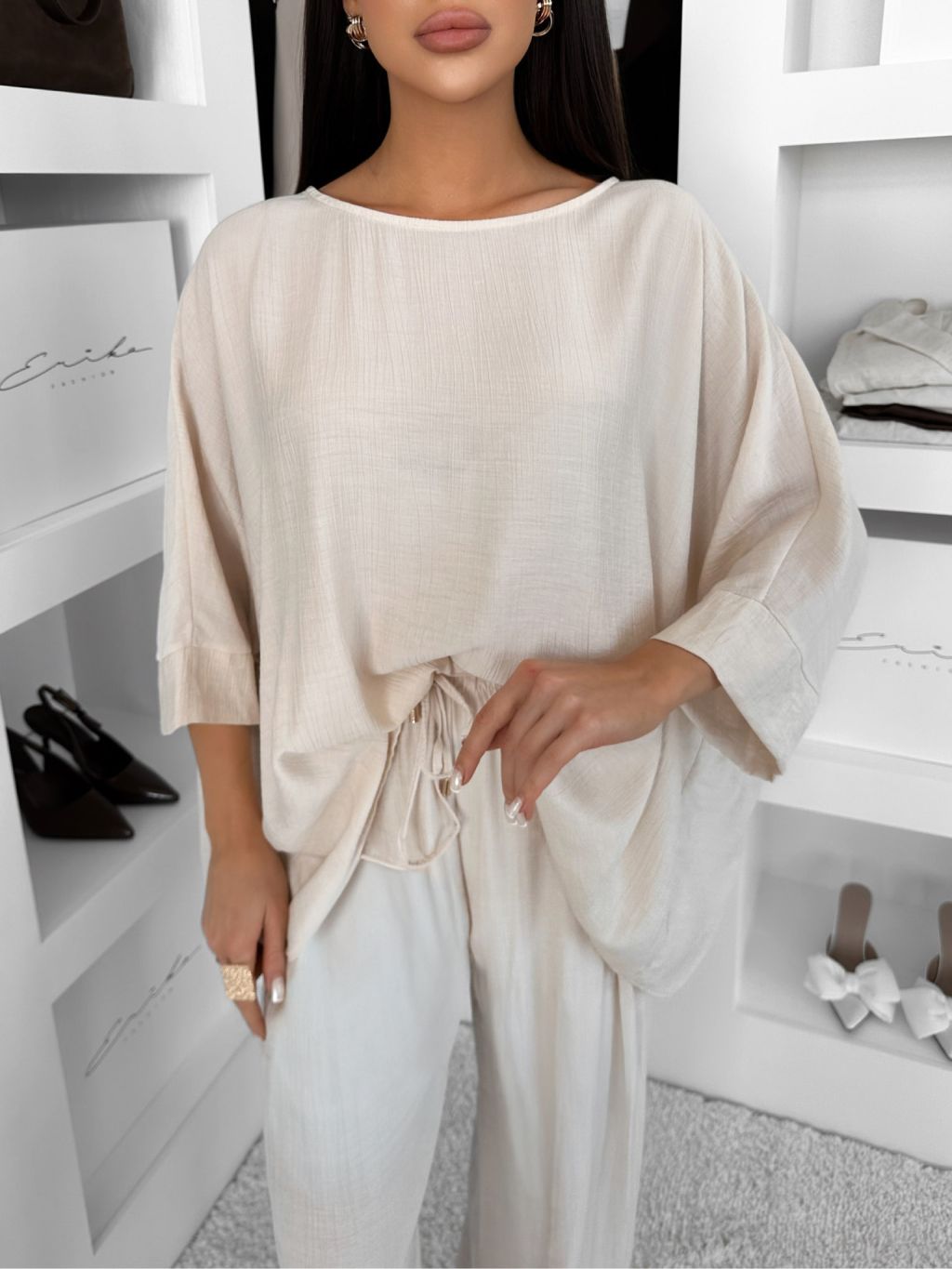 Krémové oversize tričko LYONNEL s dlhým rukávom