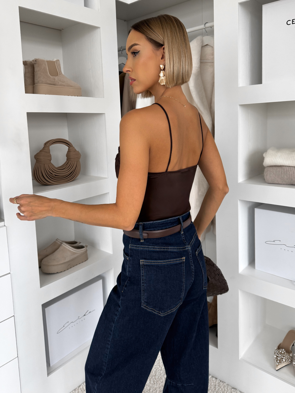 Tmavo hnedé saténové tielko MAUVEA s čipkou