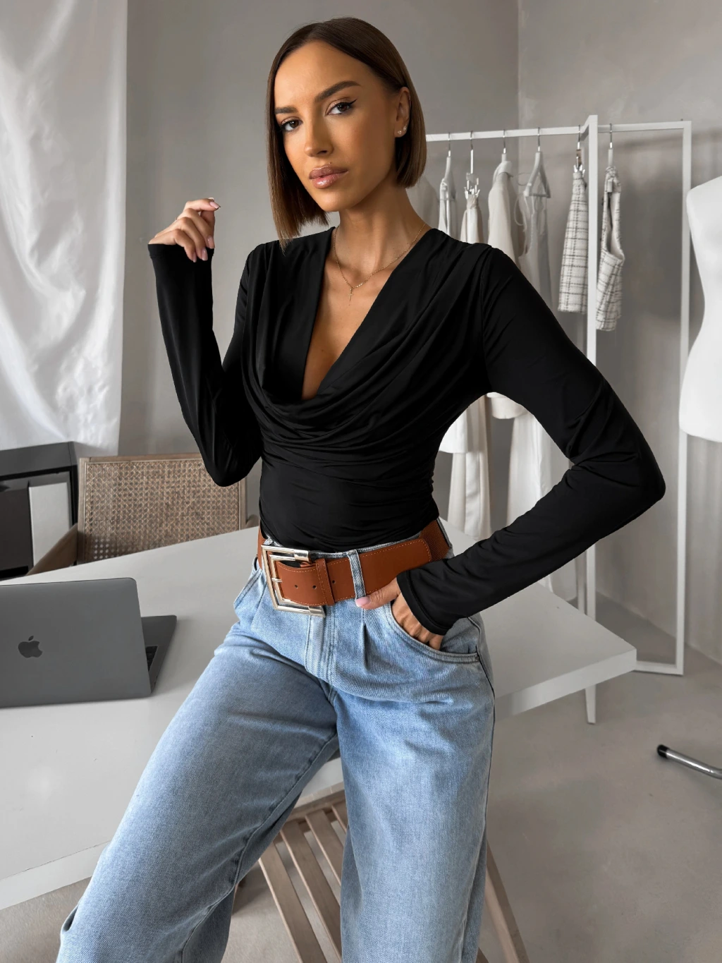 Čierne elegantné tričko CALIRA s výstrihom