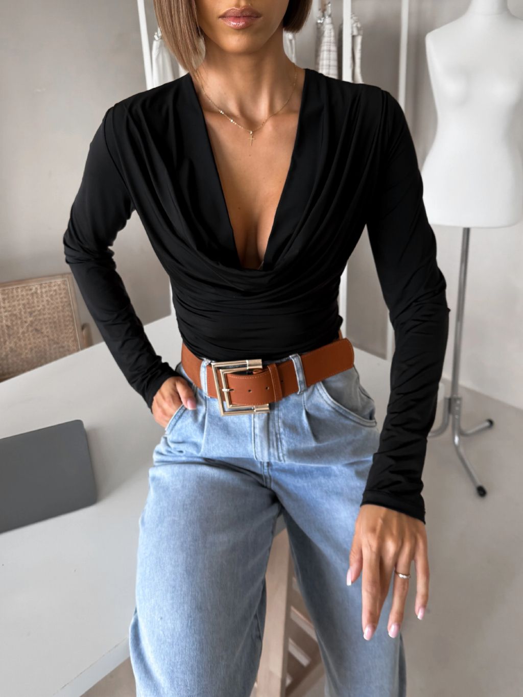 Čierne elegantné tričko CALIRA s výstrihom