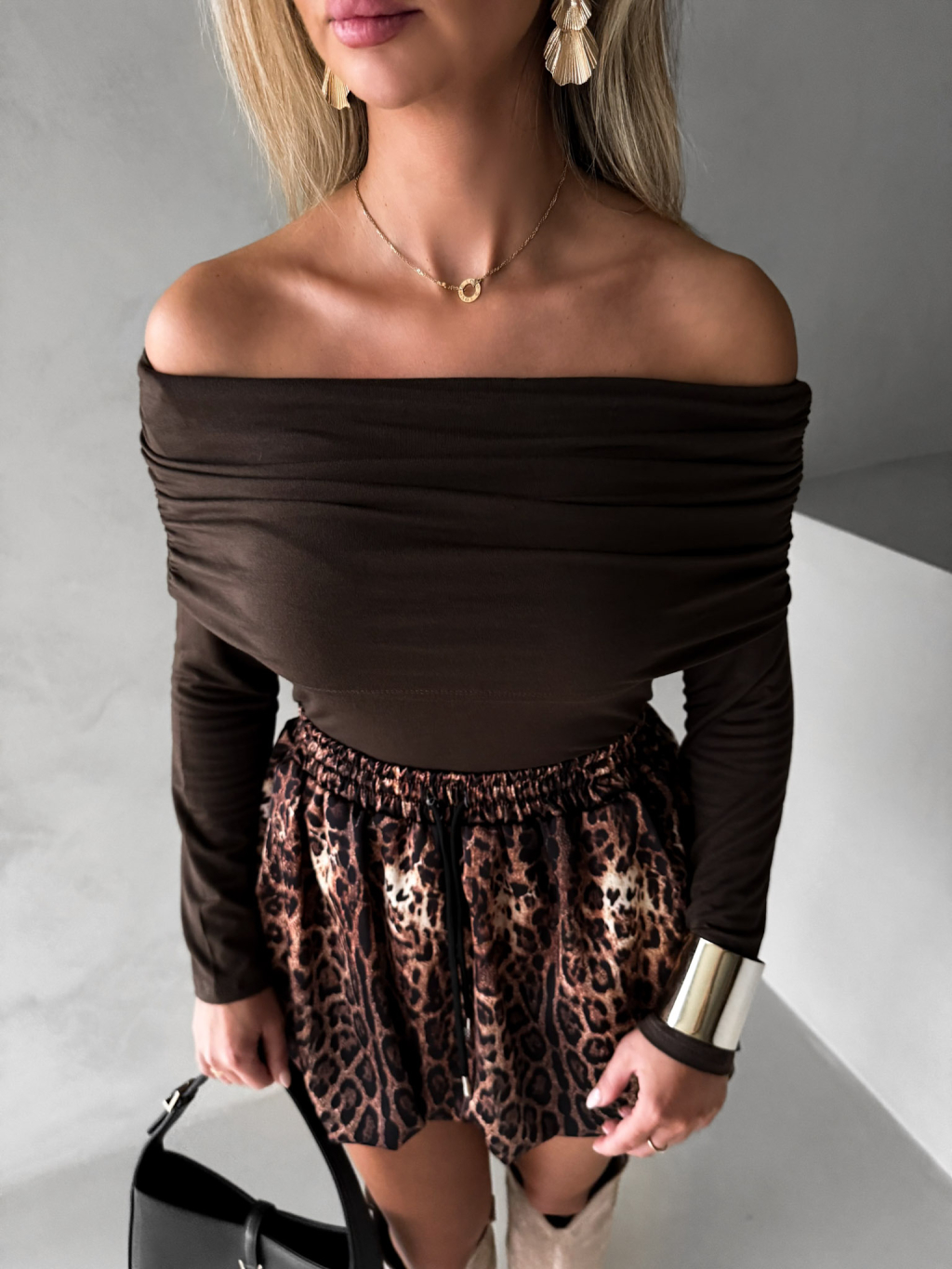 Hnedý elegantný top DOLMI s dlhým rukávom