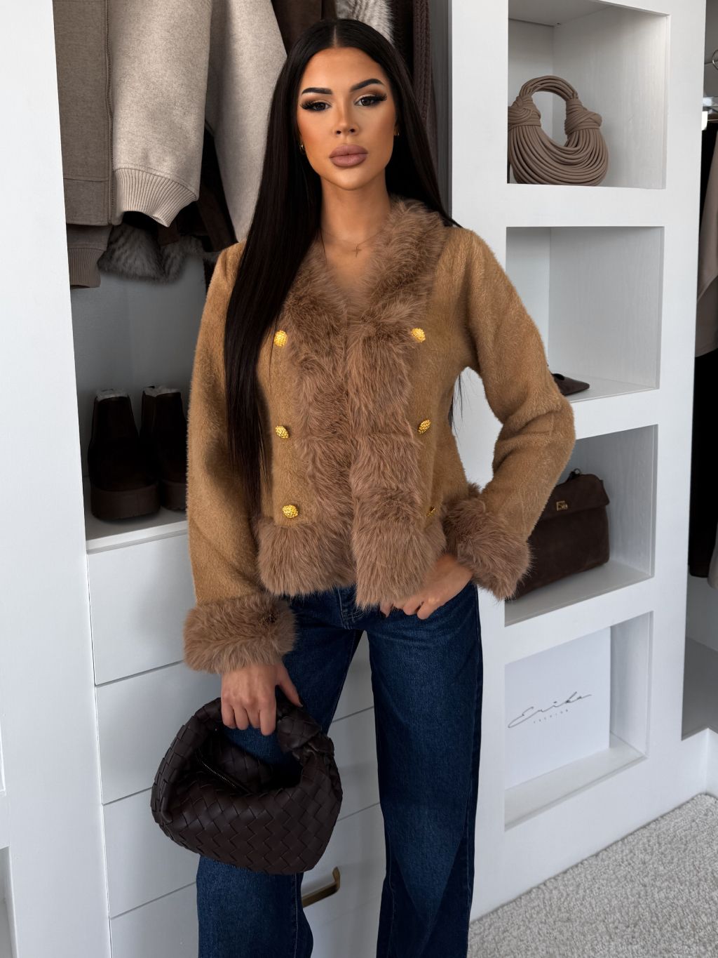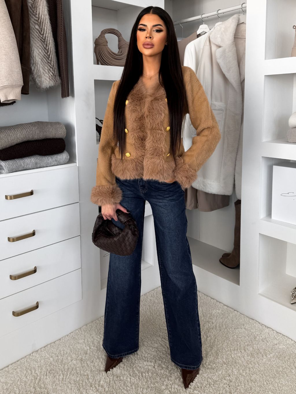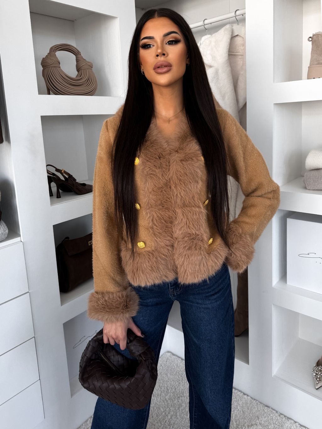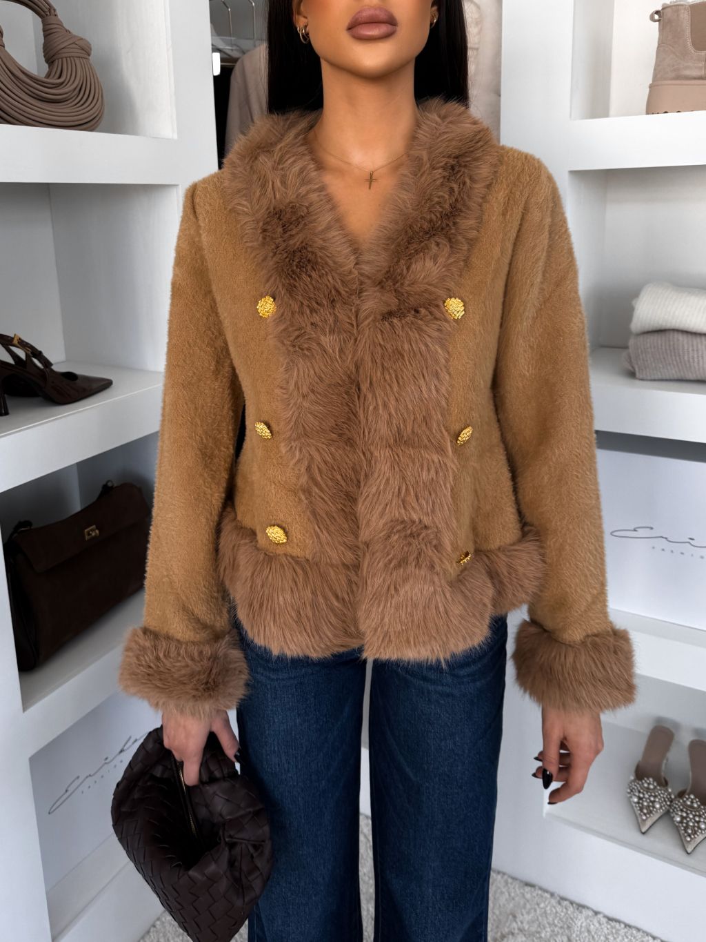 Hnedý elegantný krátky kabátik FYRELIA
