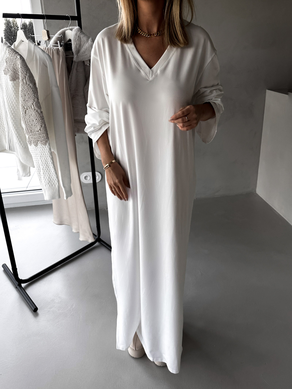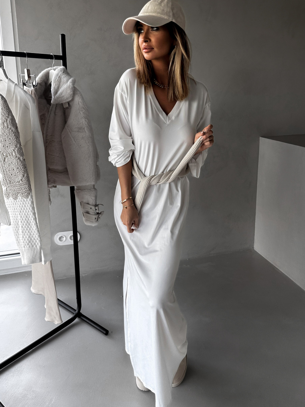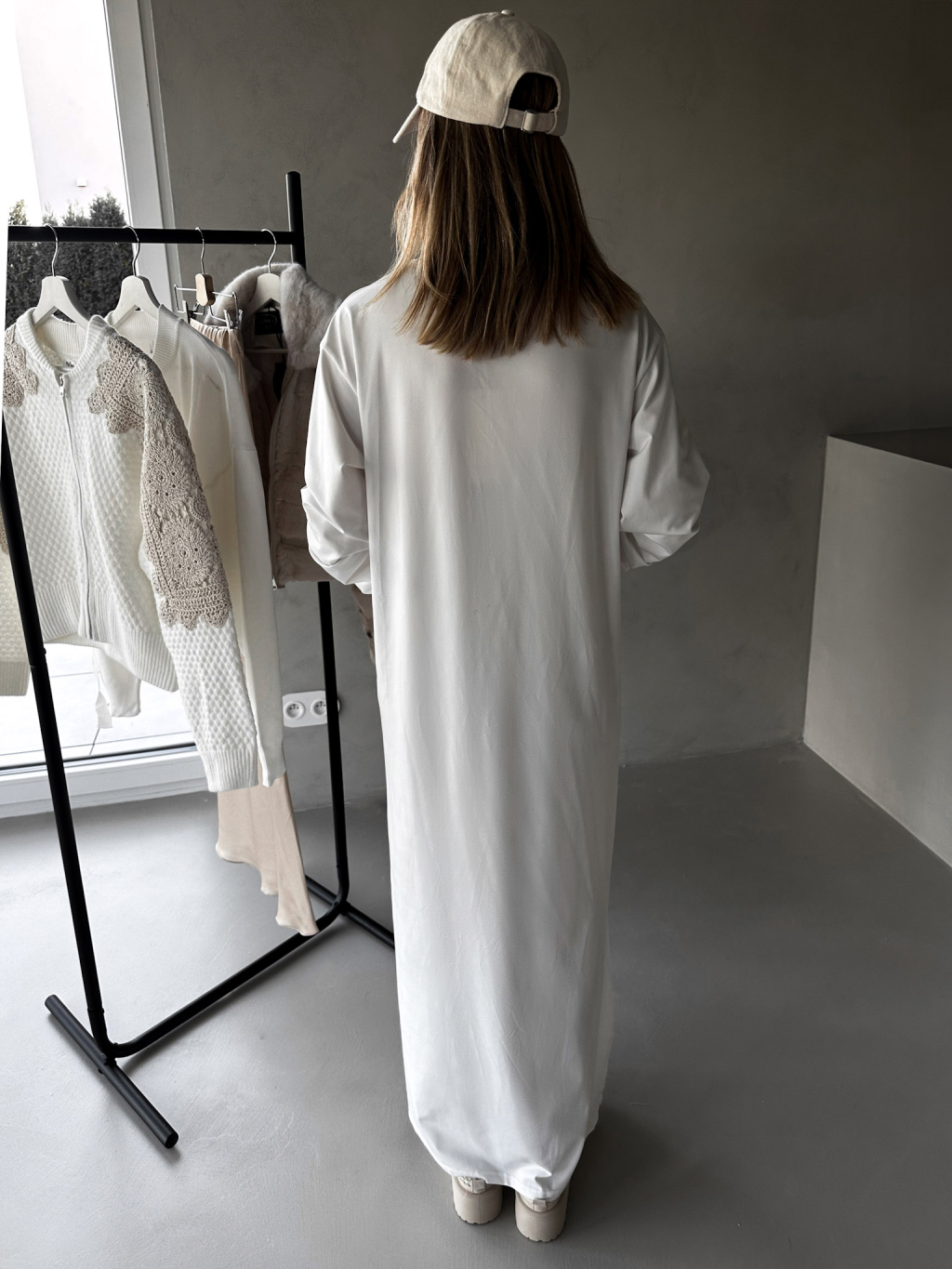 Biele dlhé oversize šaty HATHOR s dlhým rukávom