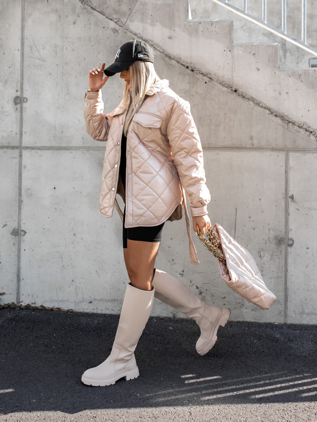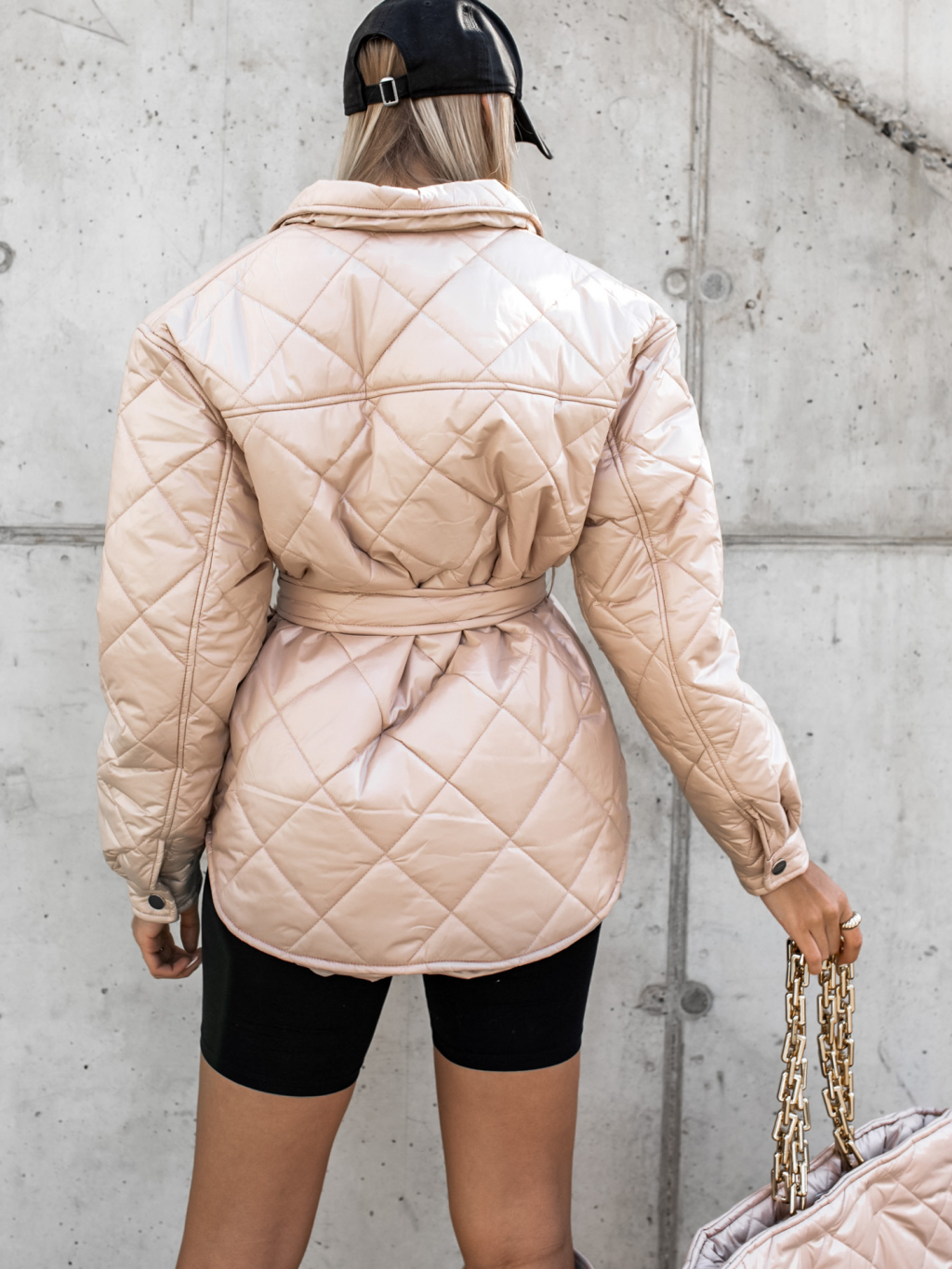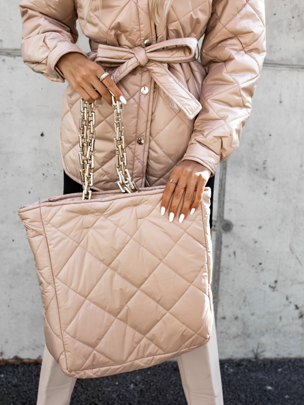 Béžová prešívaná bundička GRRANDY s kabelkou