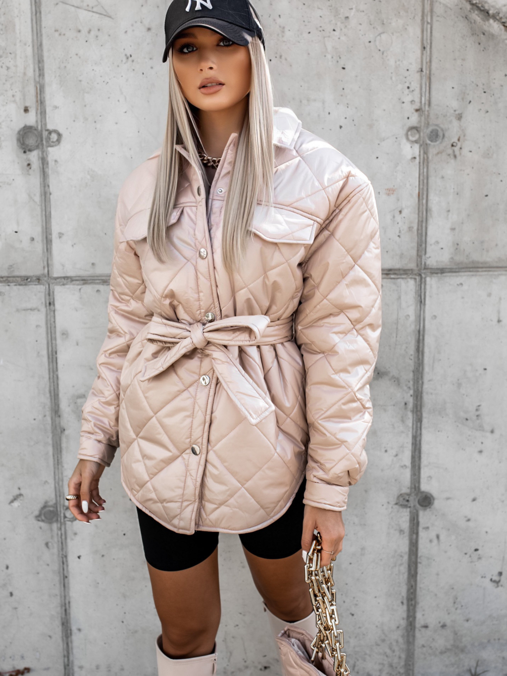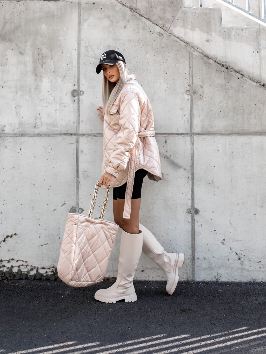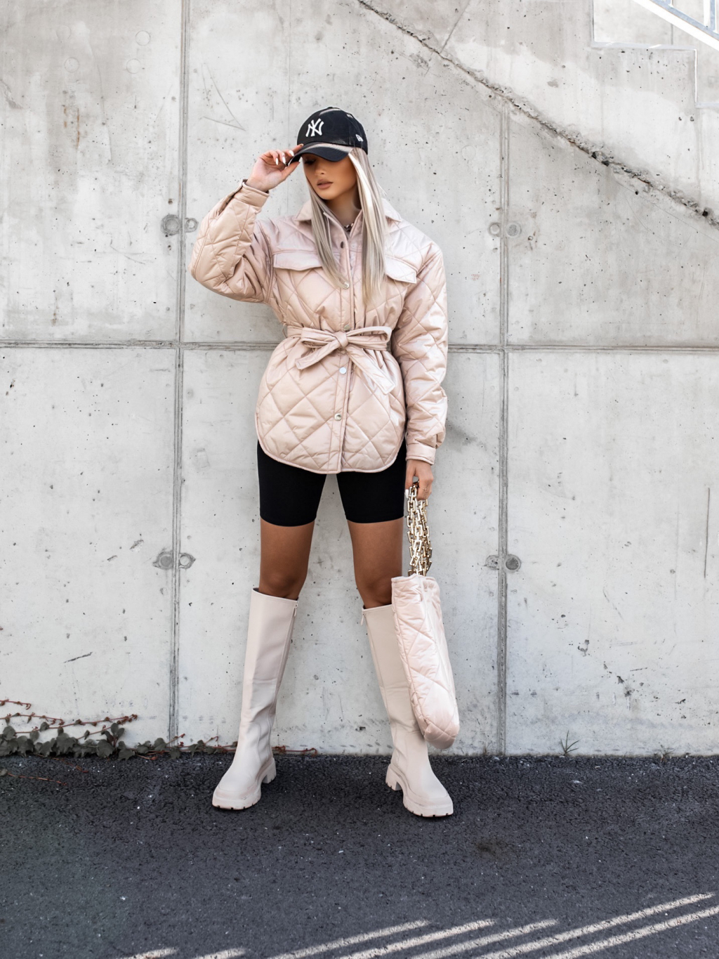 Béžová prešívaná bundička GRRANDY s kabelkou