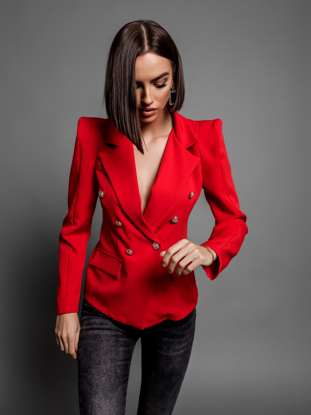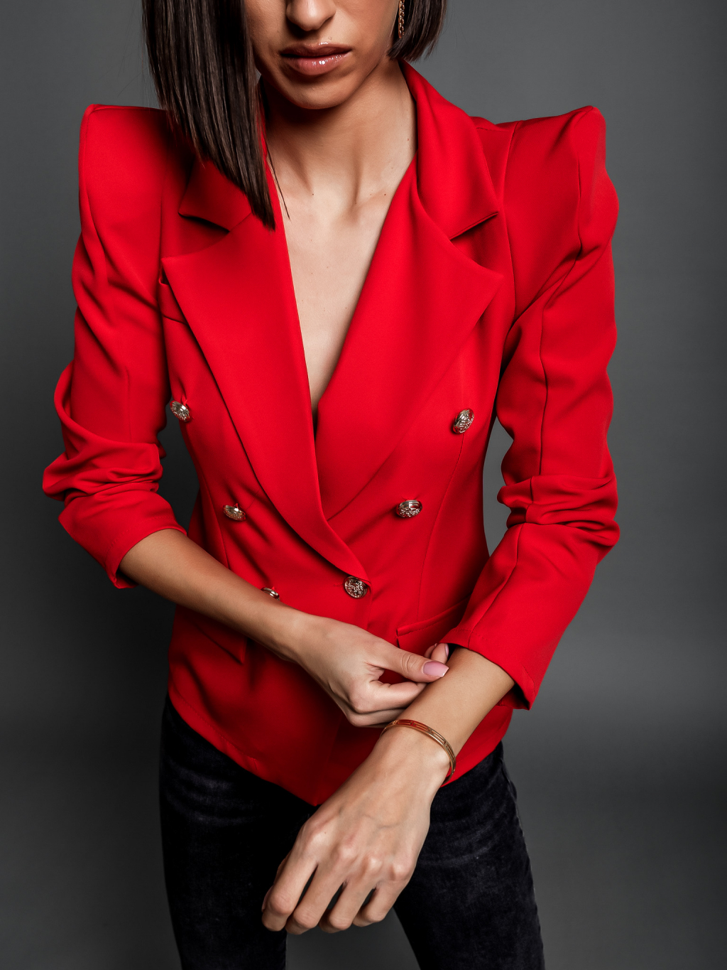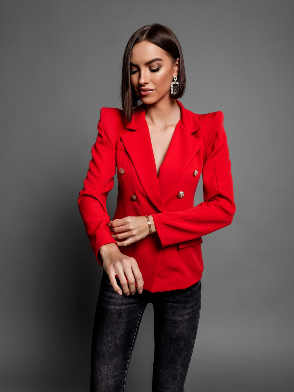Červené elegantní sako PRESSY se zlatými knoflíky