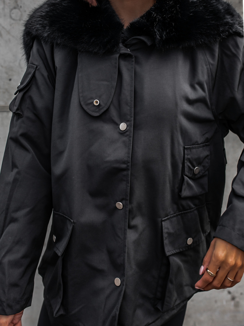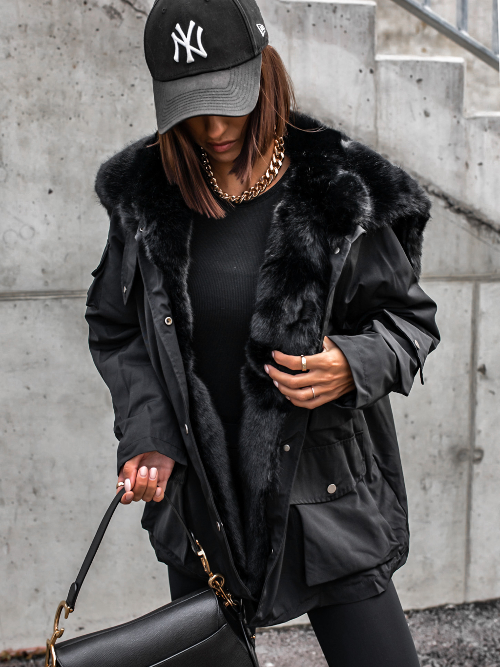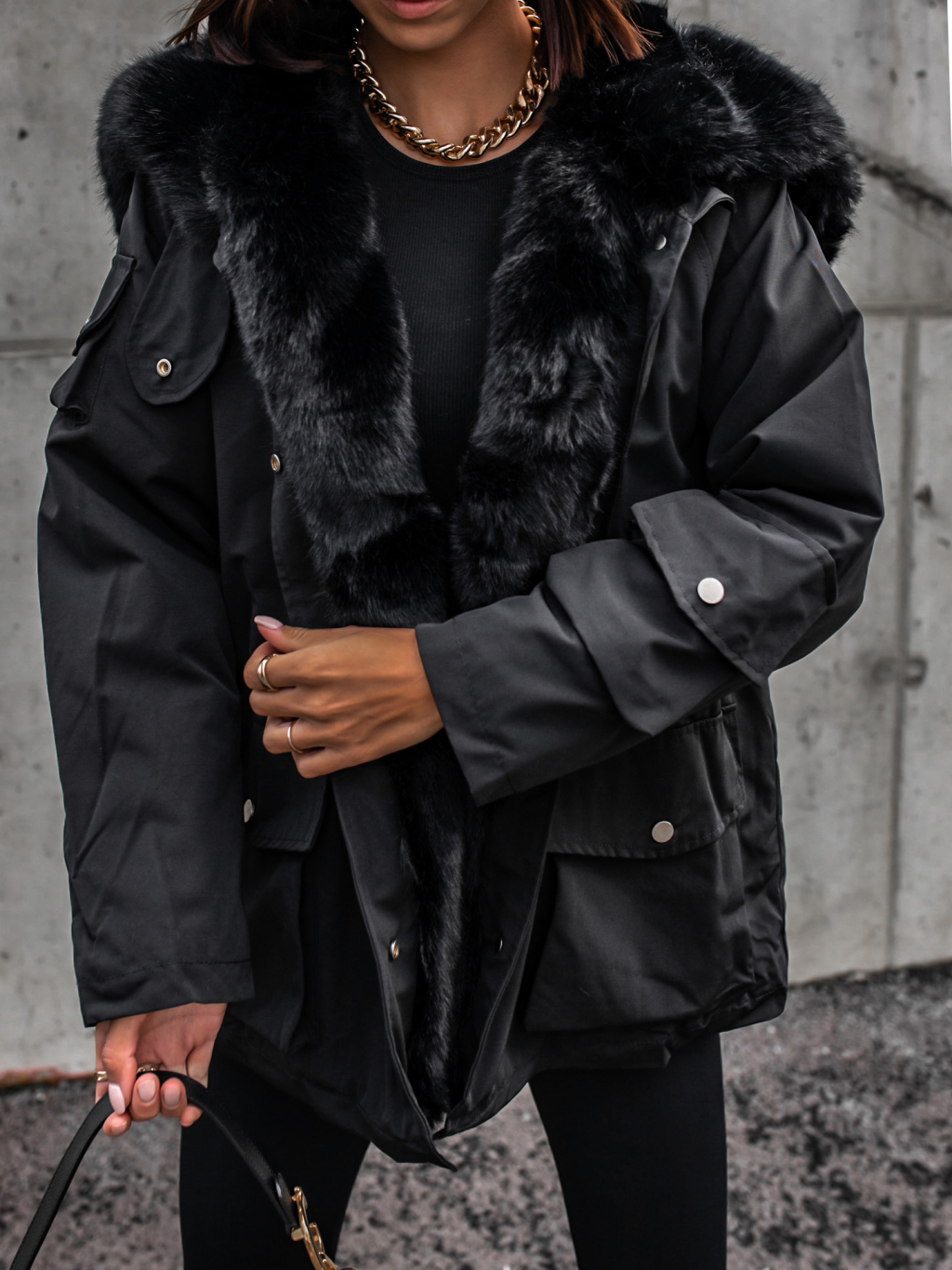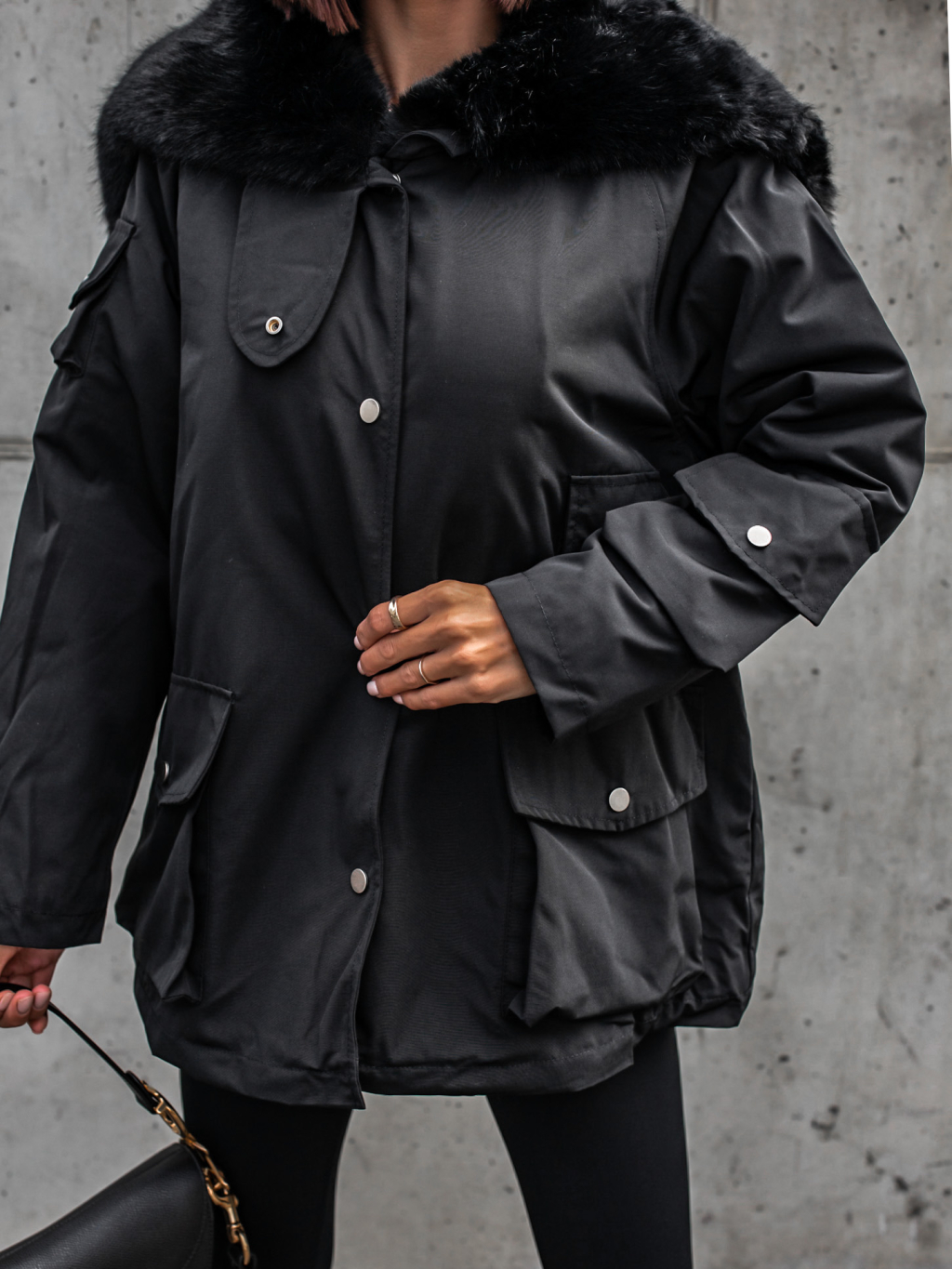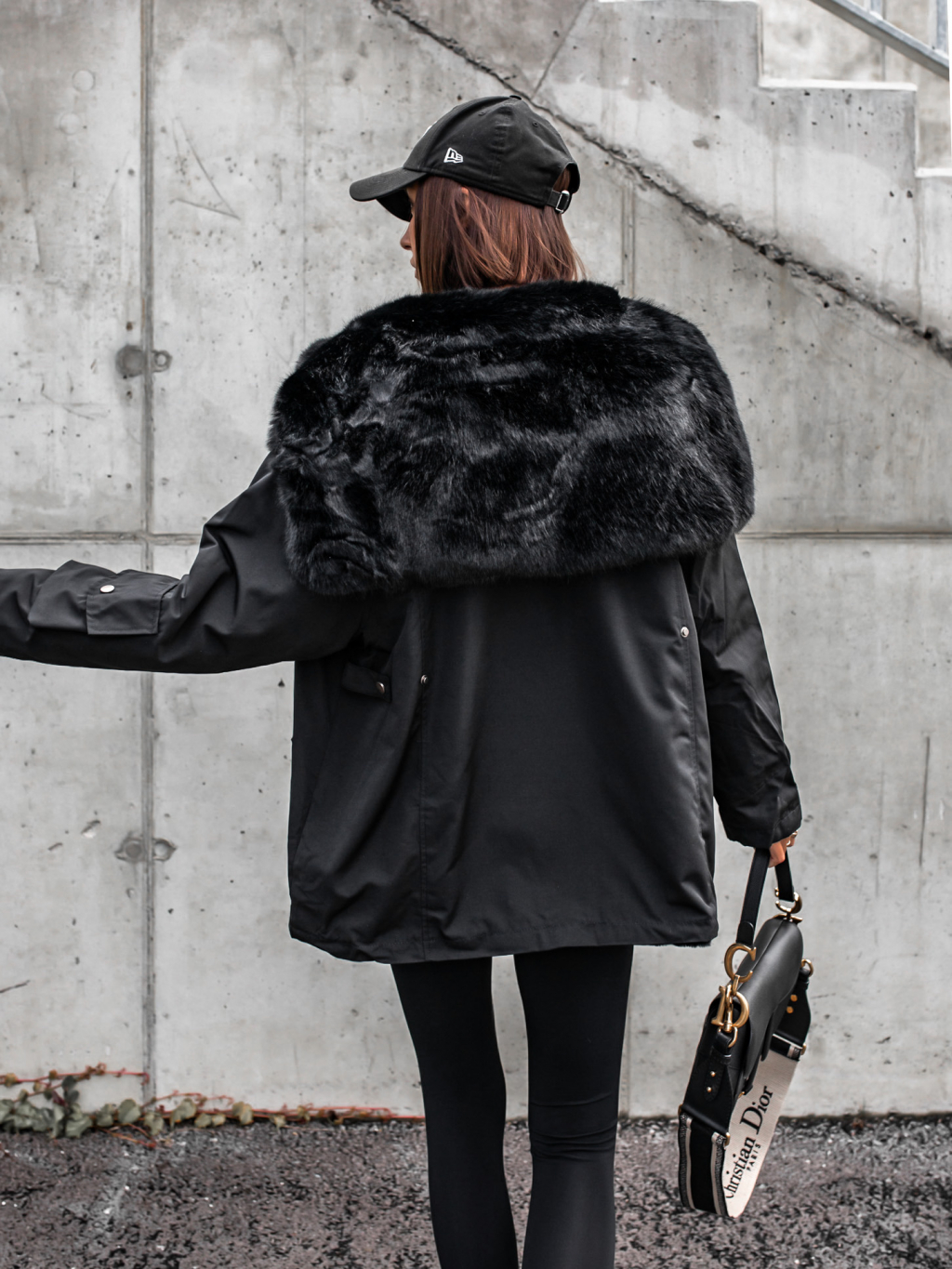 Vnútri bundy je plyš (vhodnejšie je kombinovať so svetlejším outfitom kvôli chĺpkom z plyšu). Nesporná výhoda je, že plyš krásne hreje.