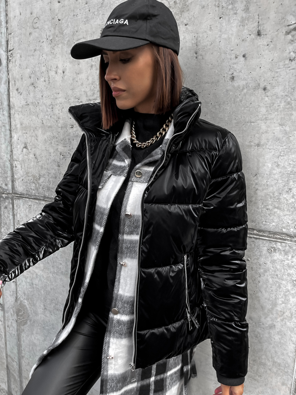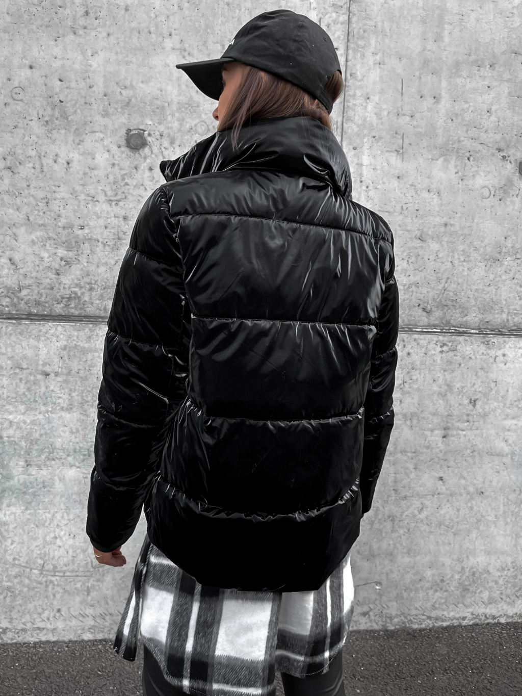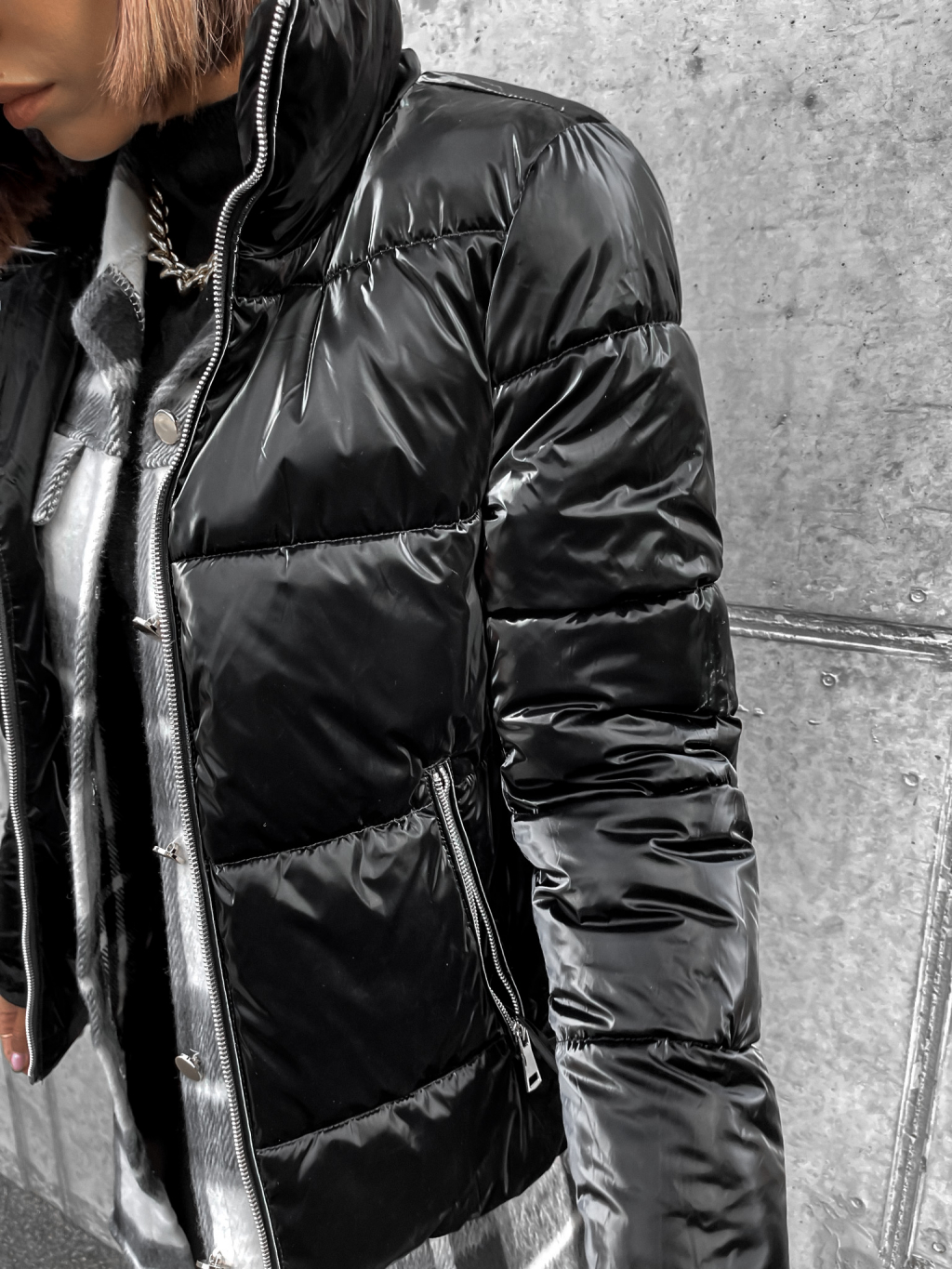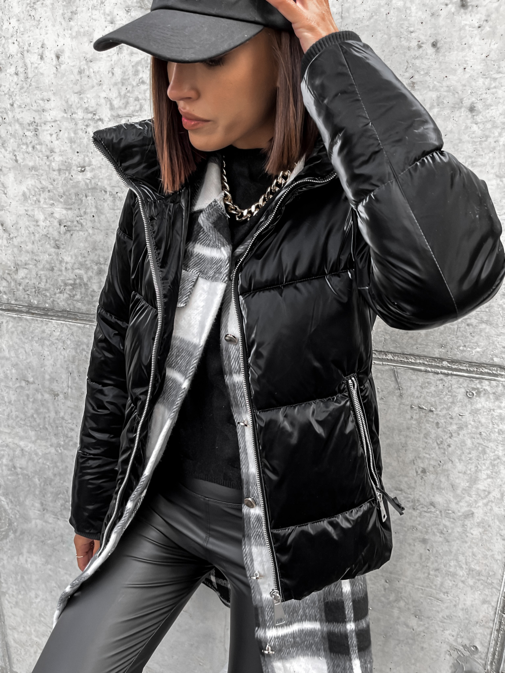 Čierna lesklá prešívaná bunda HISS