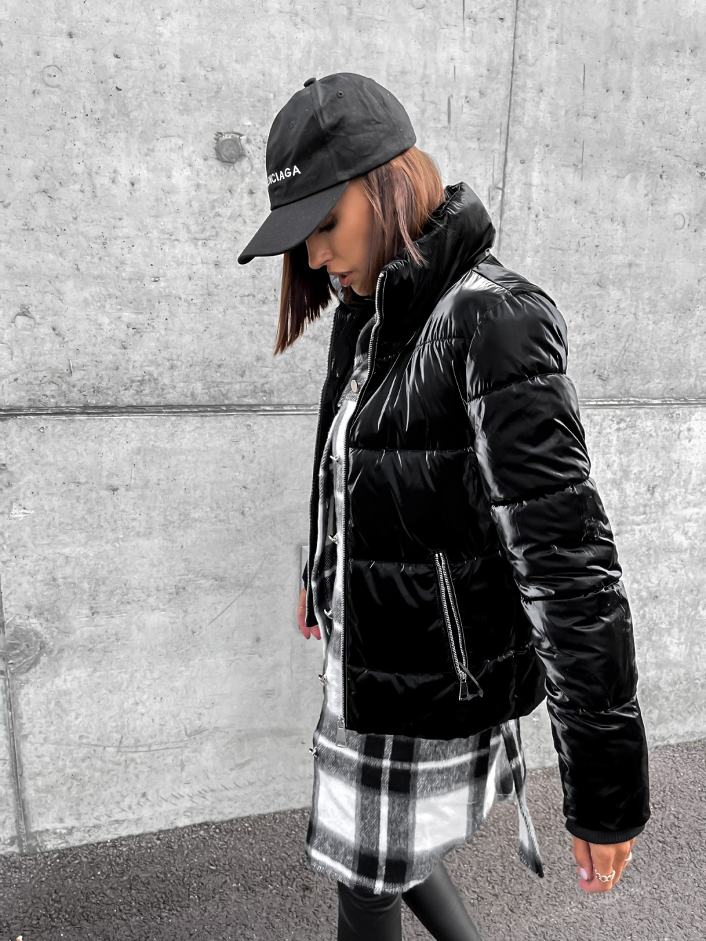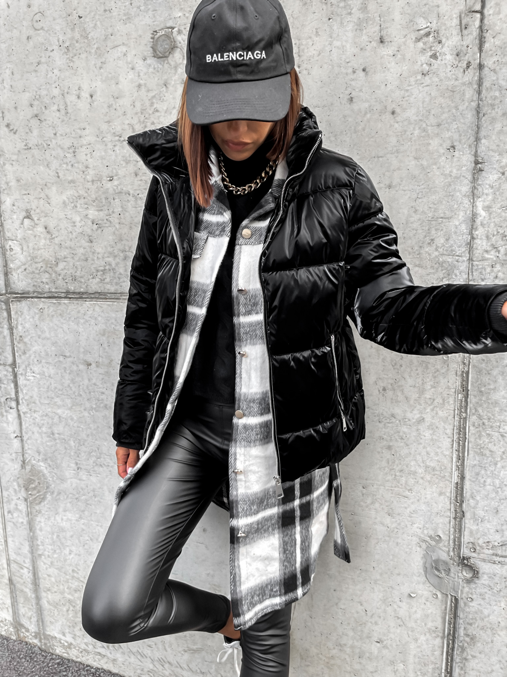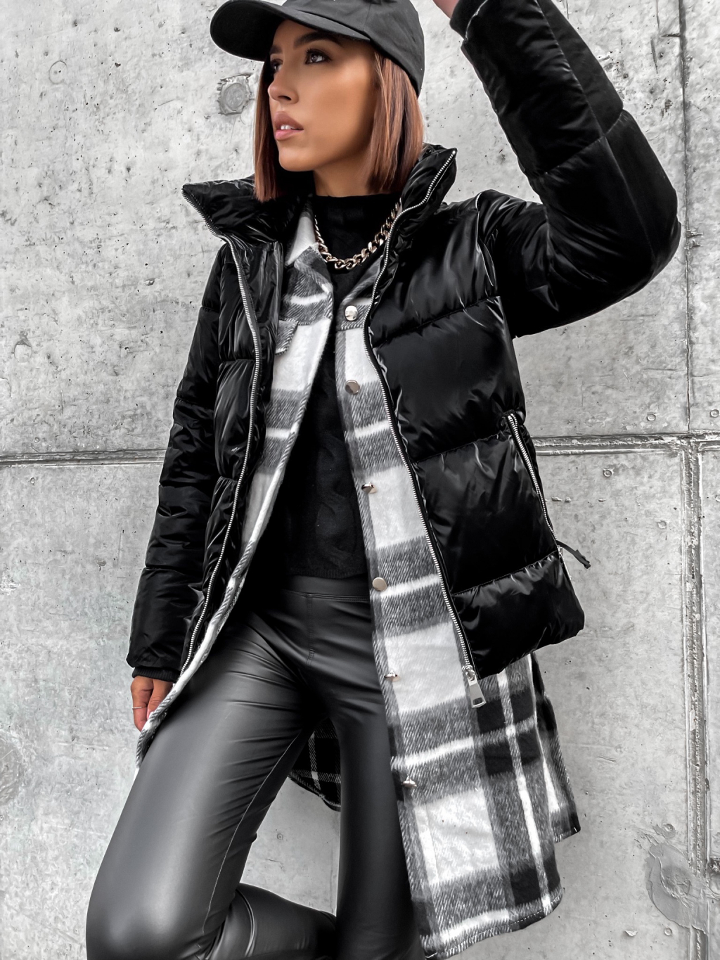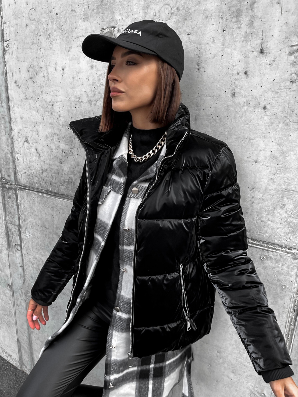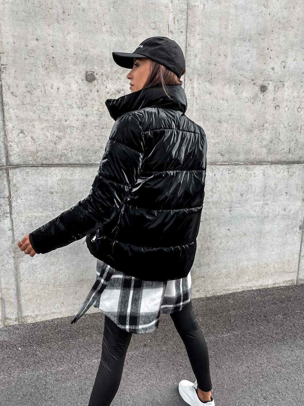 Čierna lesklá prešívaná bunda HISS