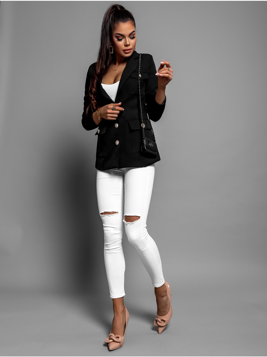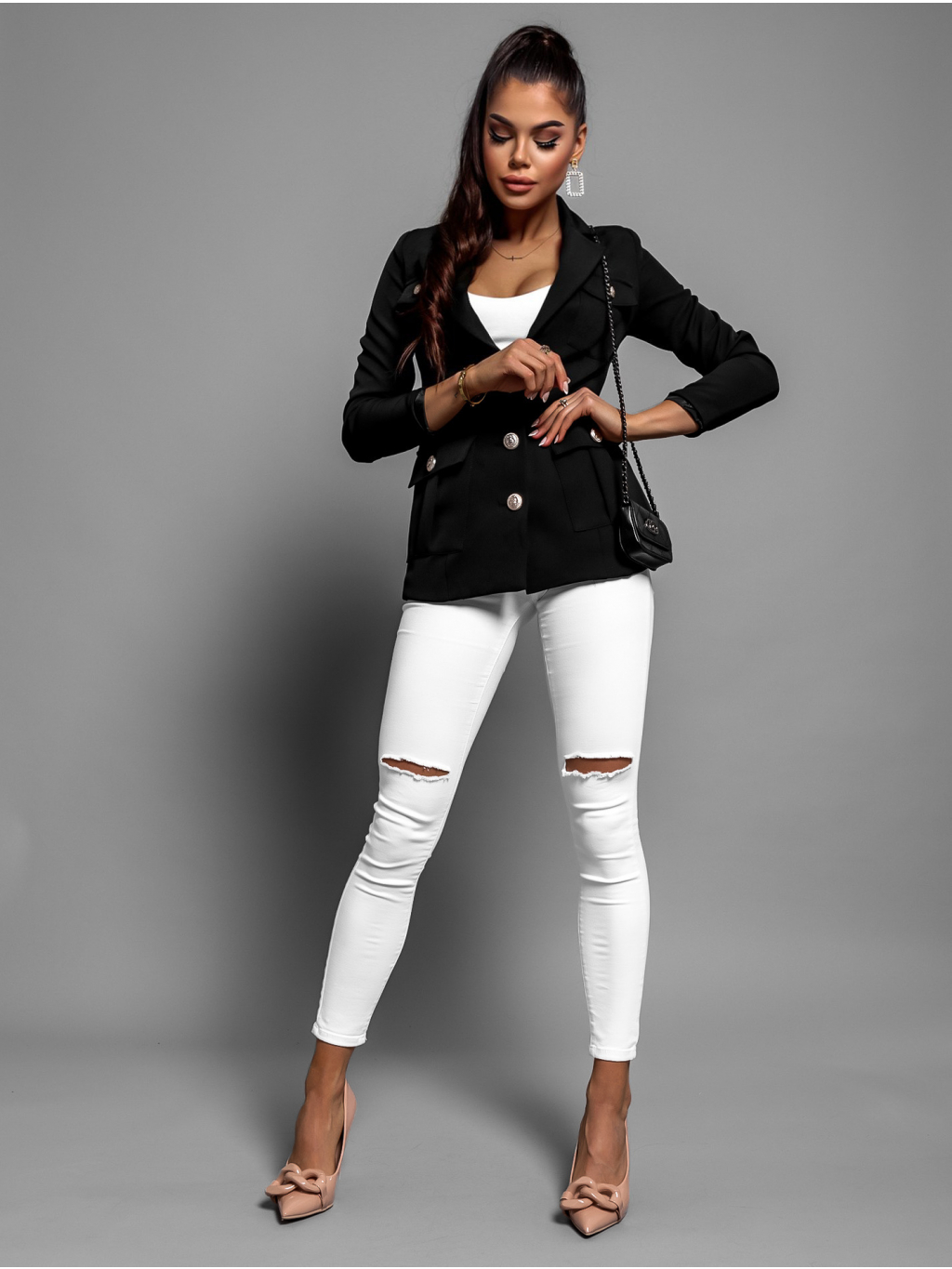 Čierne elegantné sako MANOUVRE so zlatými gombíkmi