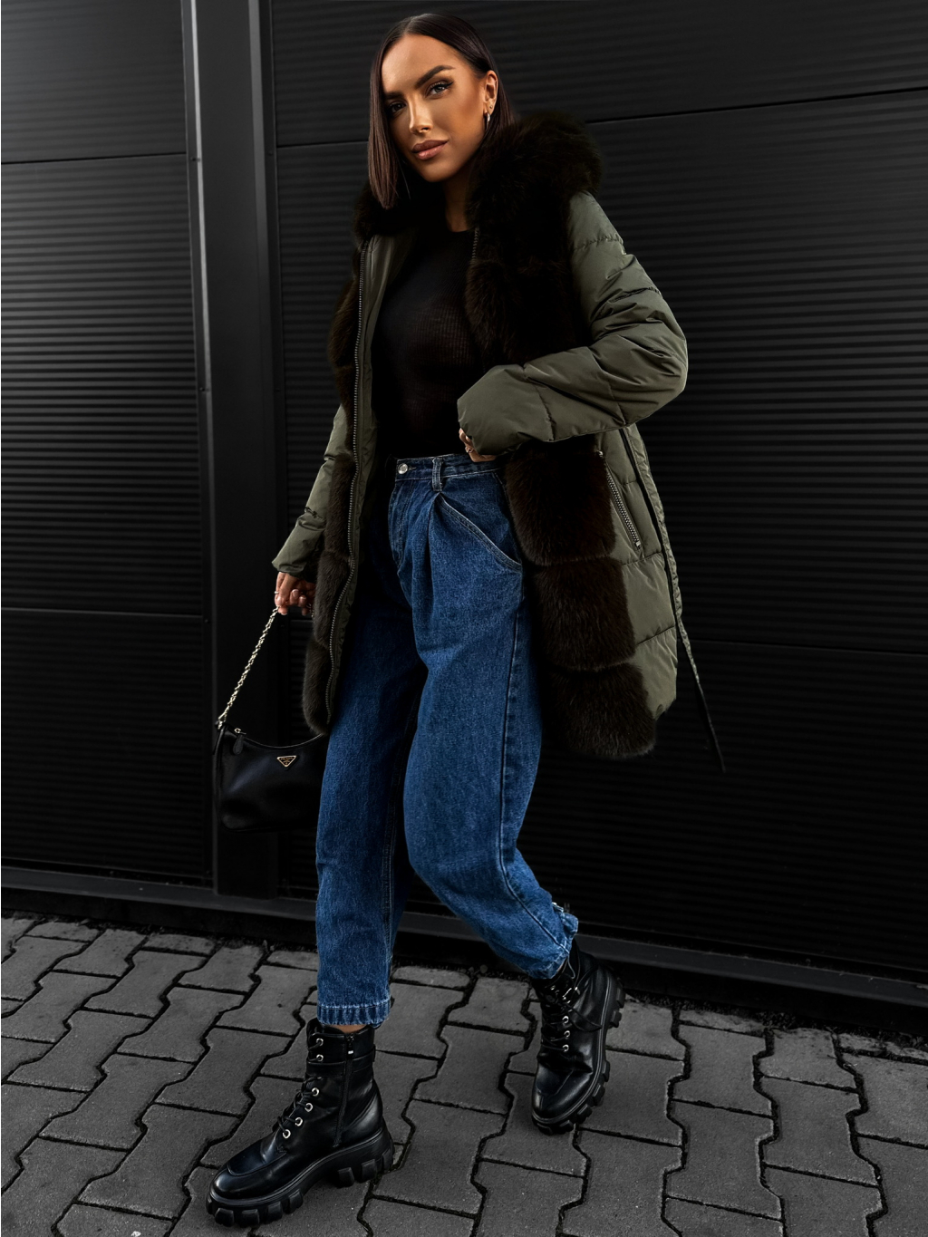 Khaki bunda s kožúškom DIVARIO