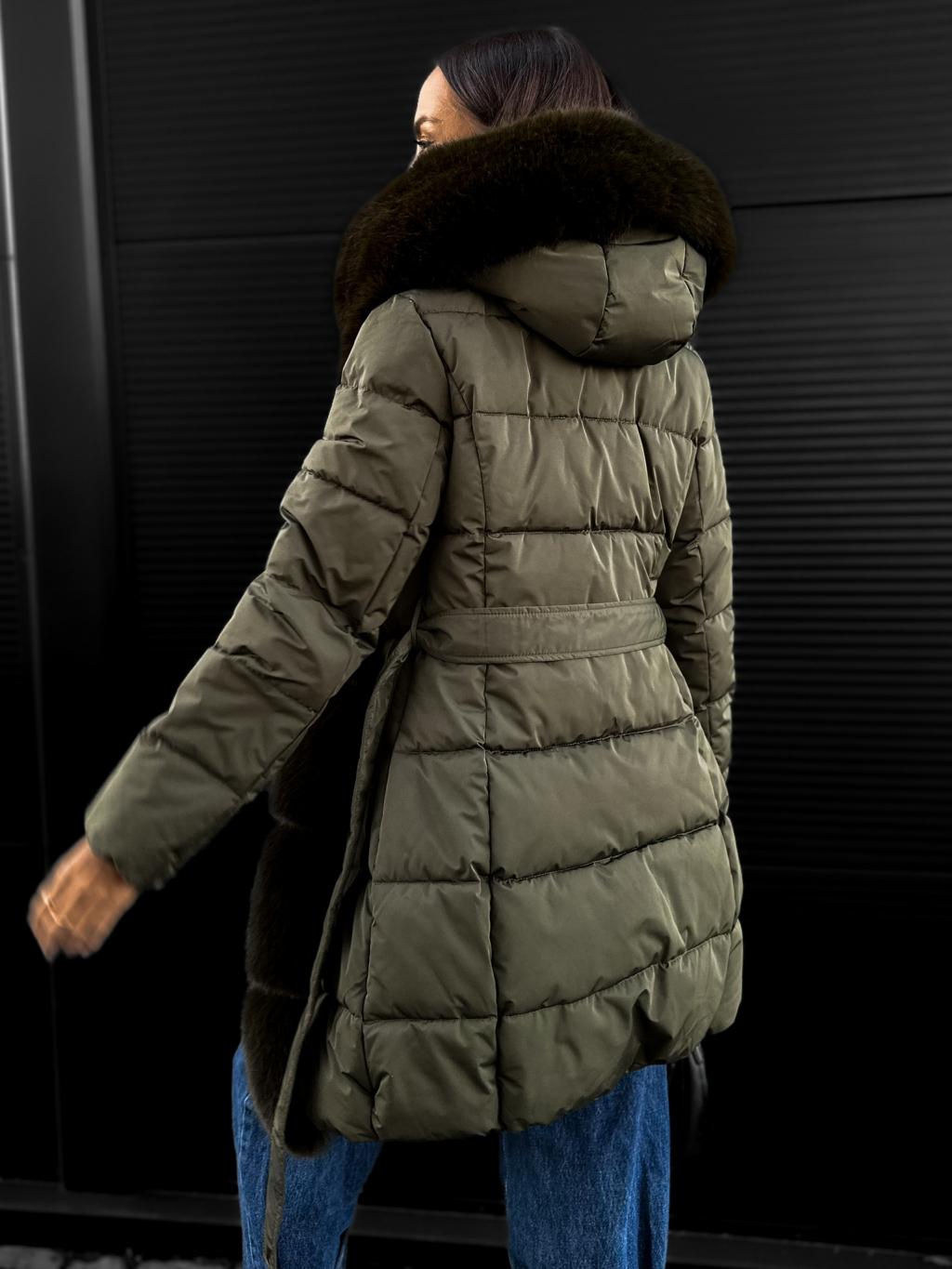Syntetická kožušinka krásne zahreje a opasok doladí siluetu.