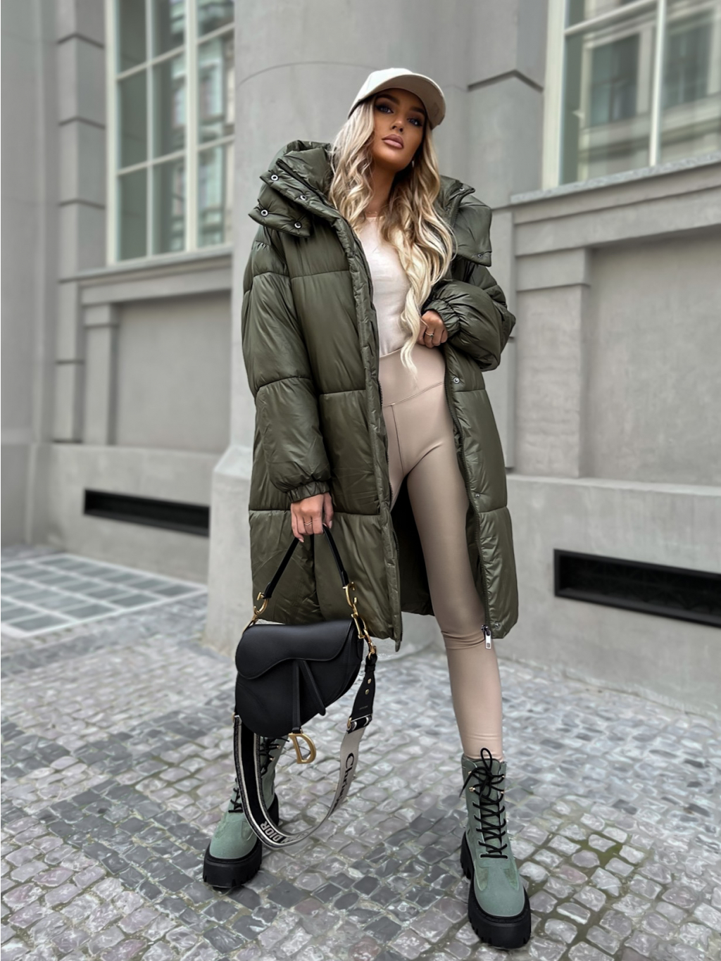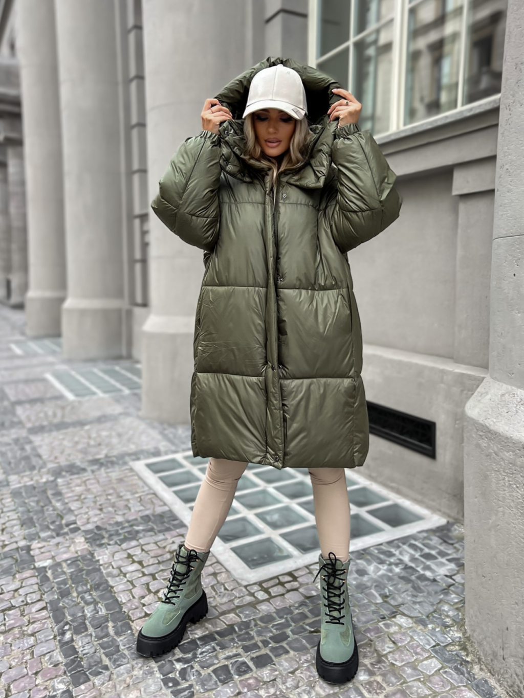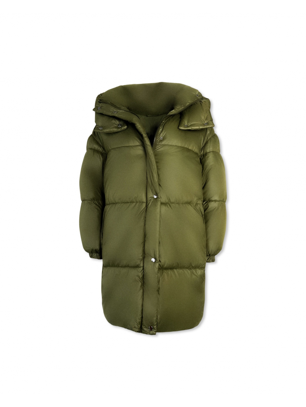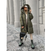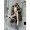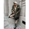 Khaki dlhá prešívaná bunda PARANA s kapucňou