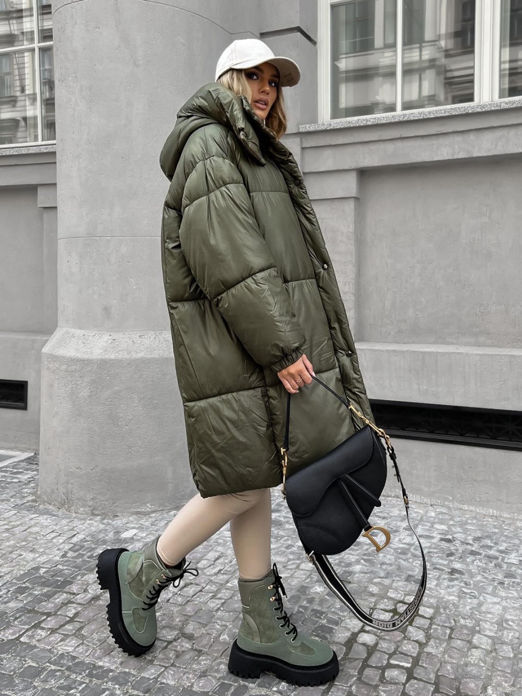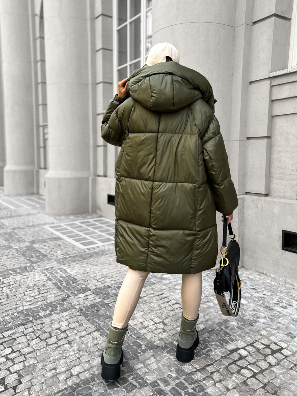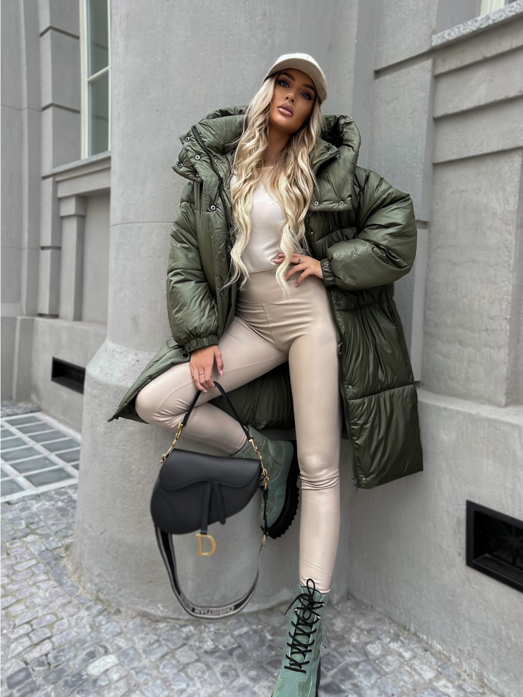 Khaki dlhá prešívaná bunda PARANA s kapucňou
