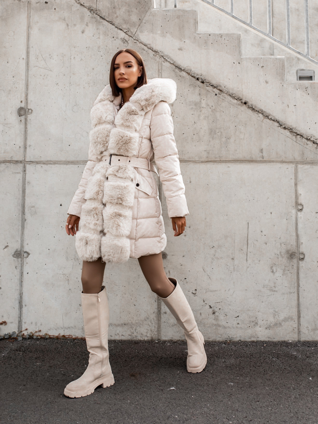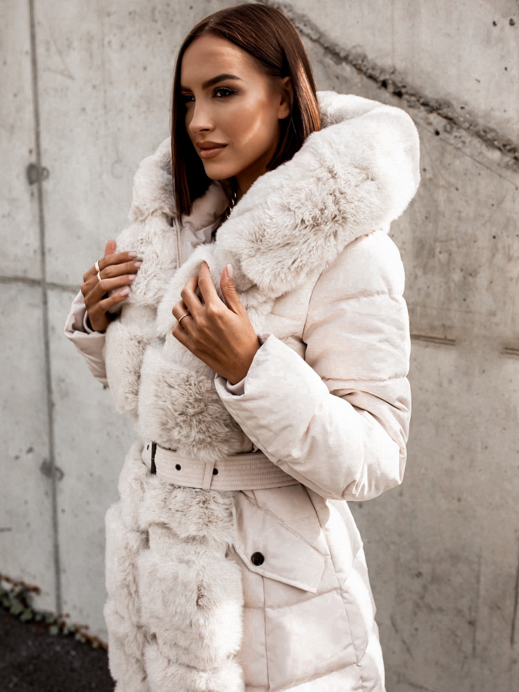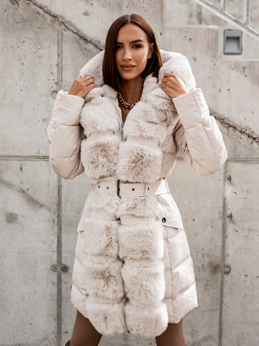 Krémová bunda ZOFIA s kožušinou a opaskom