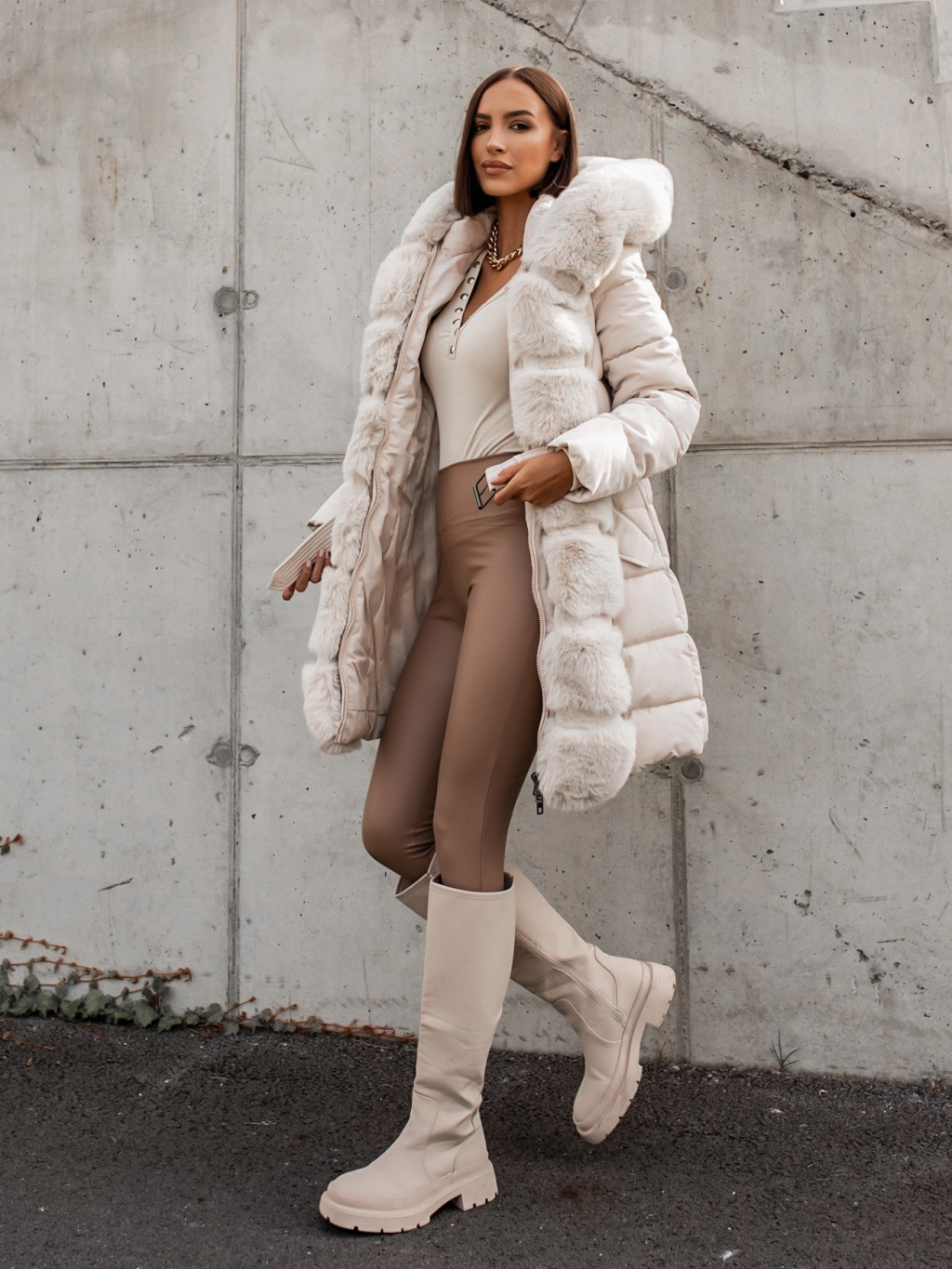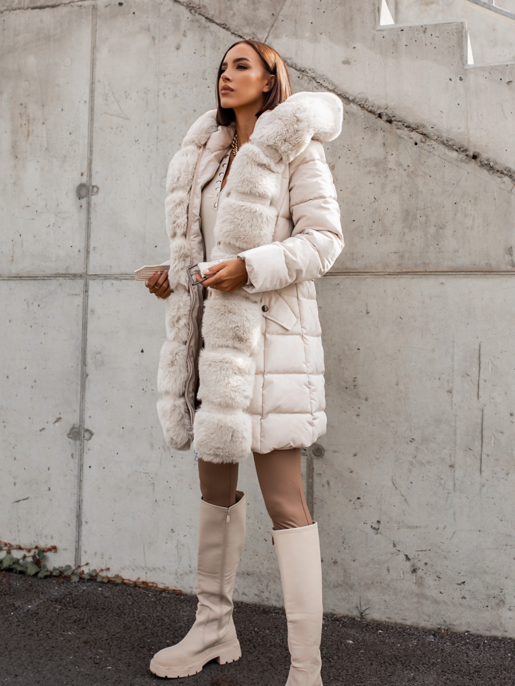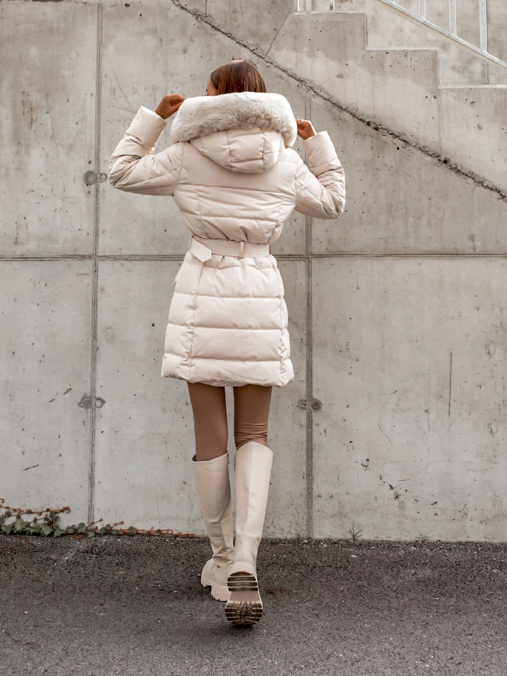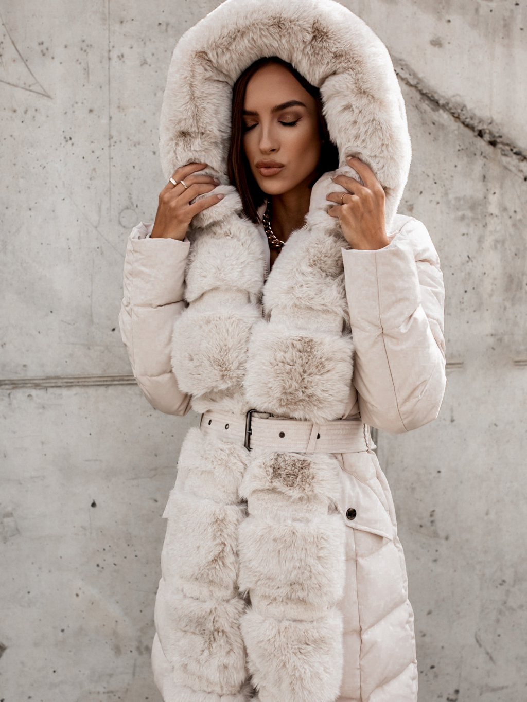 Krémová bunda ZOFIA s kožušinou a opaskom