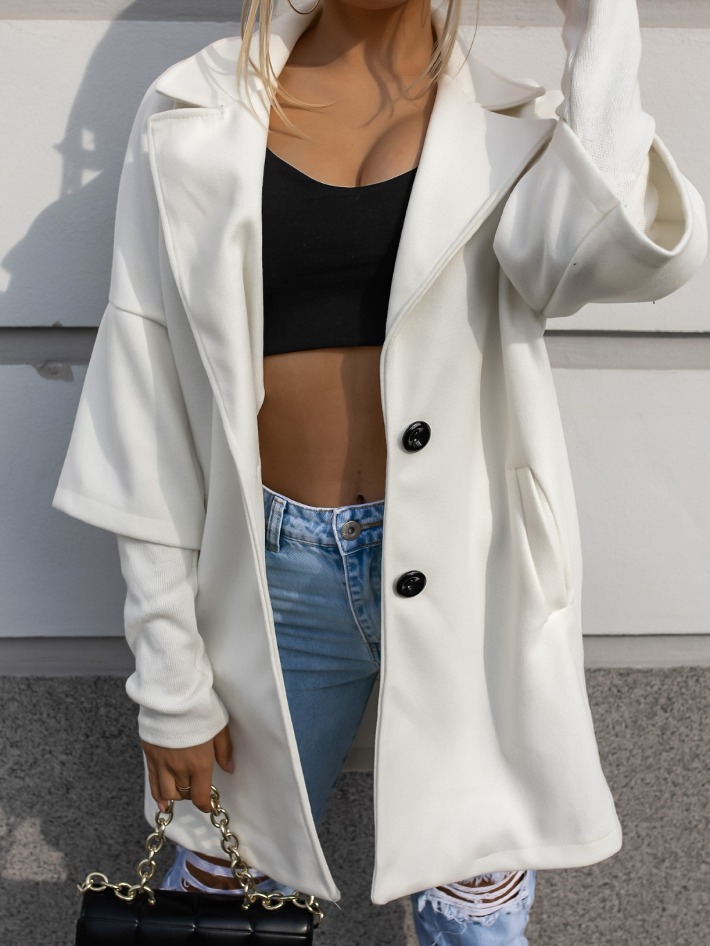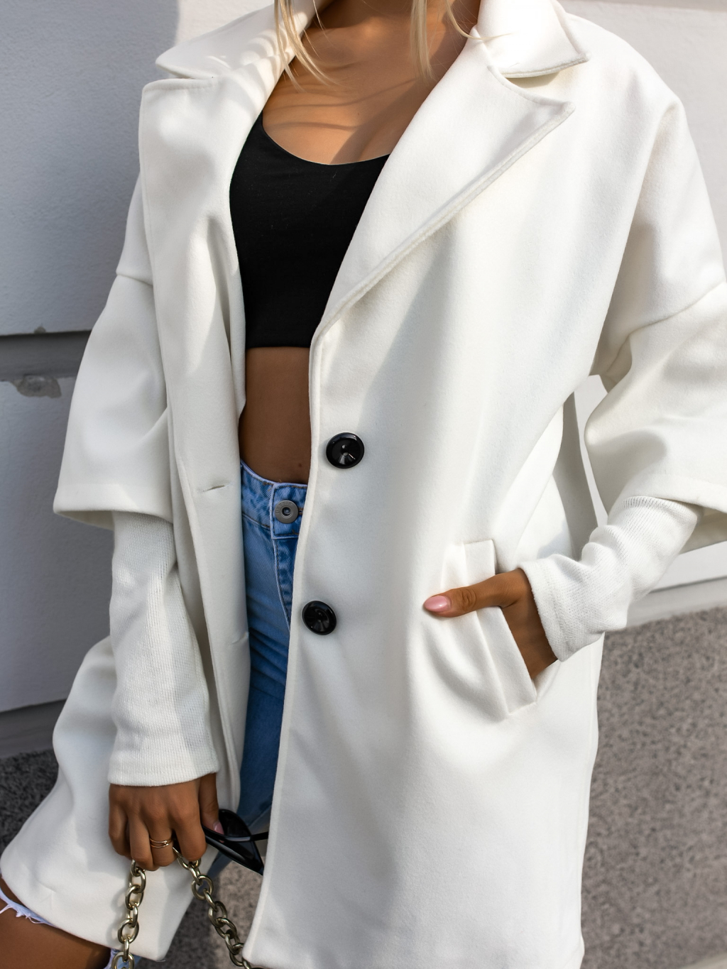 Krémový krátky kabát VERA s podšitým rukávmi