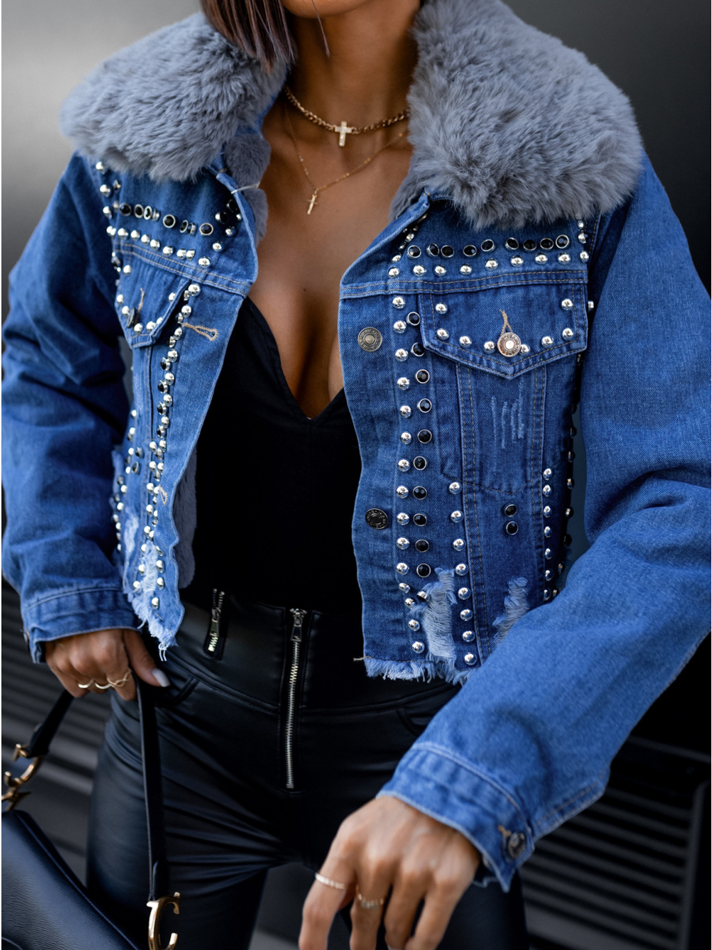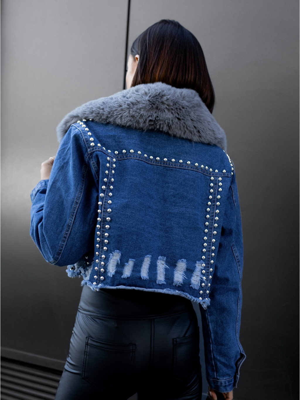 Modrá denim bunda GIRASOL so striebornými detailmi
