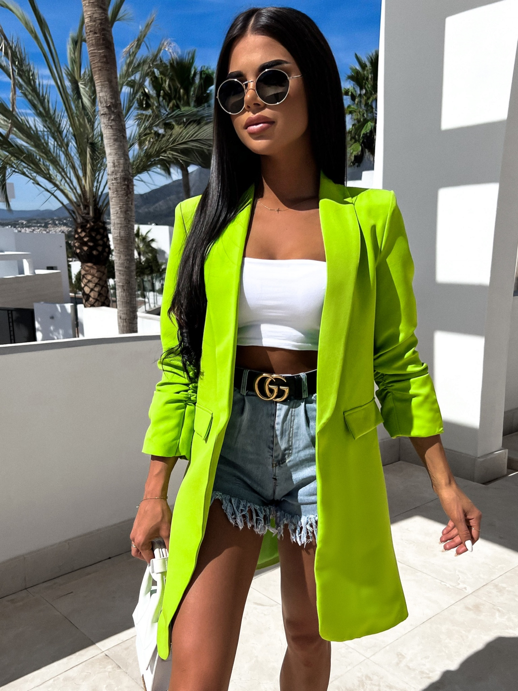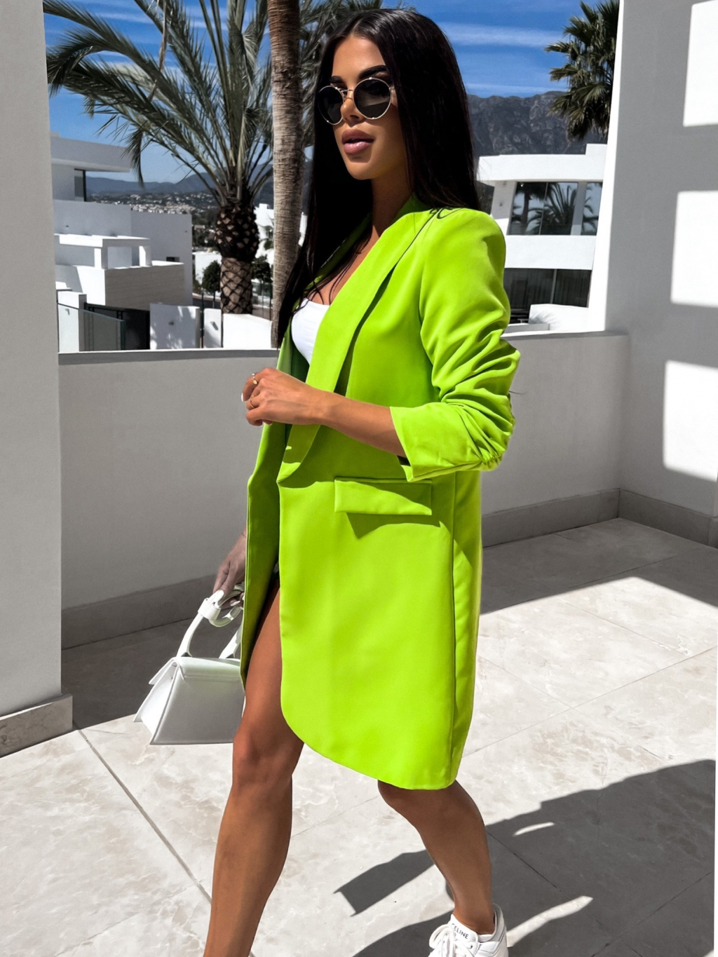 neón zelené elegantné sako CASTIEL otvoreného štýlu