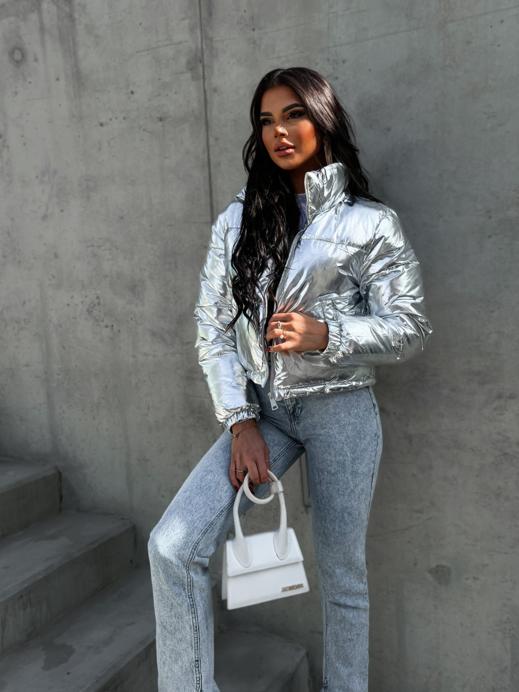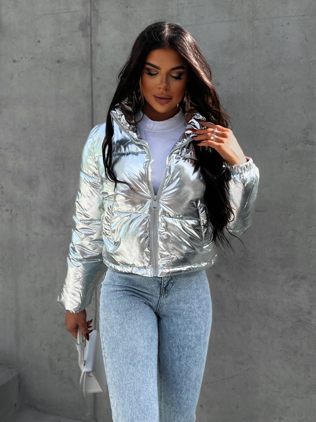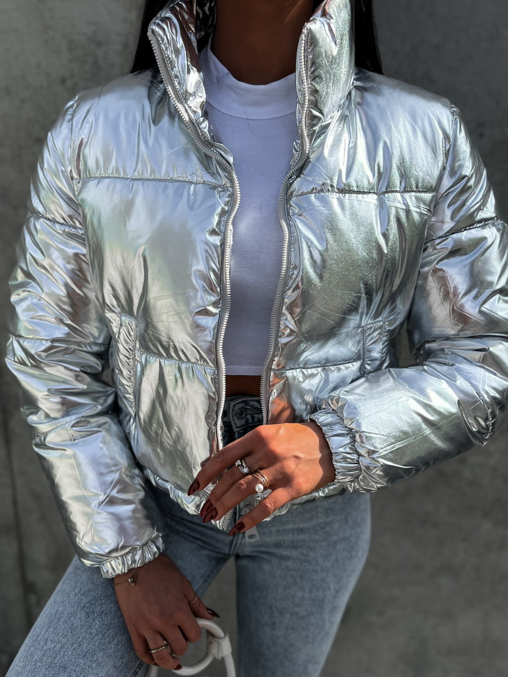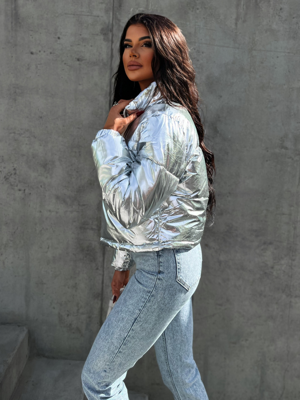 Strieborná prešívaná bunda CHOVOD