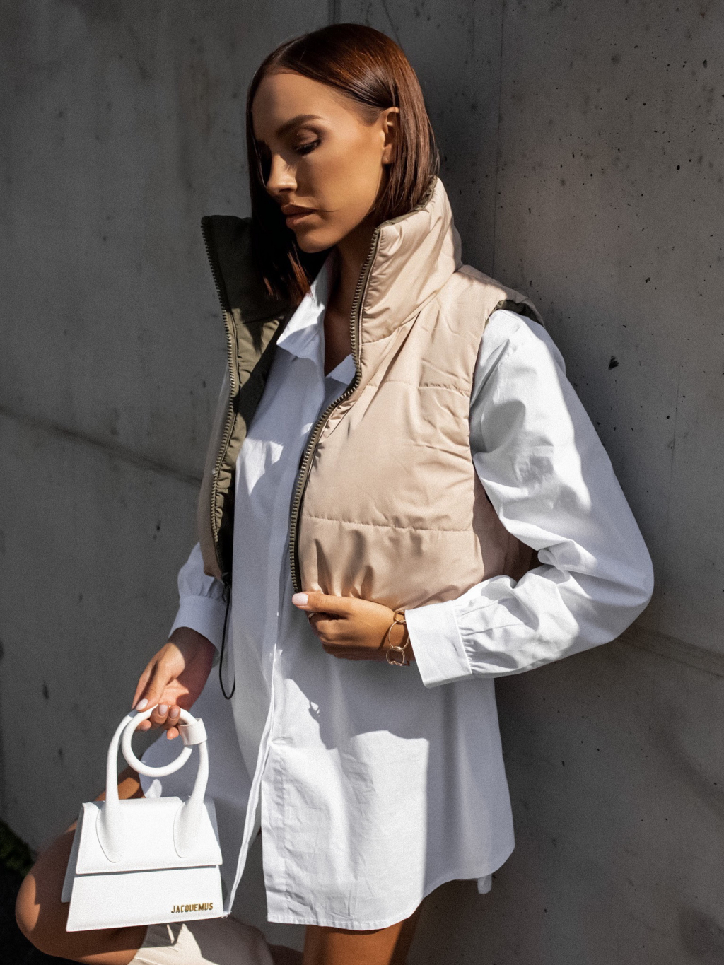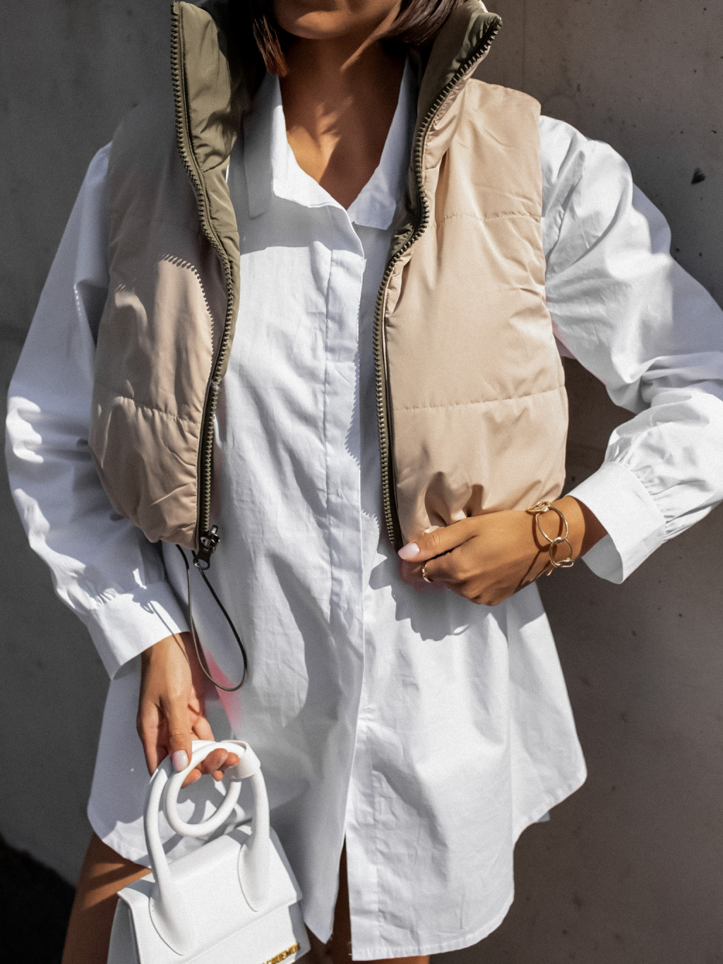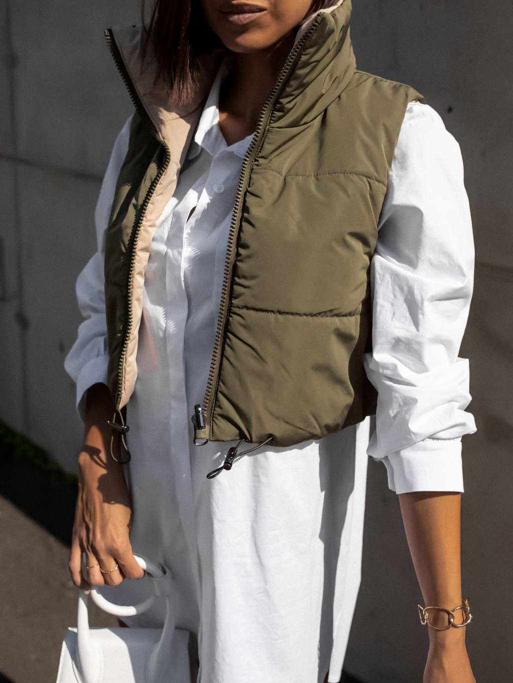 Zelenobéžová obojstranná vestička BRANCHE