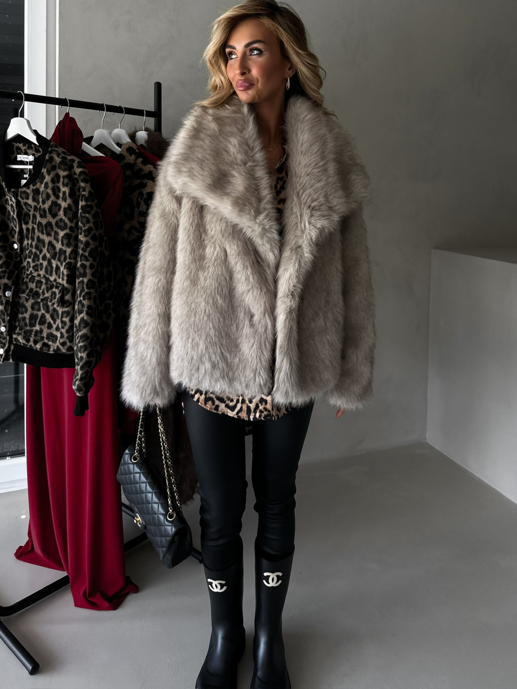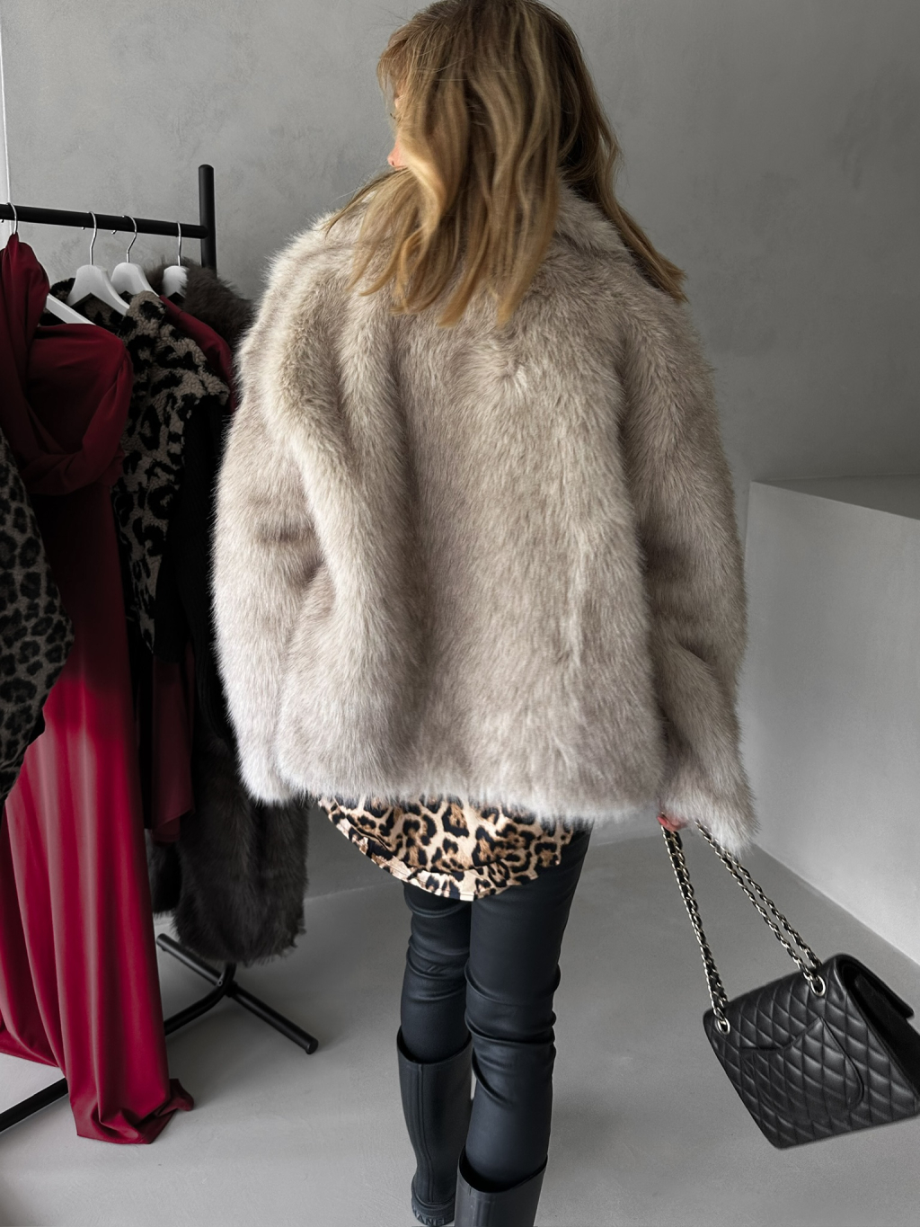 Béžový krátky fauxfur kožušinový kabátik KIRIAK