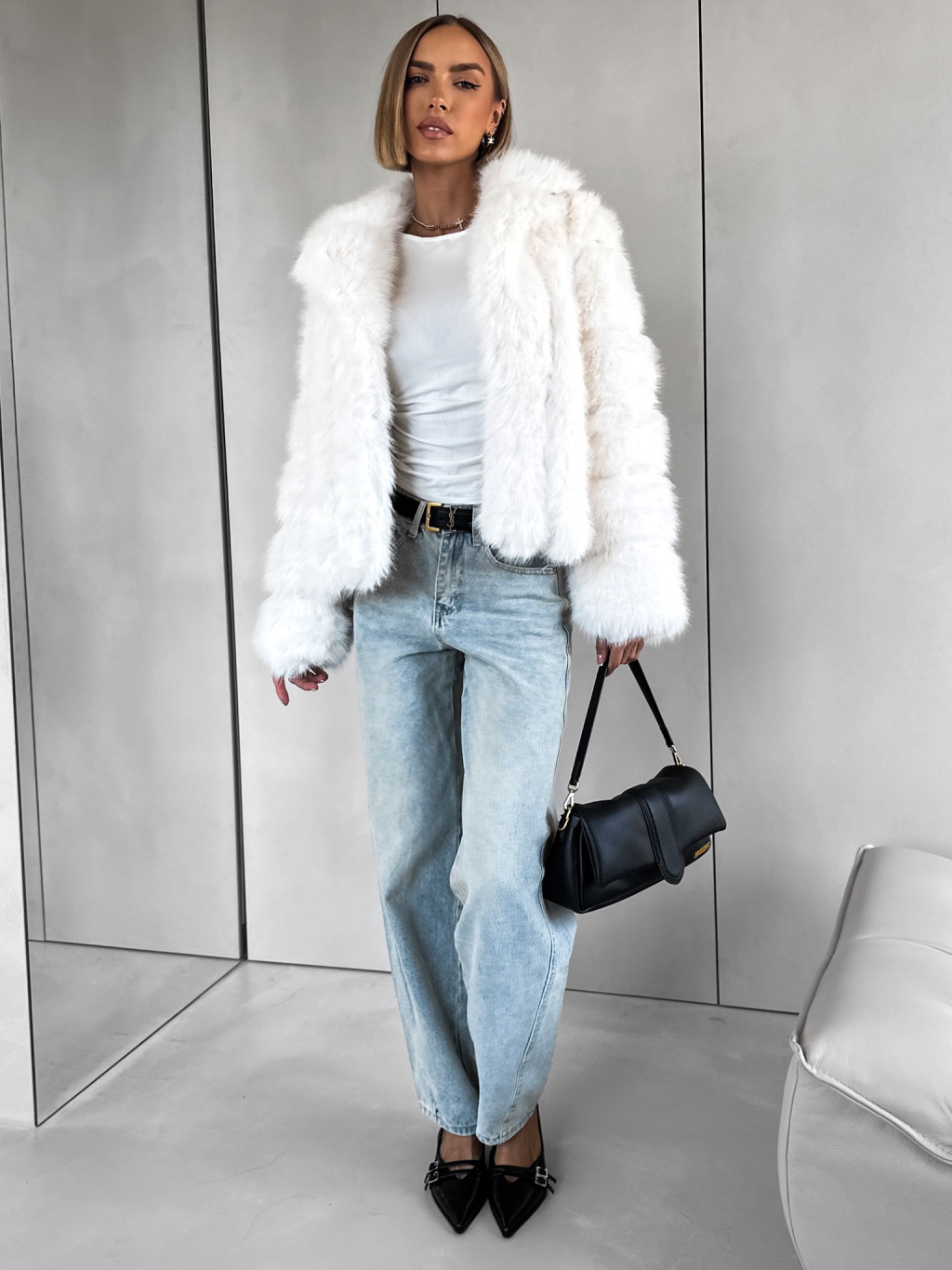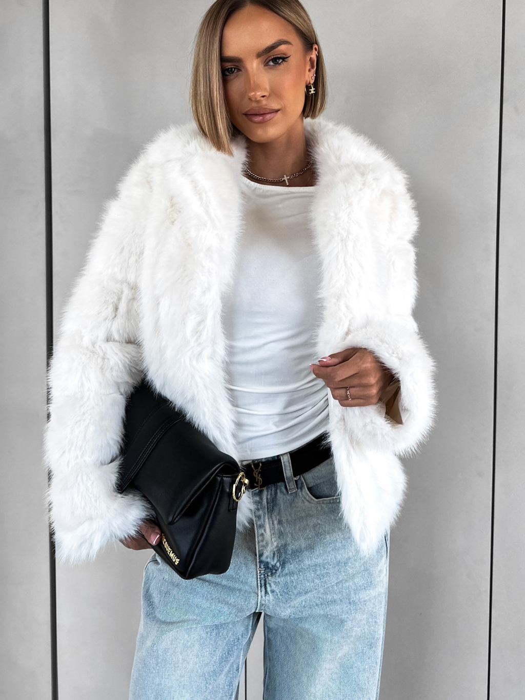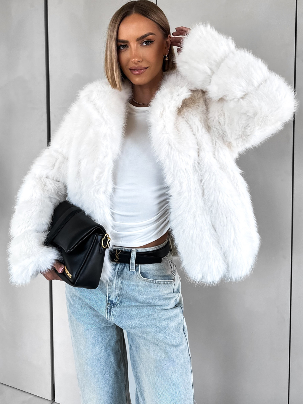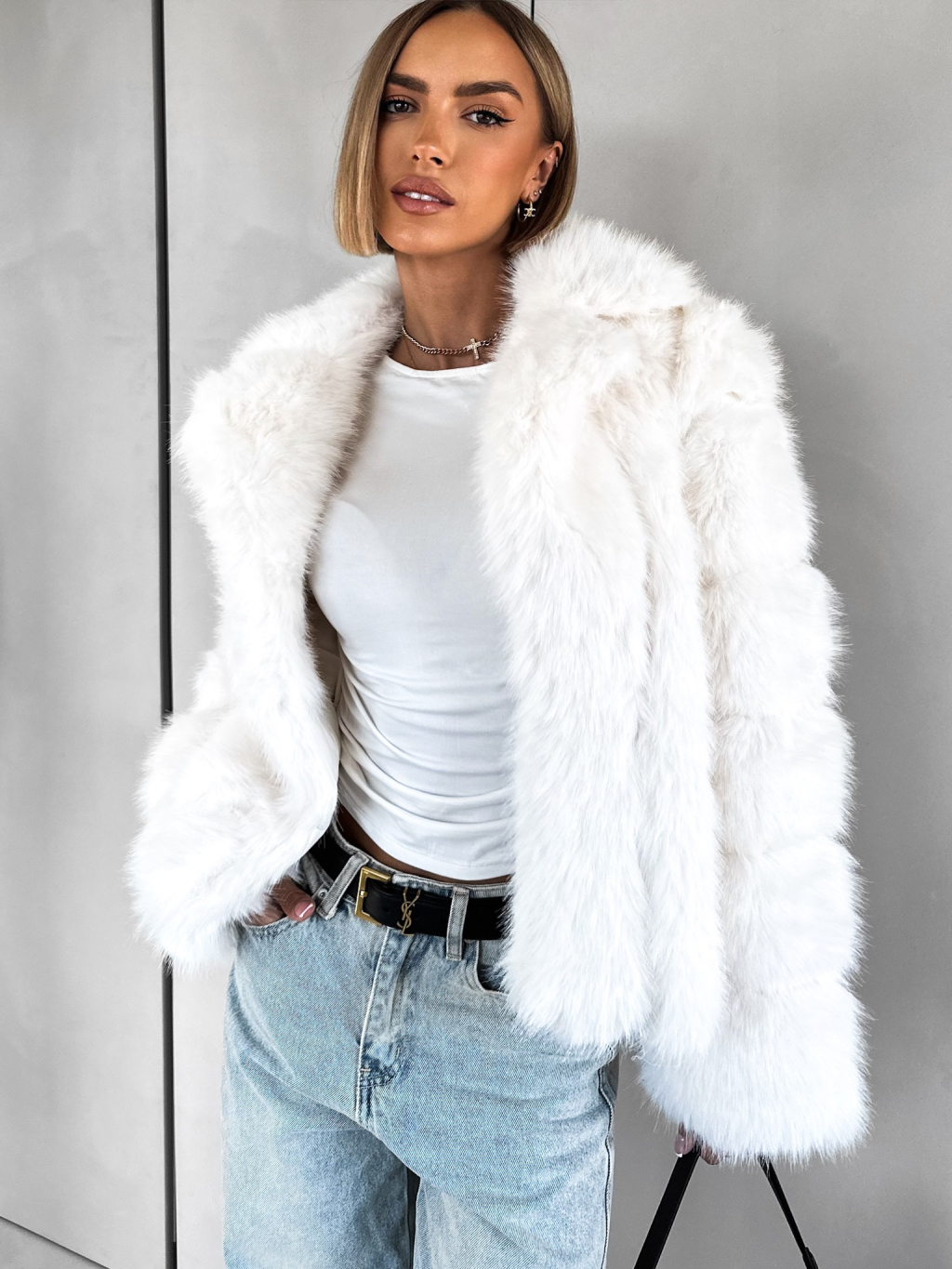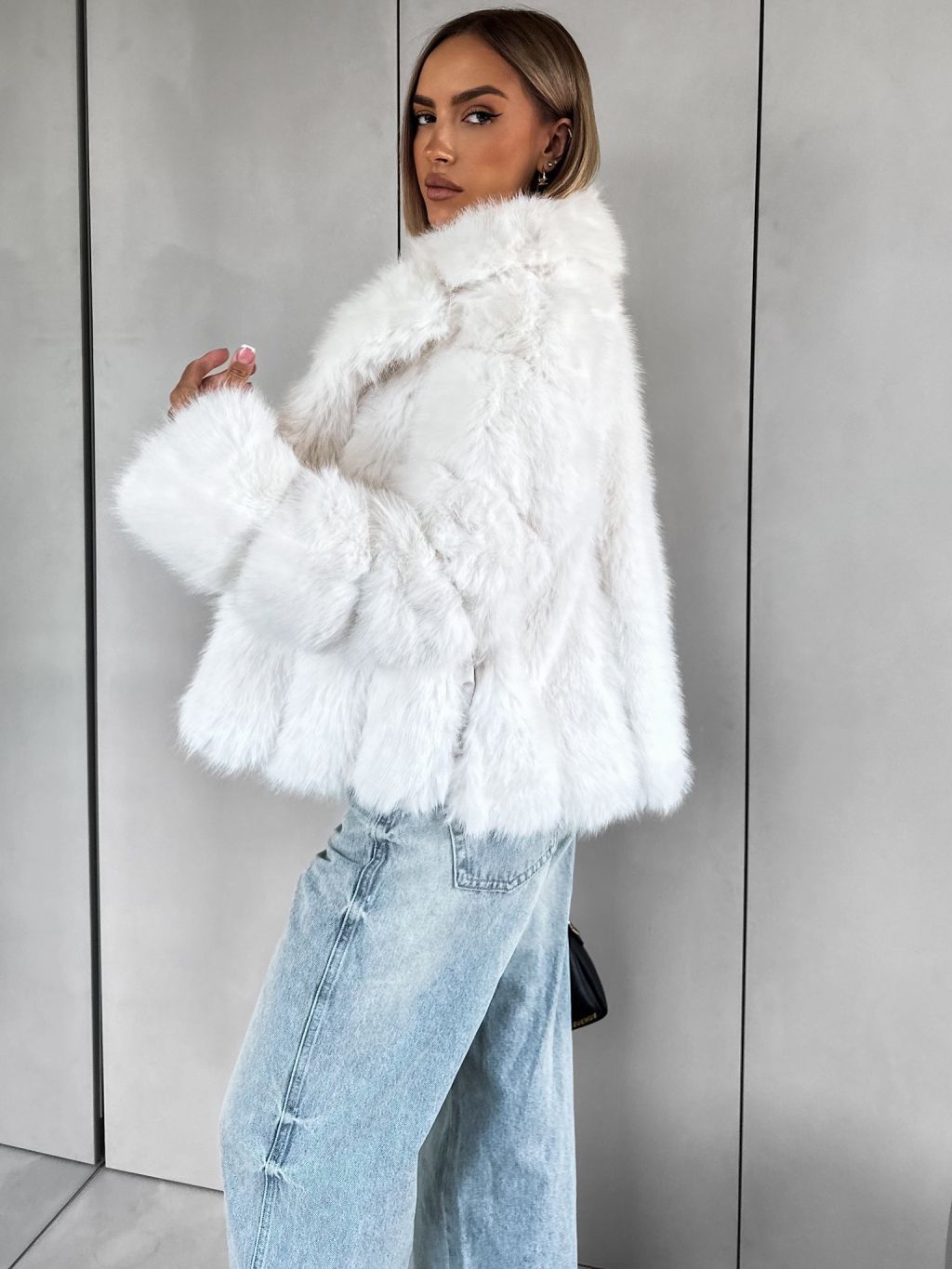Biely krátky faux fur kožušinový kabátik NOMIR